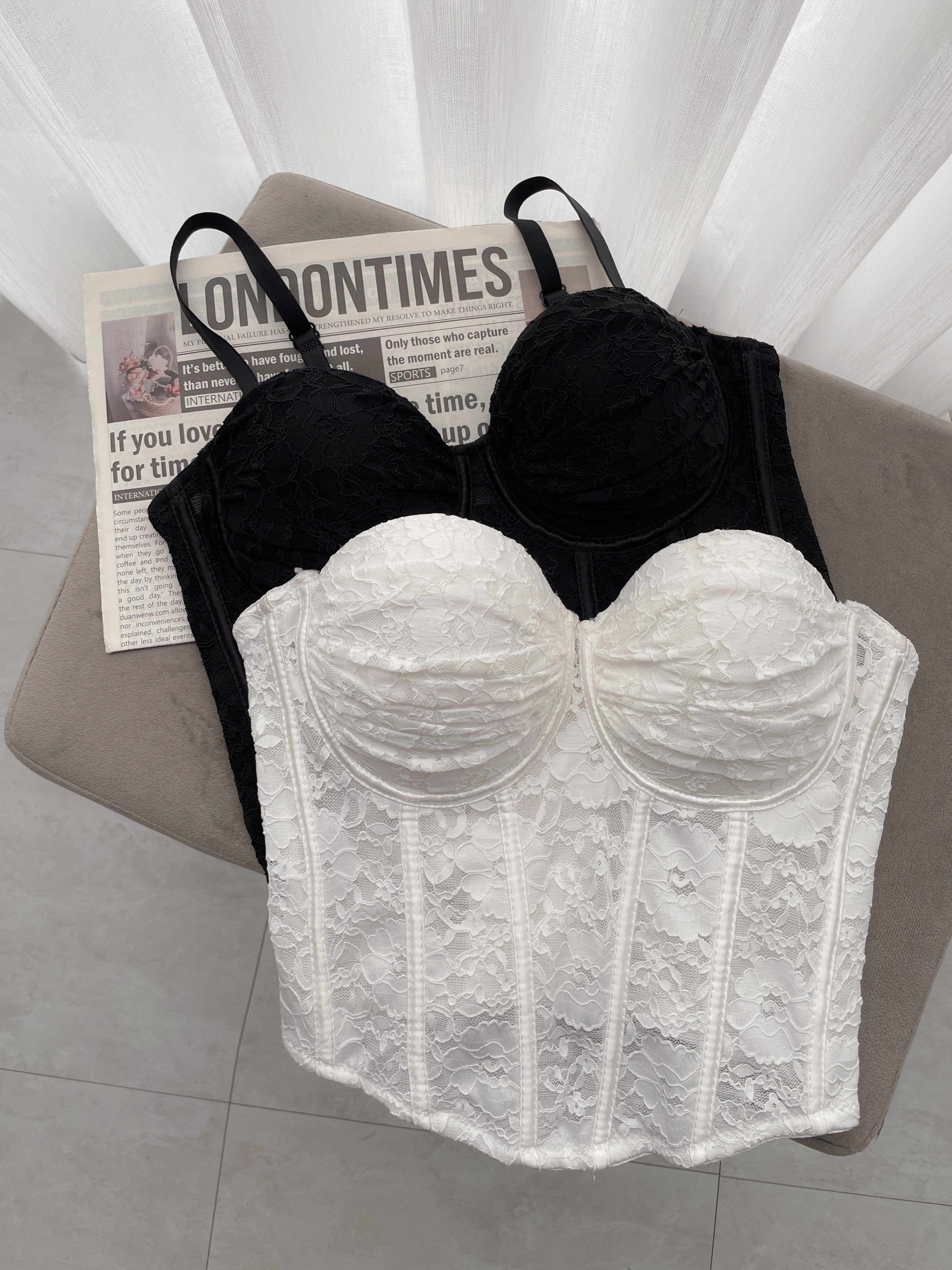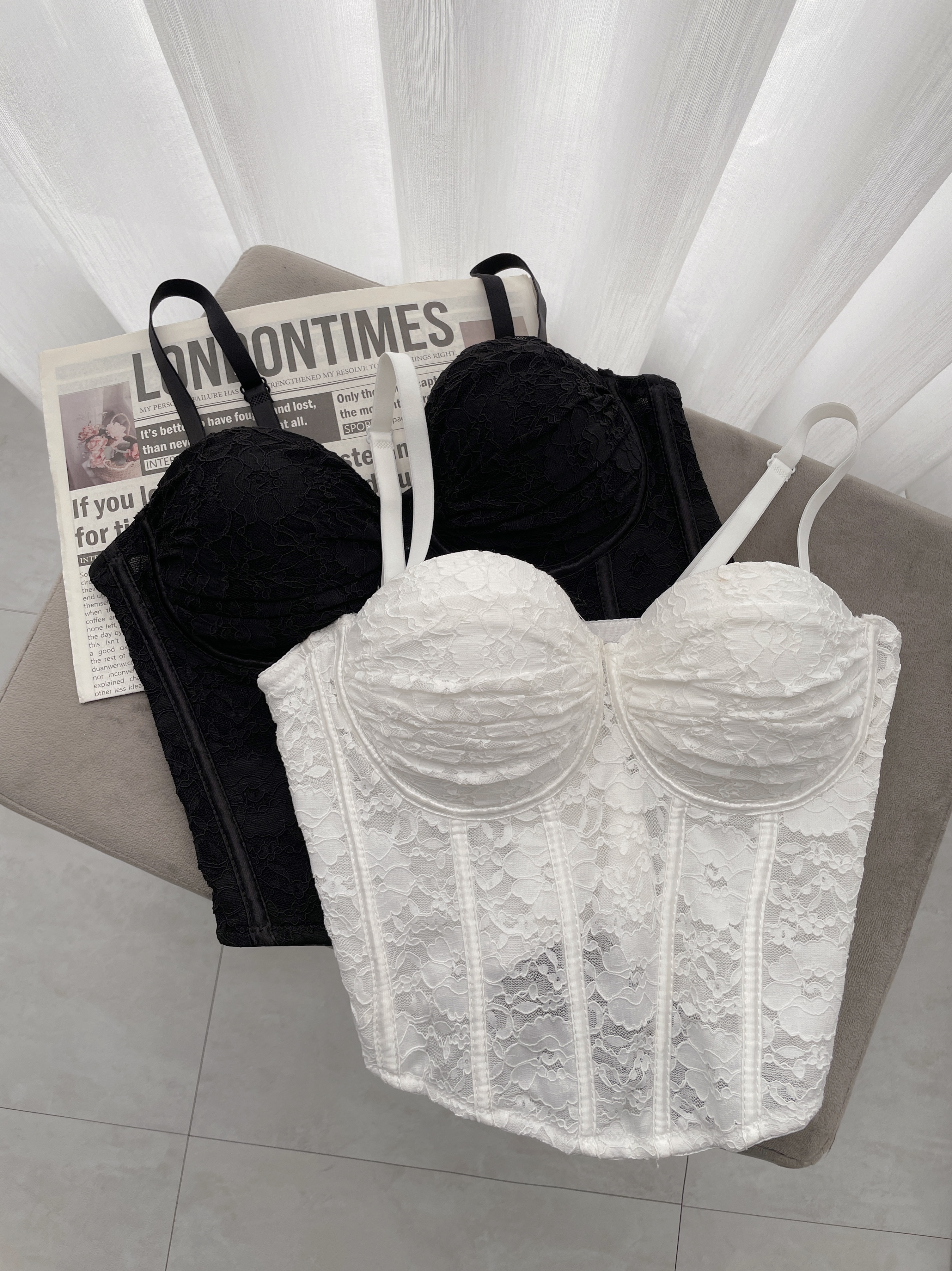蕾絲胸抓皺魚骨馬甲