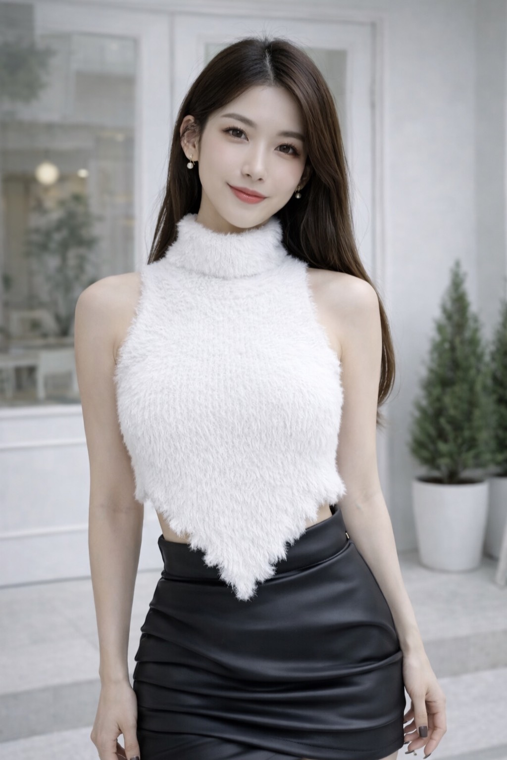高領削肩美背馬海毛上衣