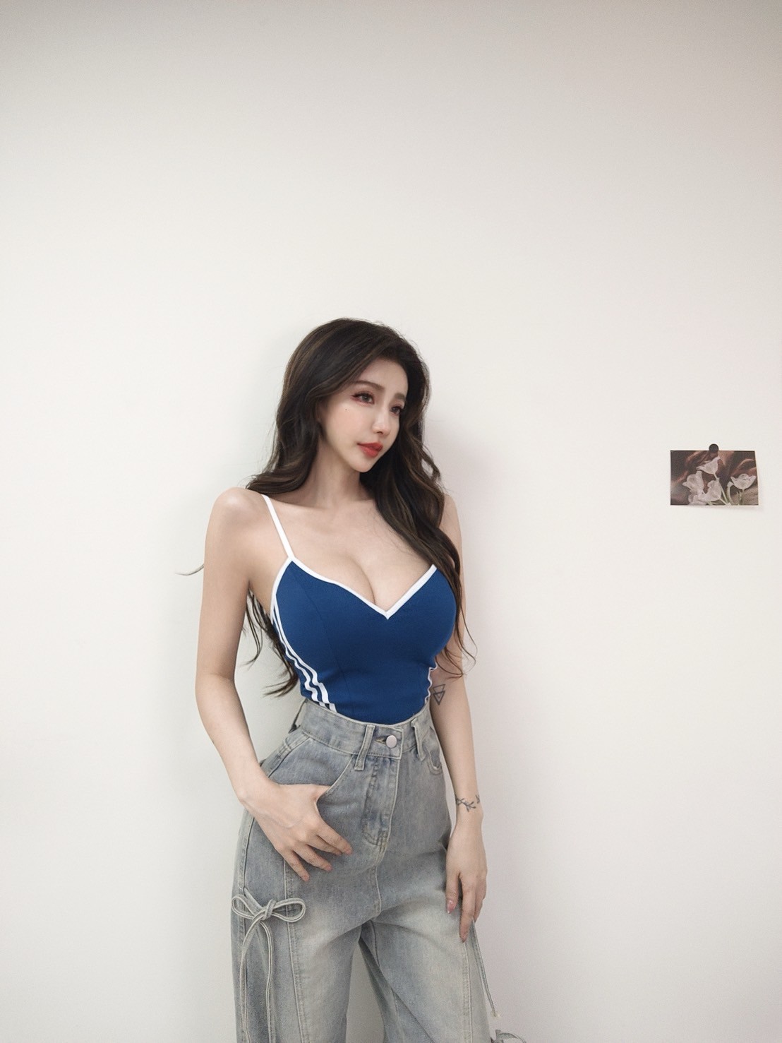 撞色線條設計修身又顯腰,加上蜜桃胸版型+雙肩帶可調!