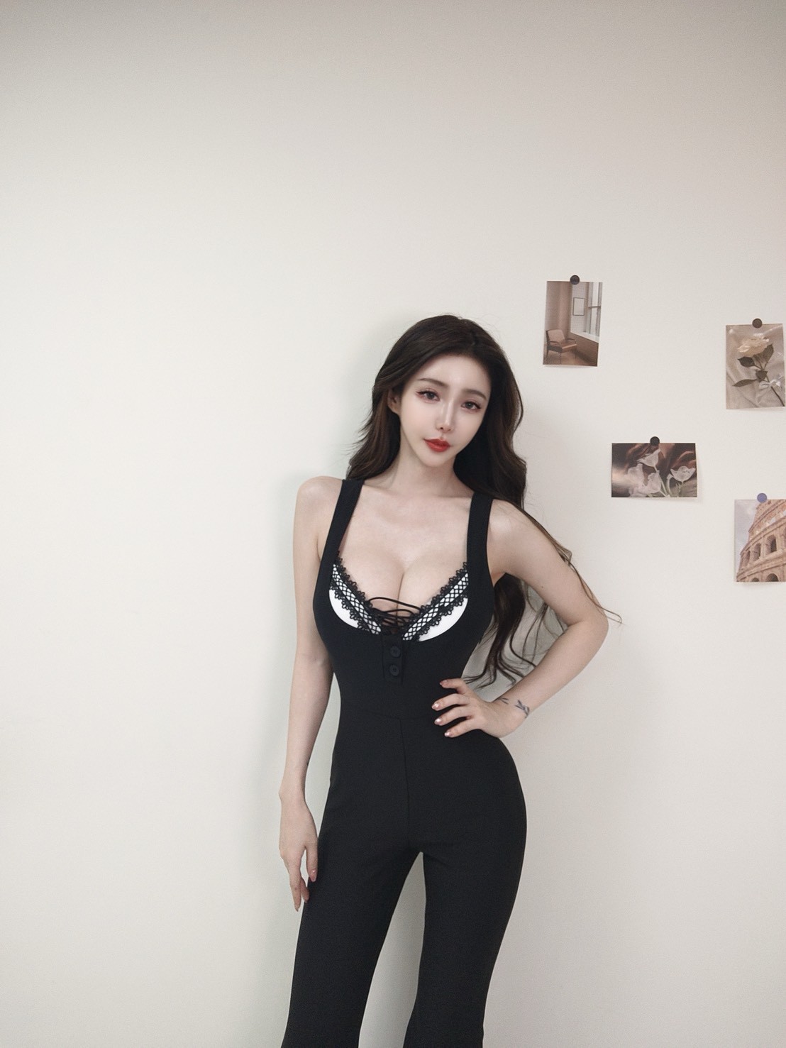 性感與俐落兼具的全黑造型,一件輕鬆完成全身穿搭。U領設計修飾頸部線條,胸口雙釦點綴低調亮點。