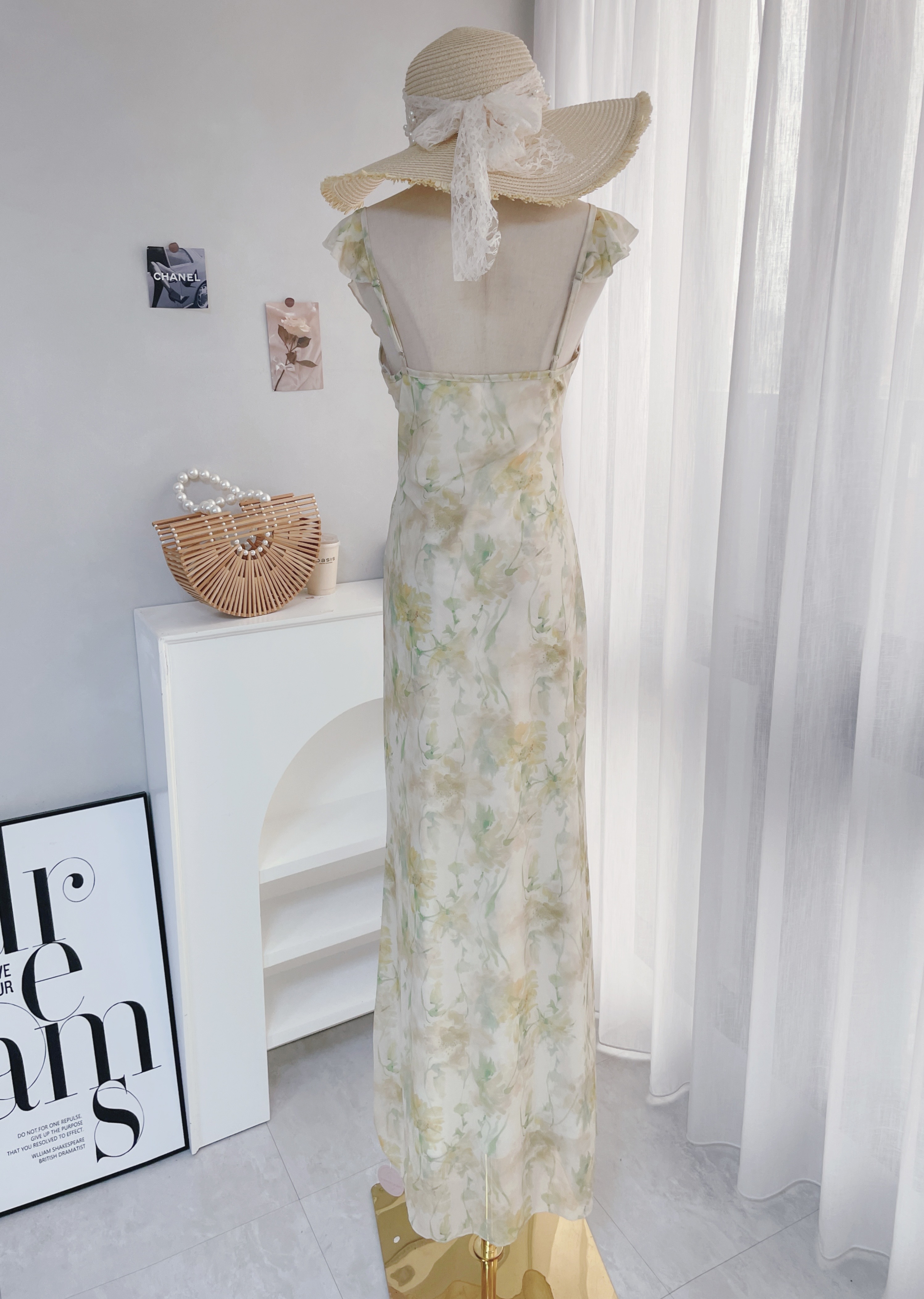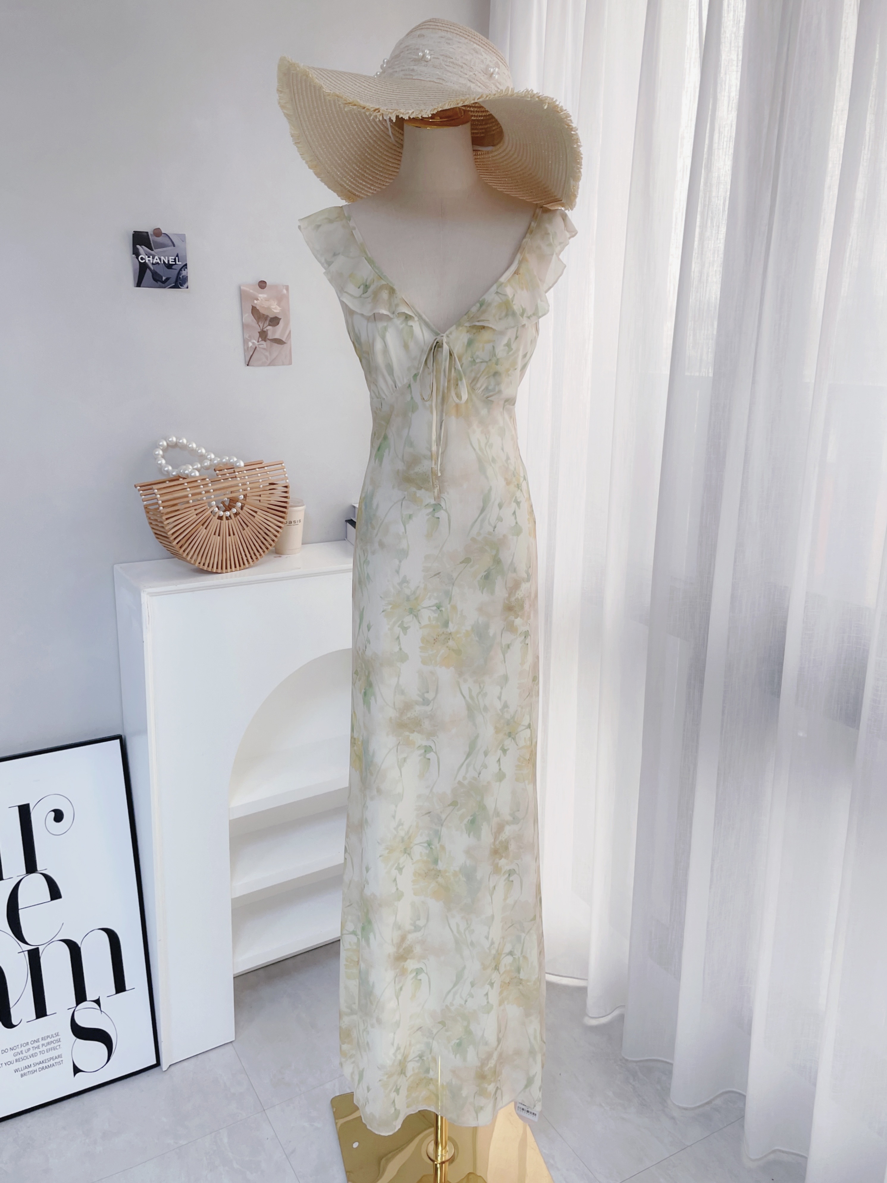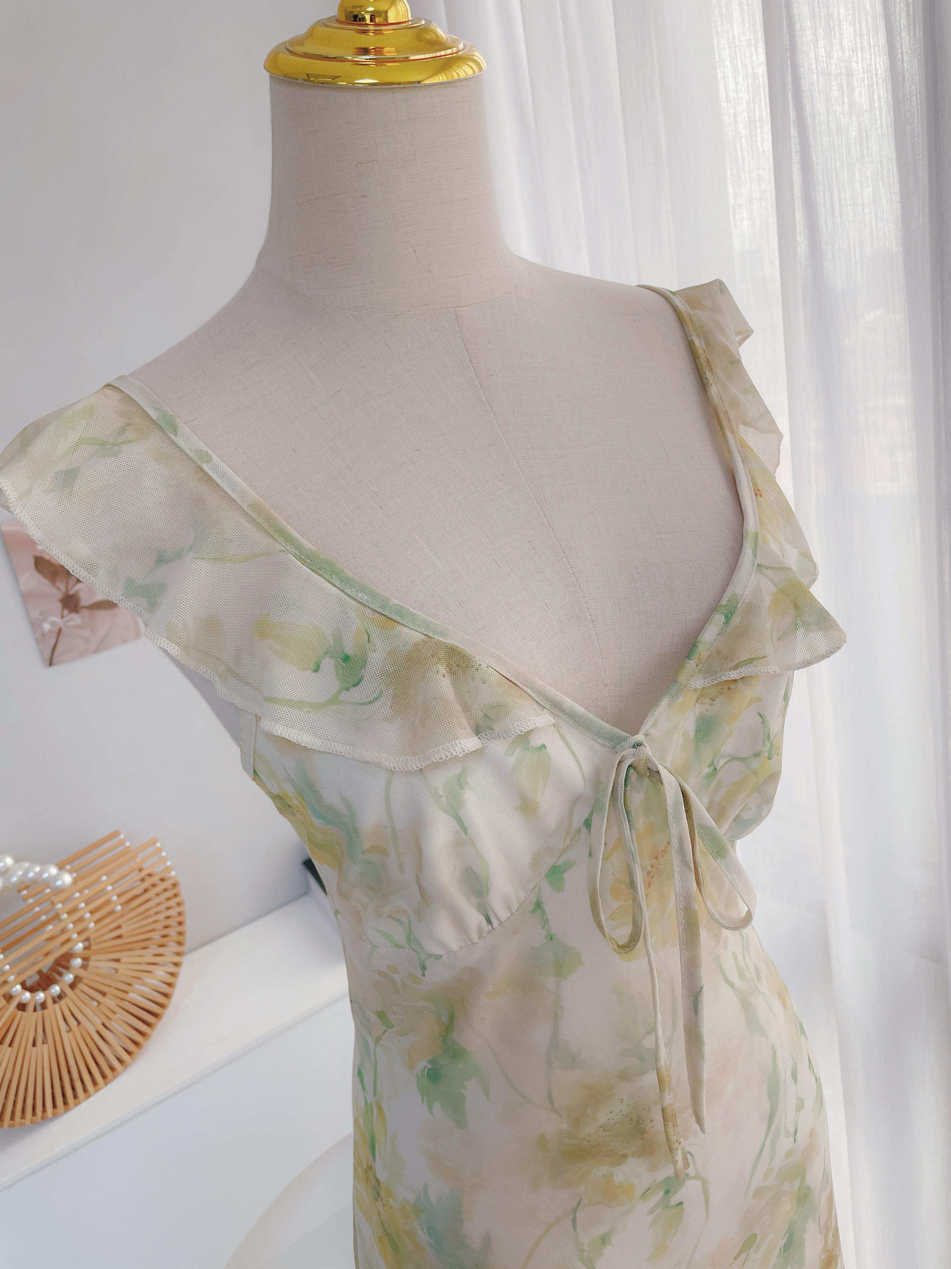 浪漫花園 荷葉邊暈染花朵長洋