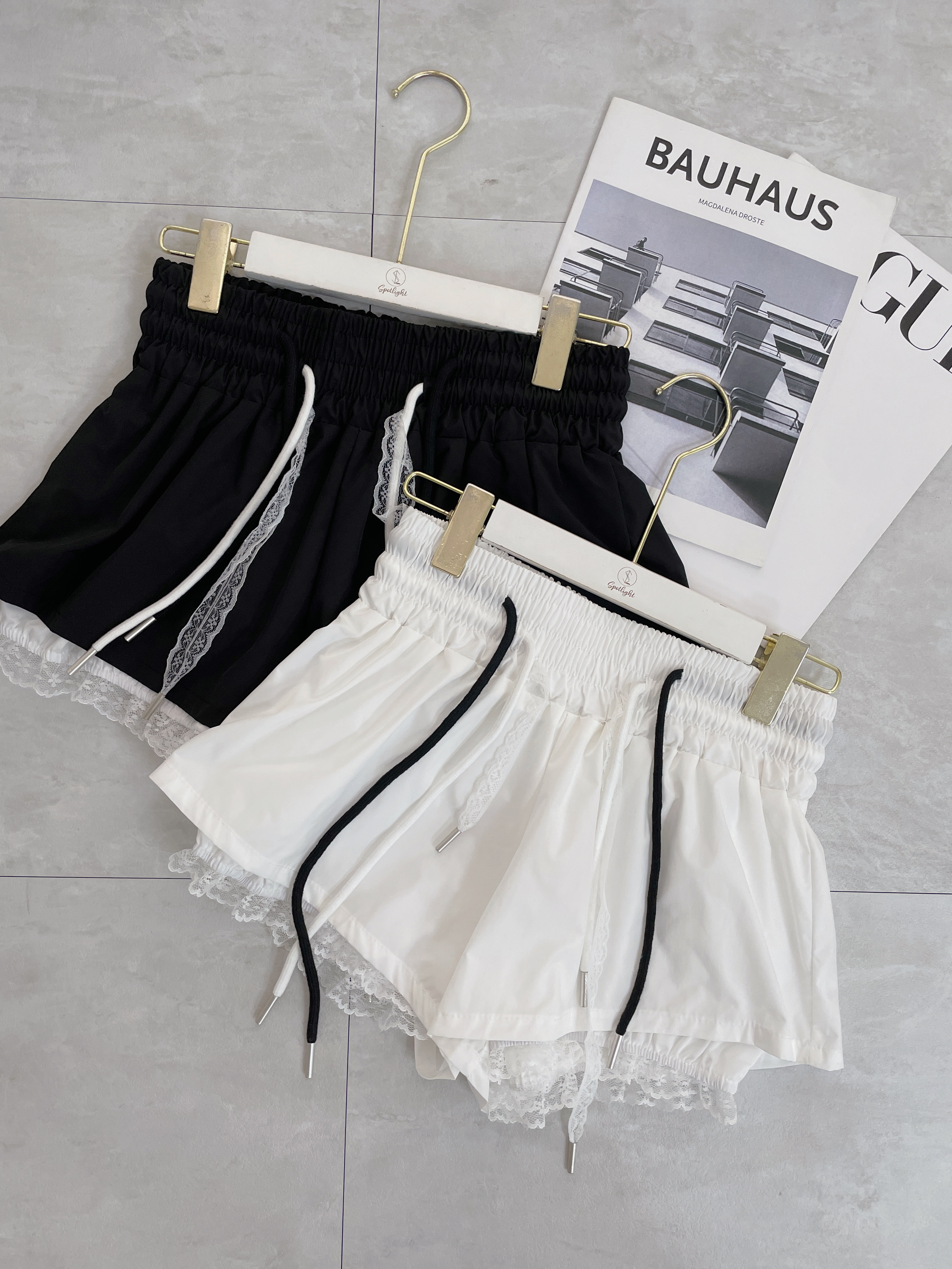 俏皮芭蕾 韓國撞色蕾絲縮腰短褲