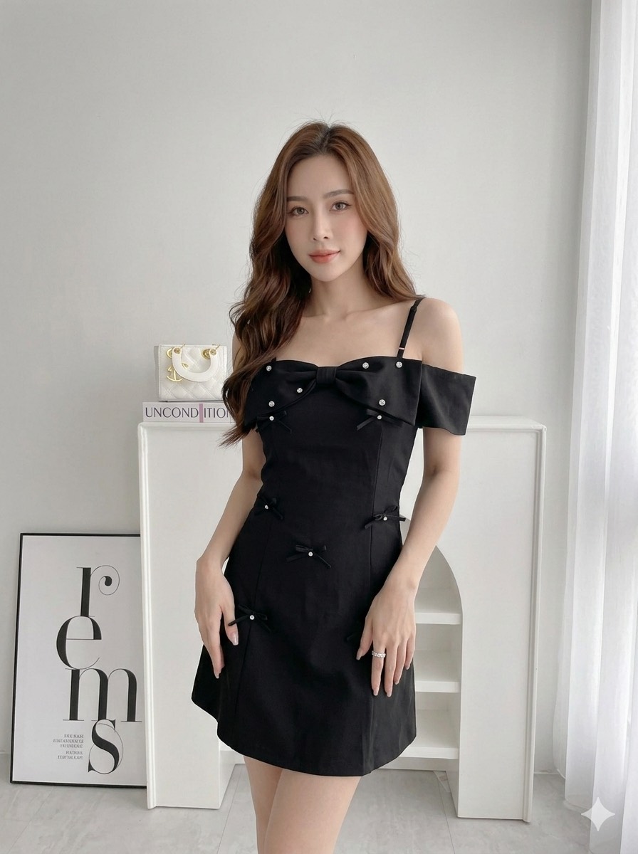 胸前有大蝴蝶結,衣身小蝴蝶結還有小鑽點綴,俏麗又可愛~