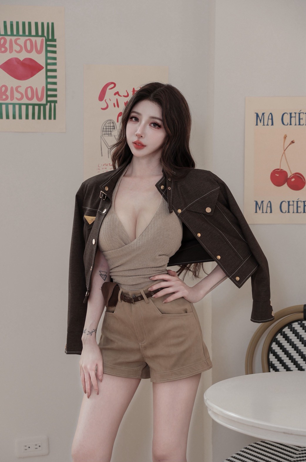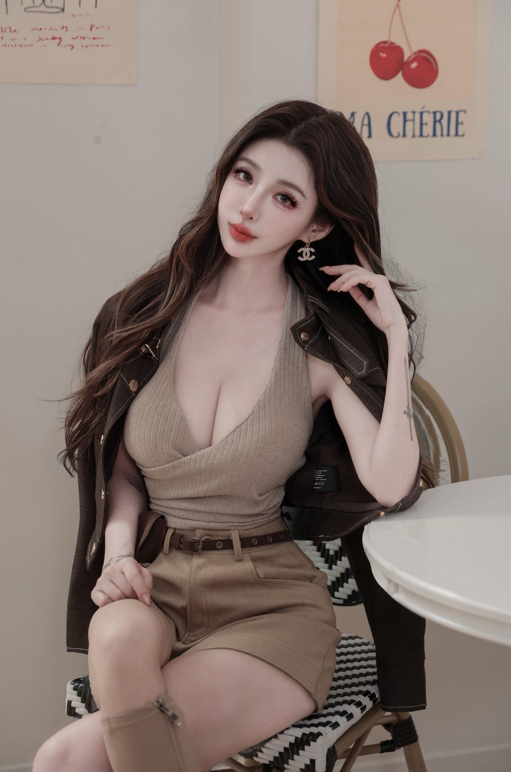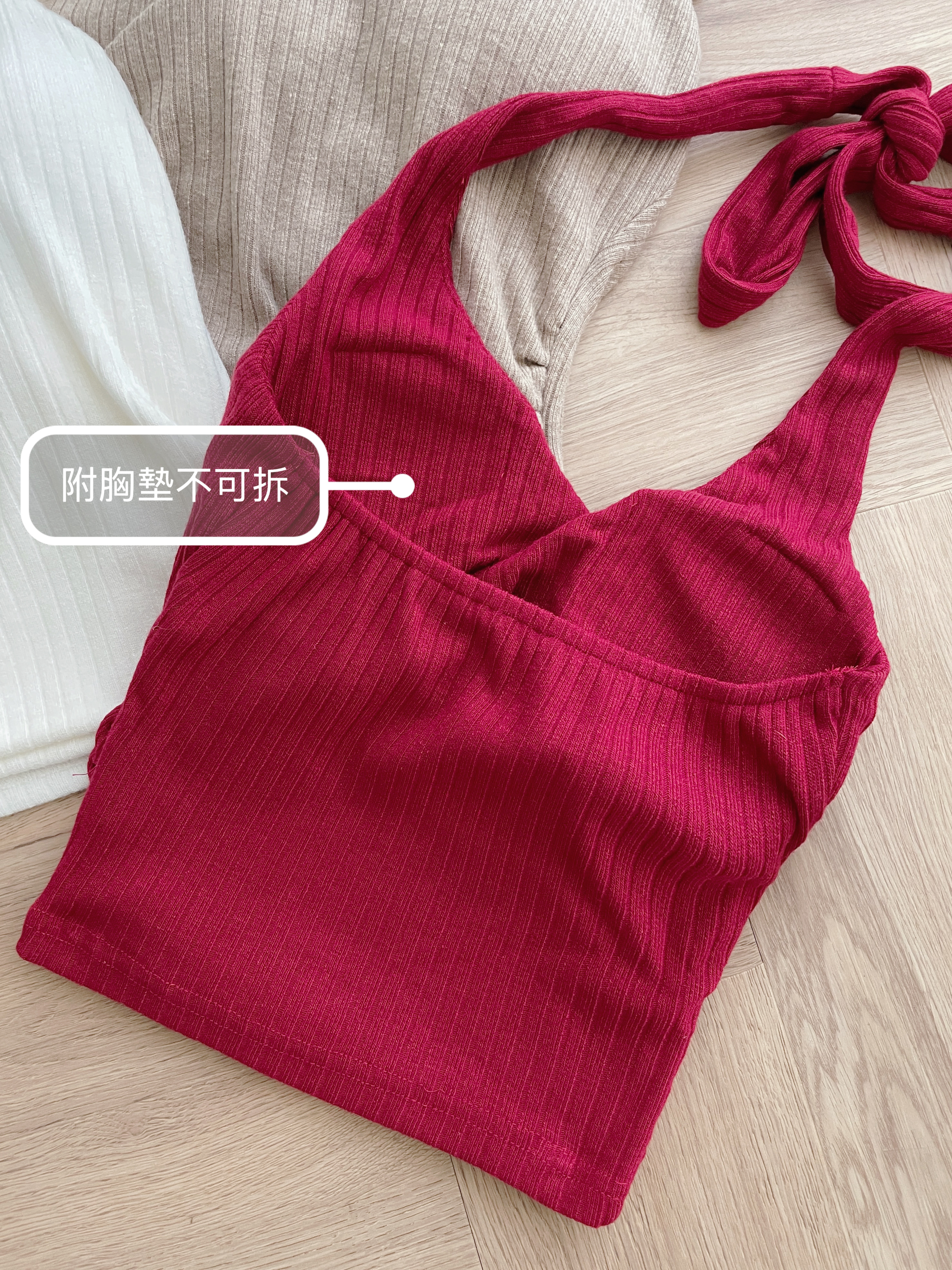 冬日拿鐵 繞脖綁帶針織側抓皺背心