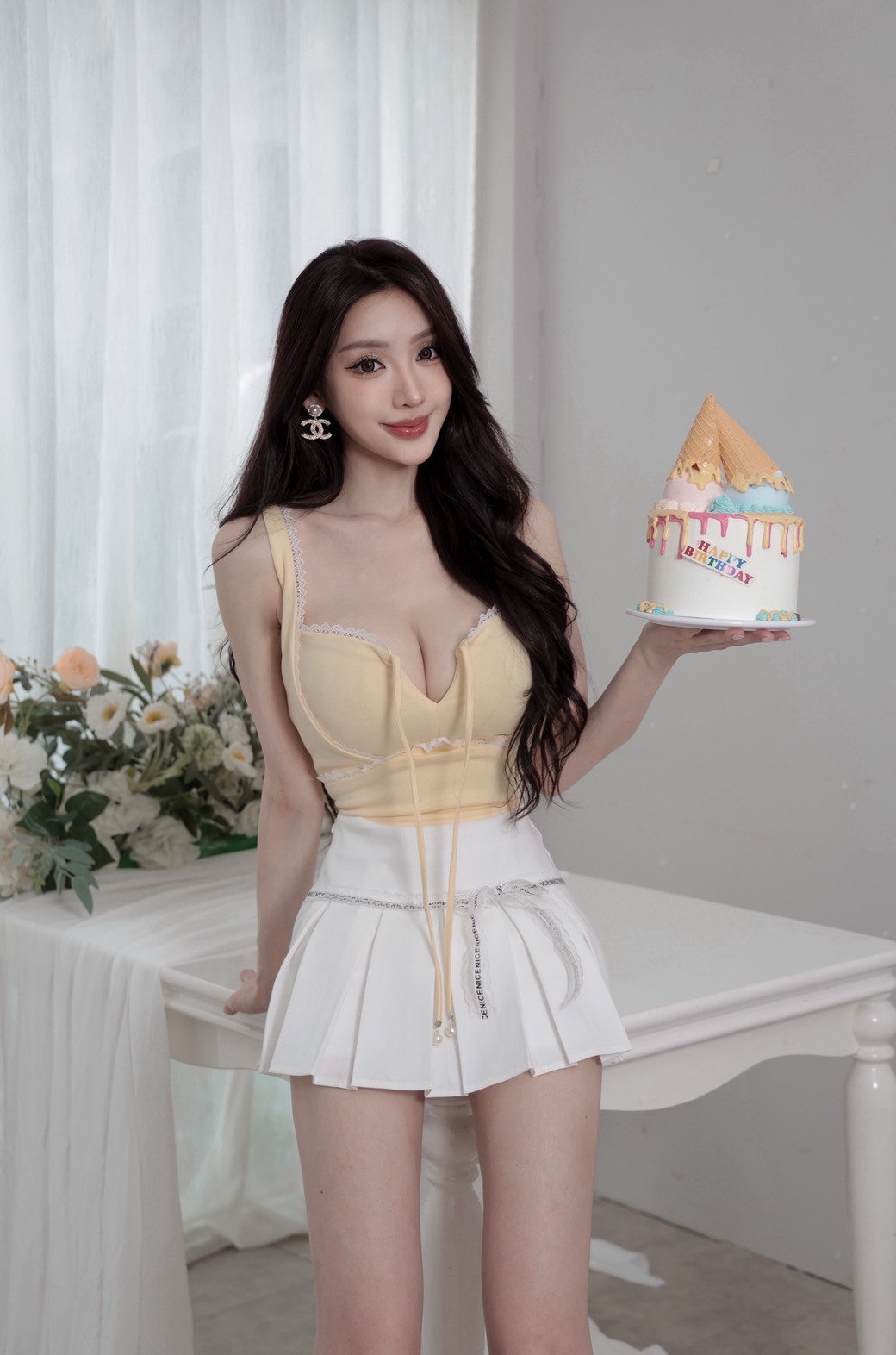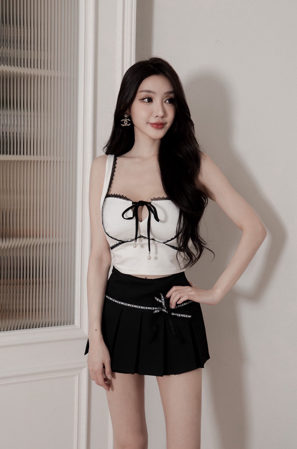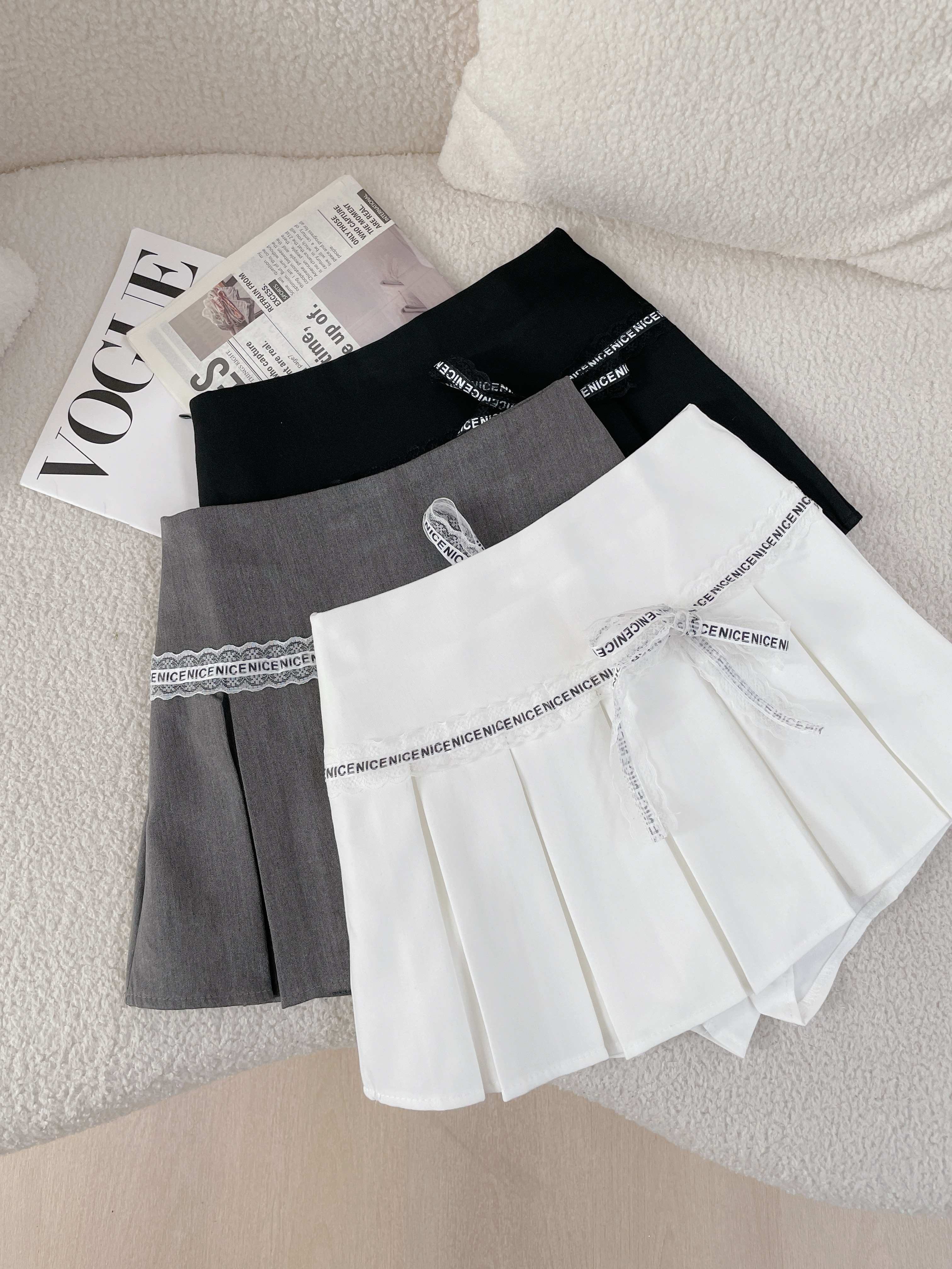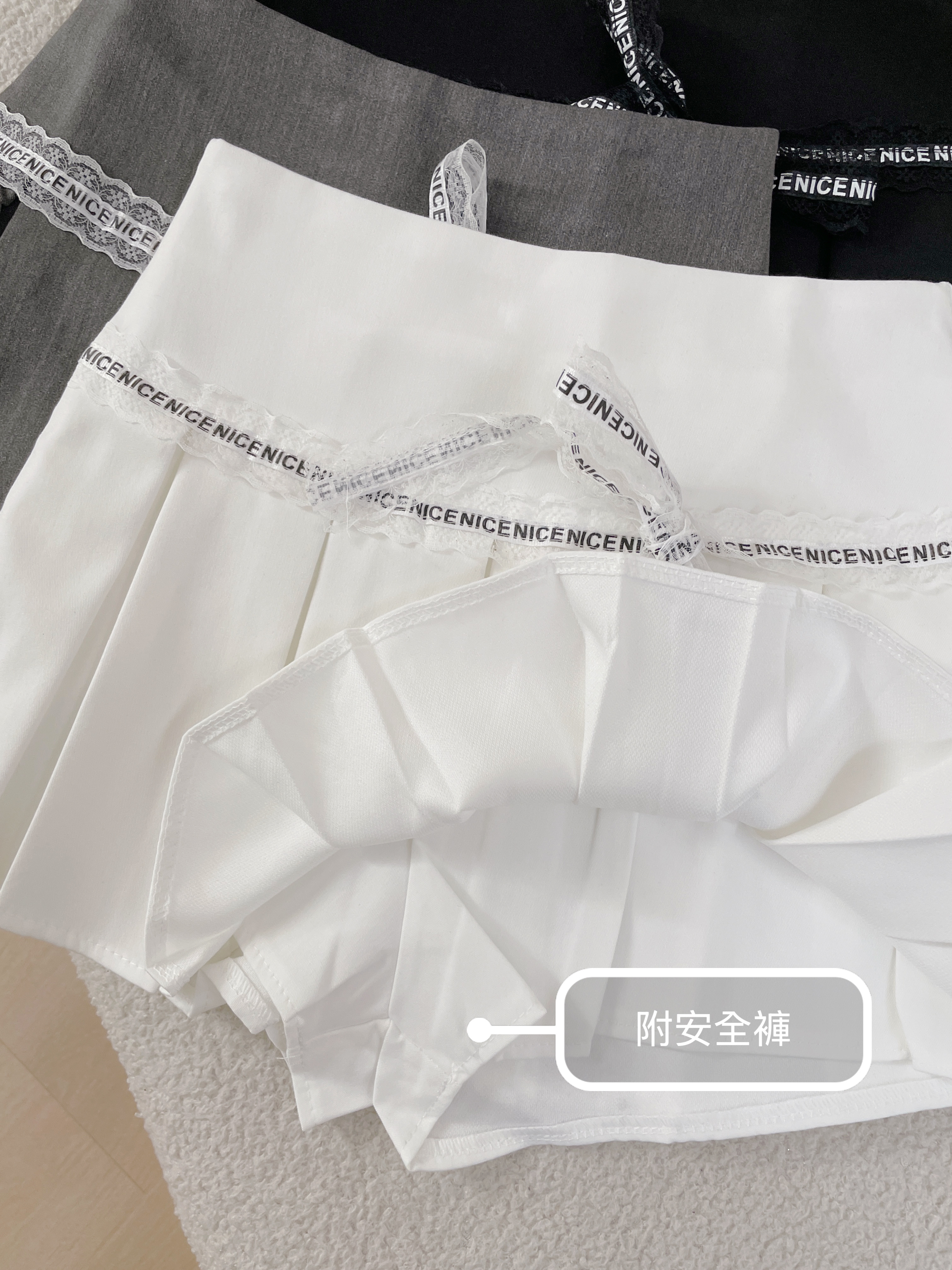 初戀泡泡 學院風蕾絲綁帶百褶裙