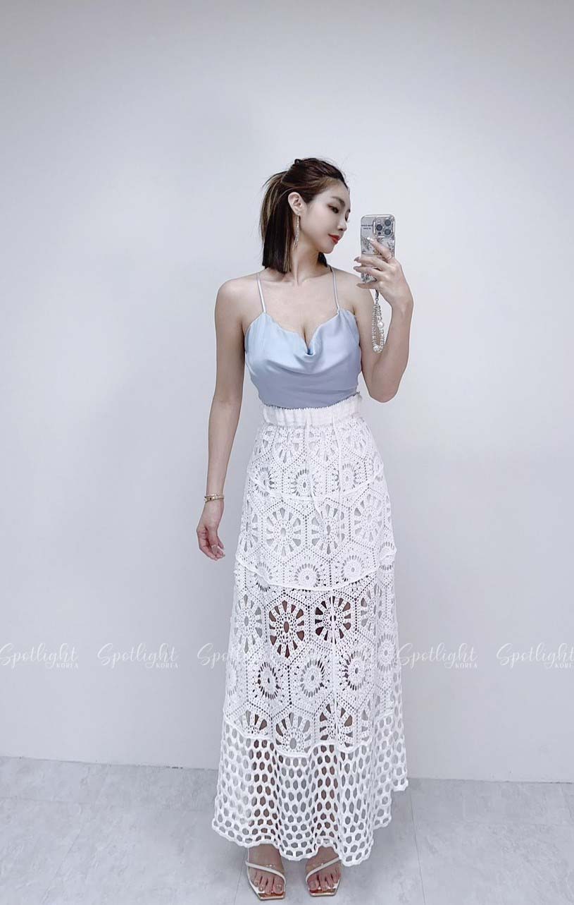 南島盛夏 韓國緹花鏤空抽繩魚尾長裙
