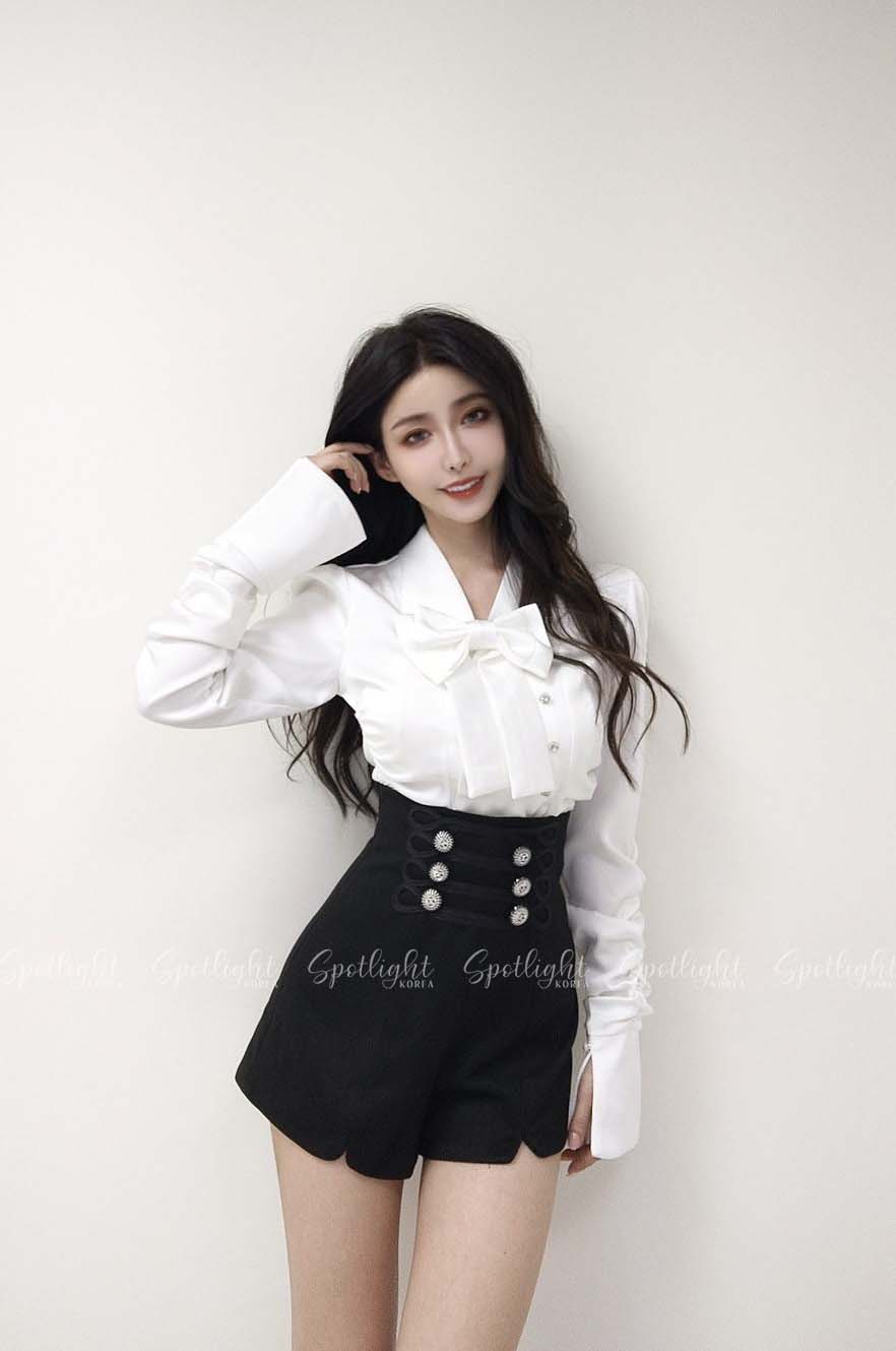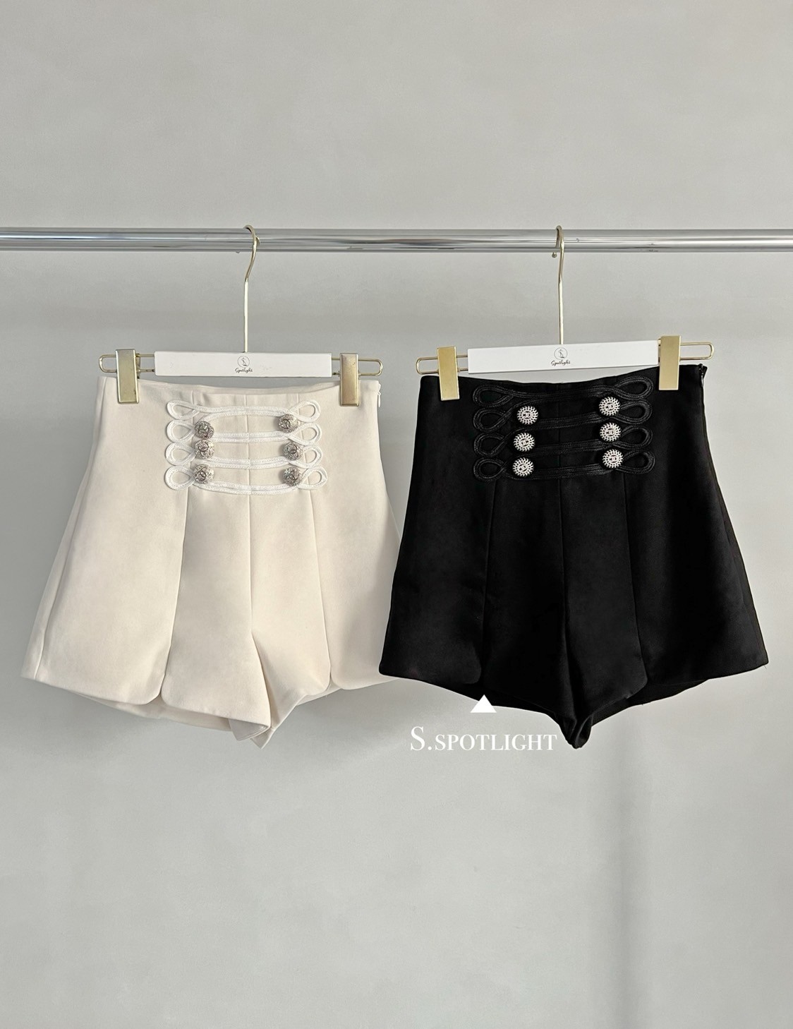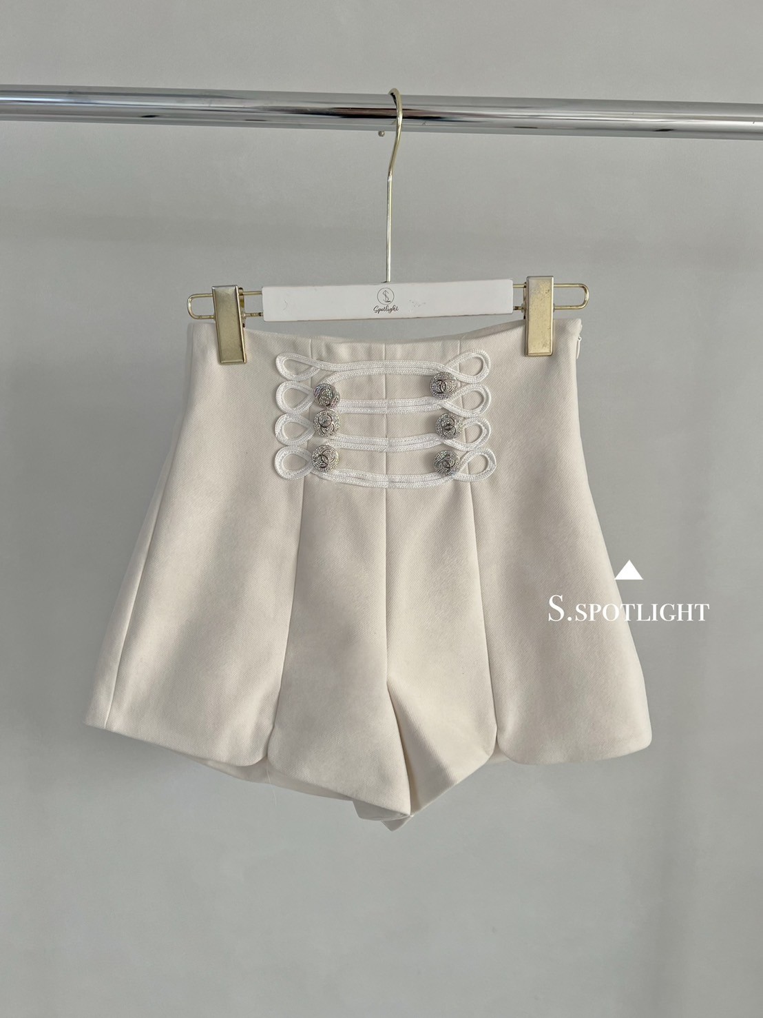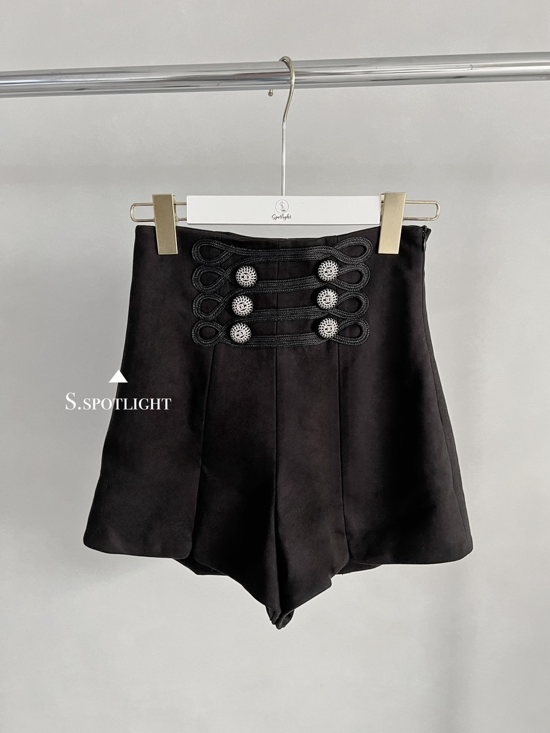 奢華宮廷 高腰六鑽釦毛呢小開衩短褲