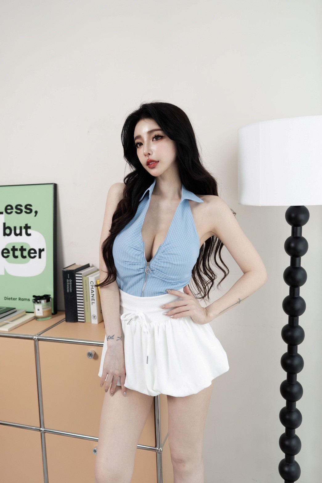 削尖繞脖設計,展現迷人鎖骨曲線,搭配貼心附胸墊,完美支撐提升胸型。