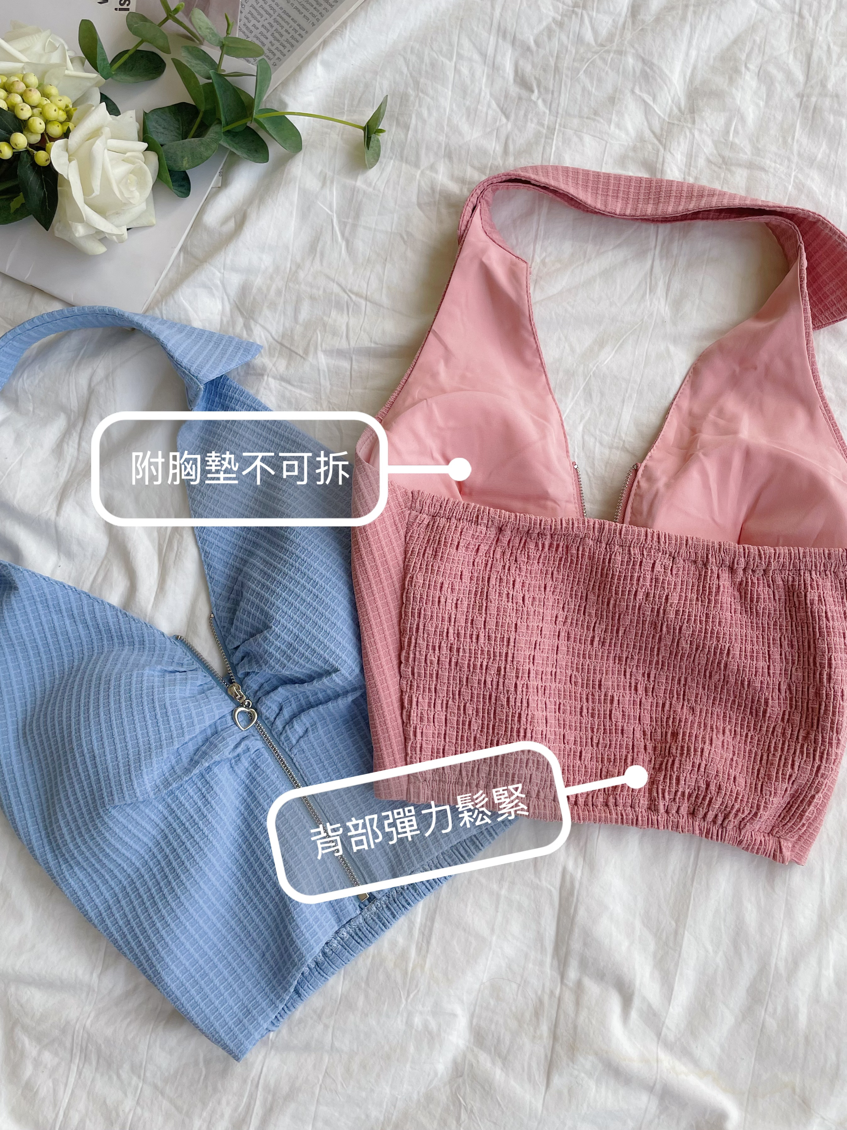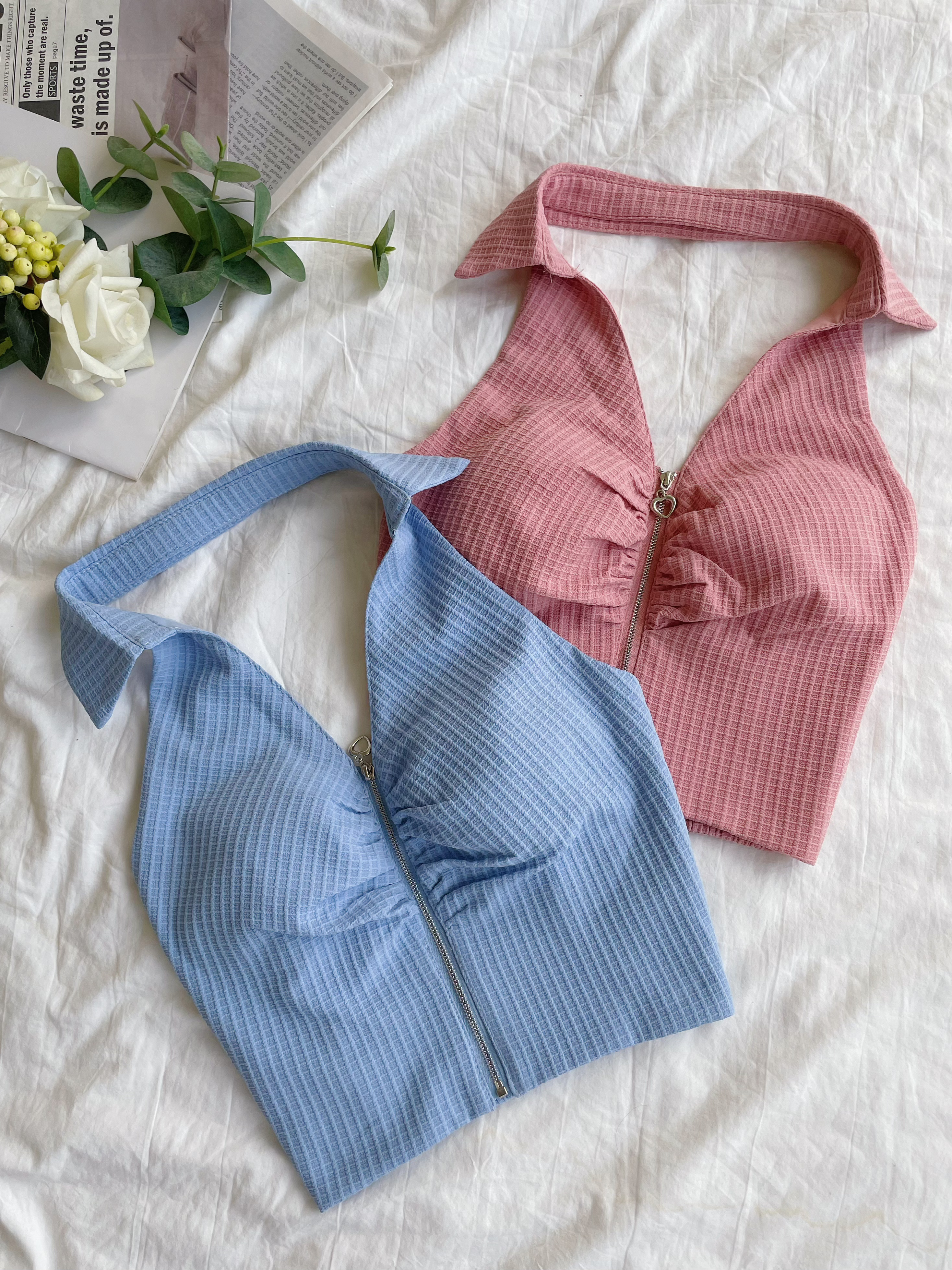 巴黎軟糖 繞脖華夫格拉鏈馬甲