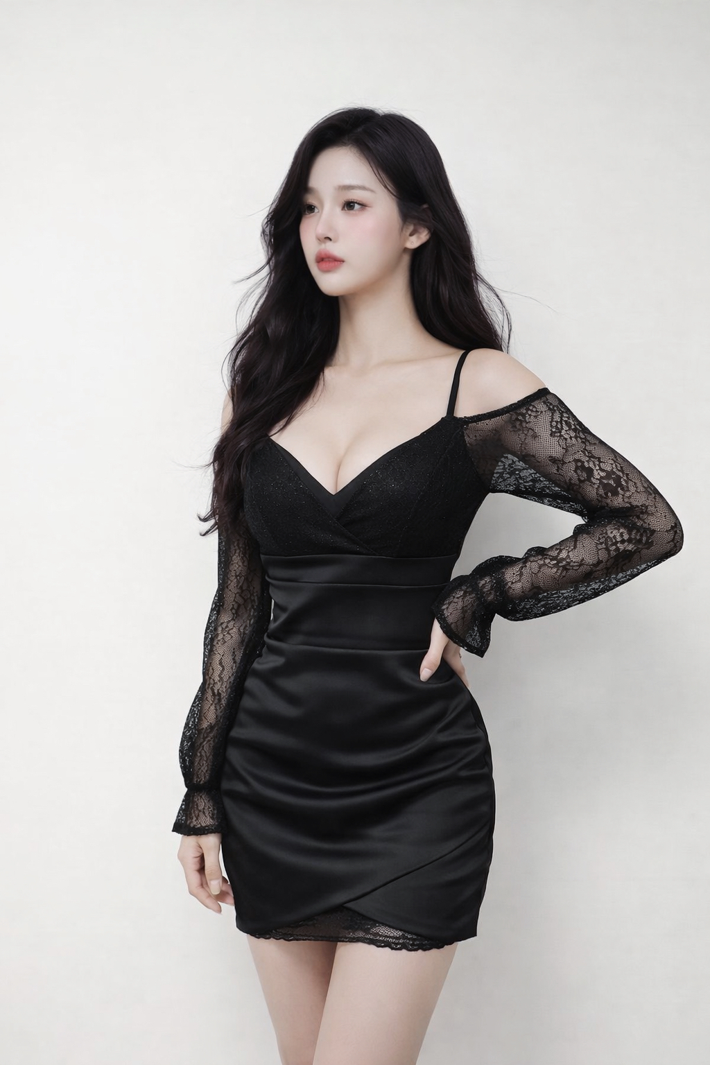 性感女人 深V亮片長袖合身短洋