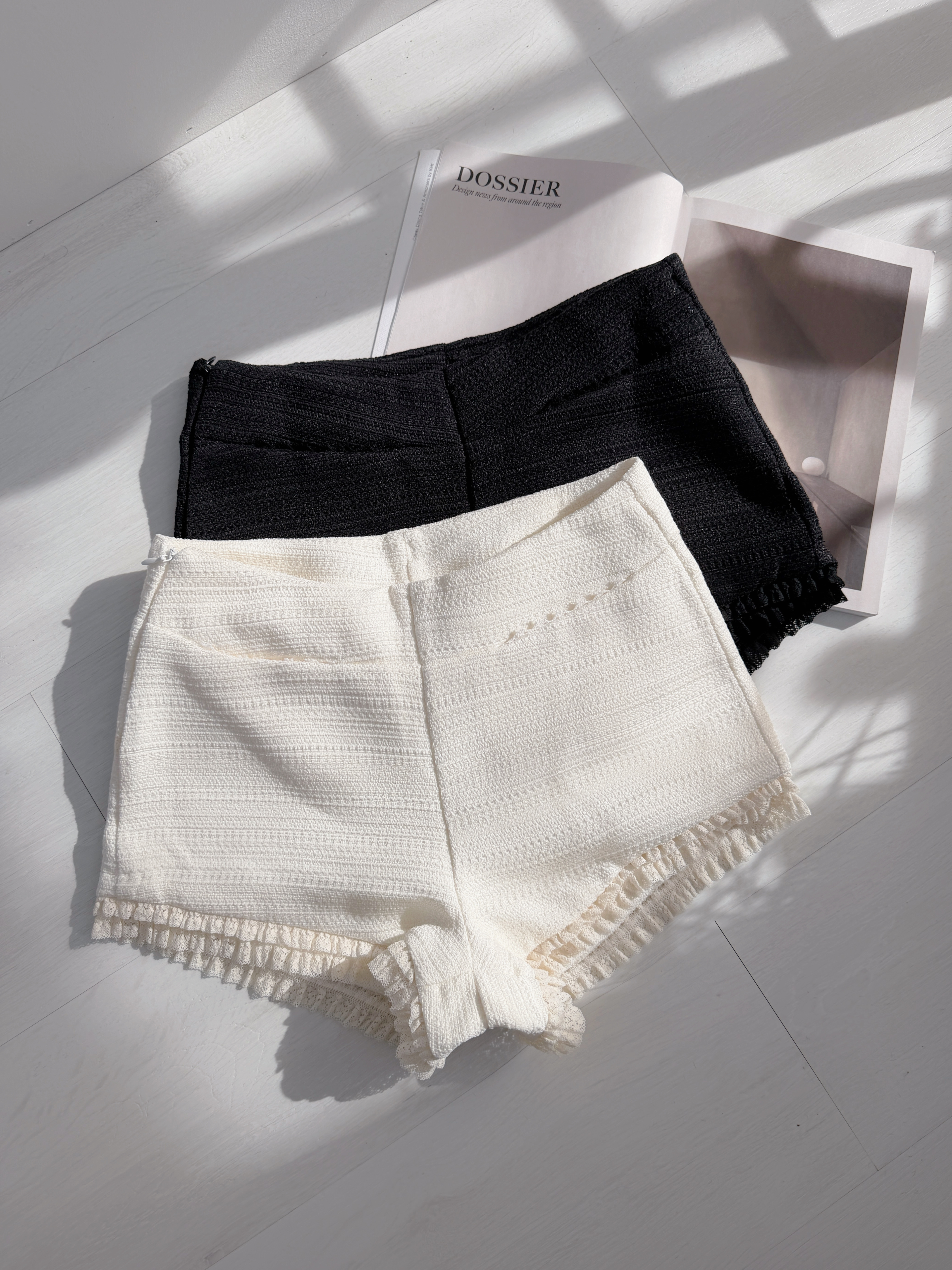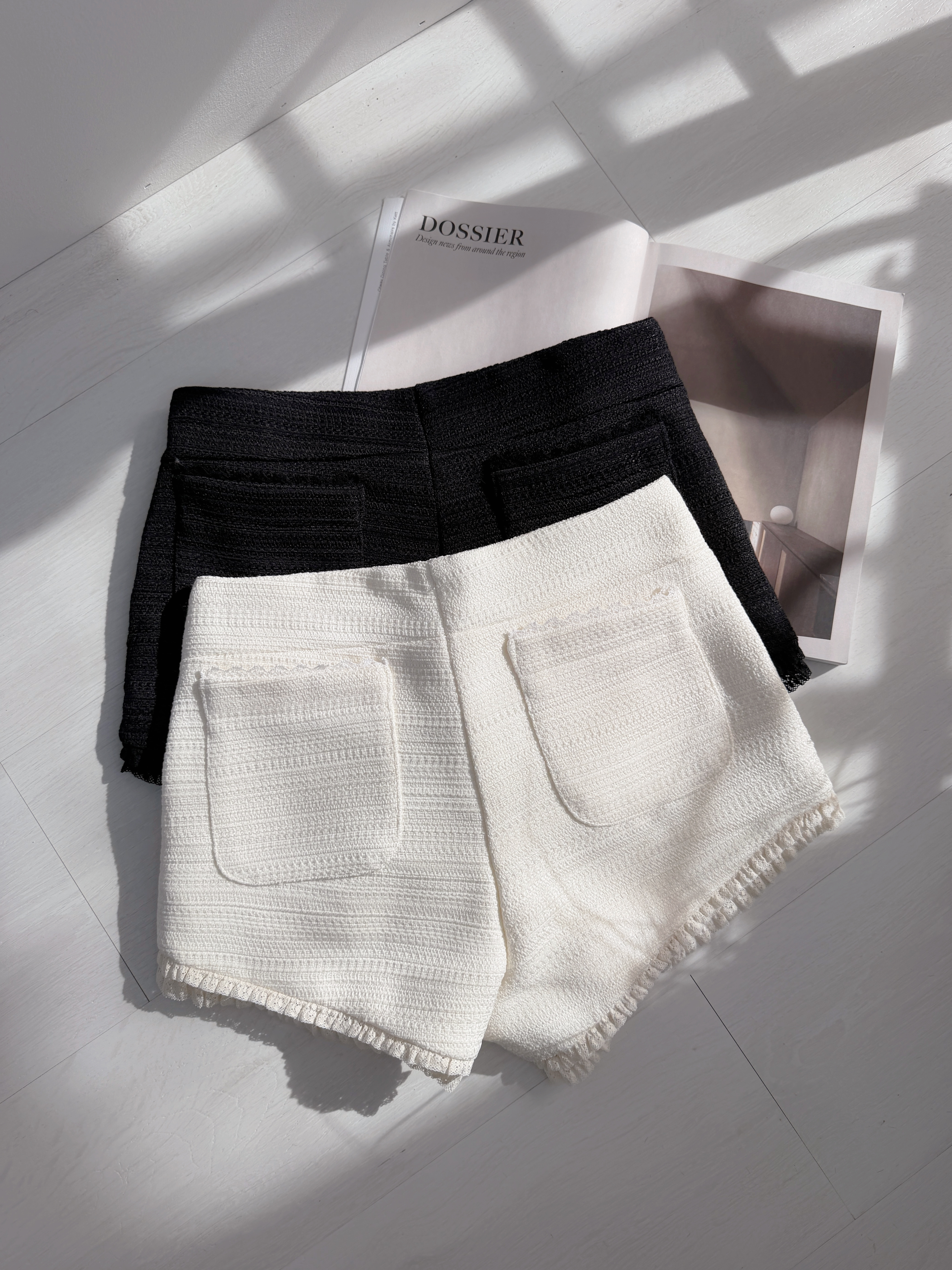 極短小香混紡毛呢提花雙口袋短褲