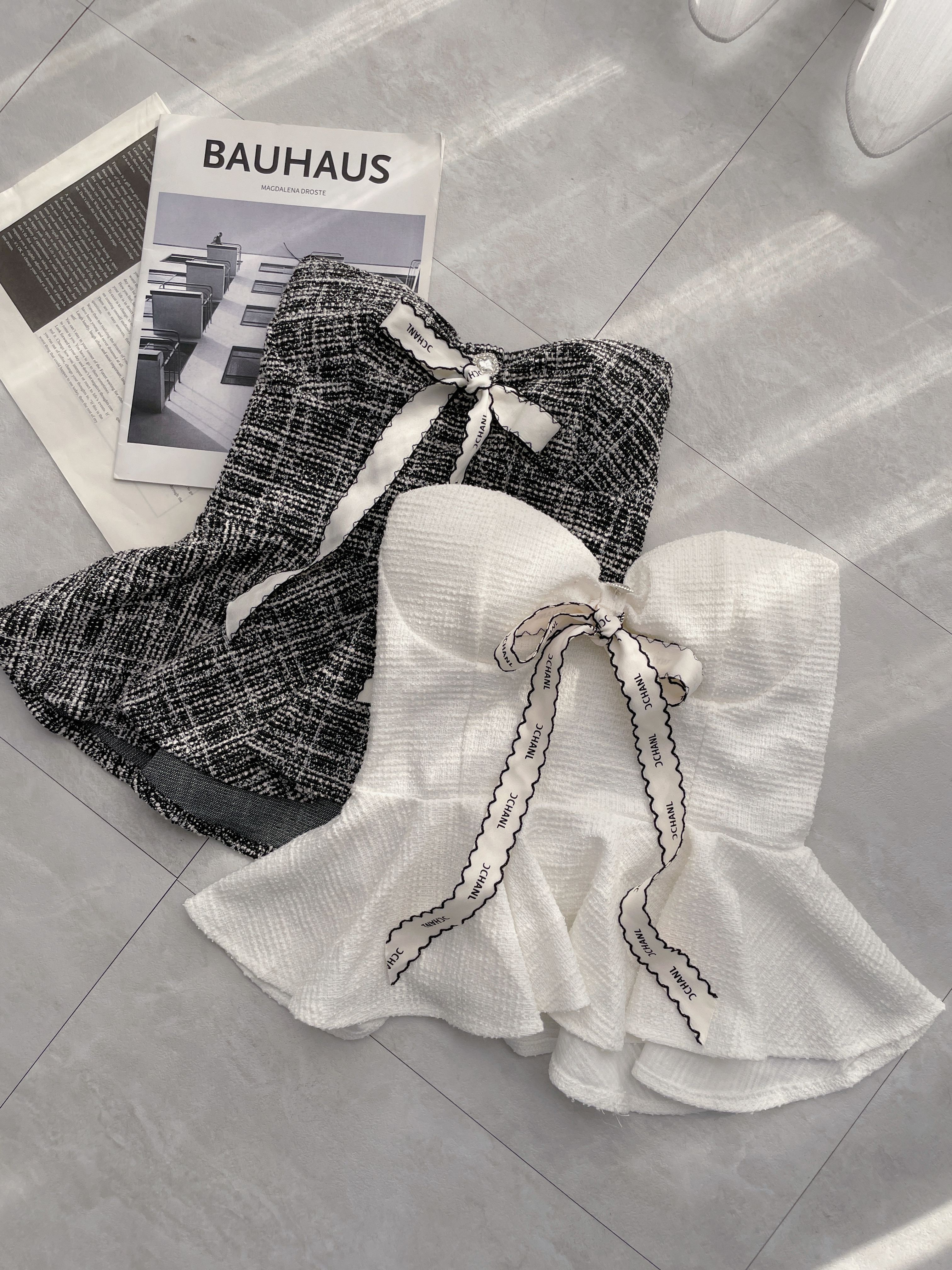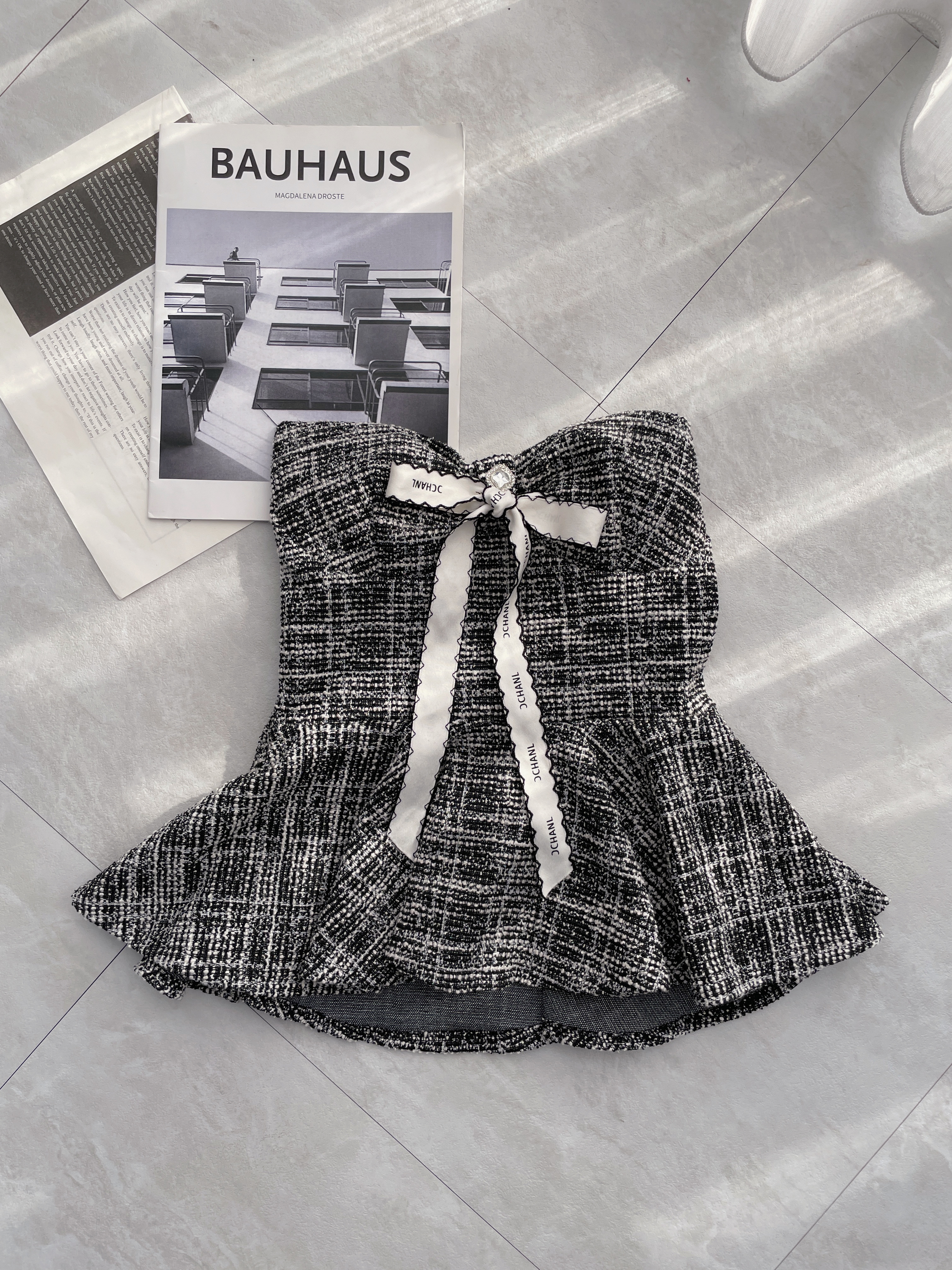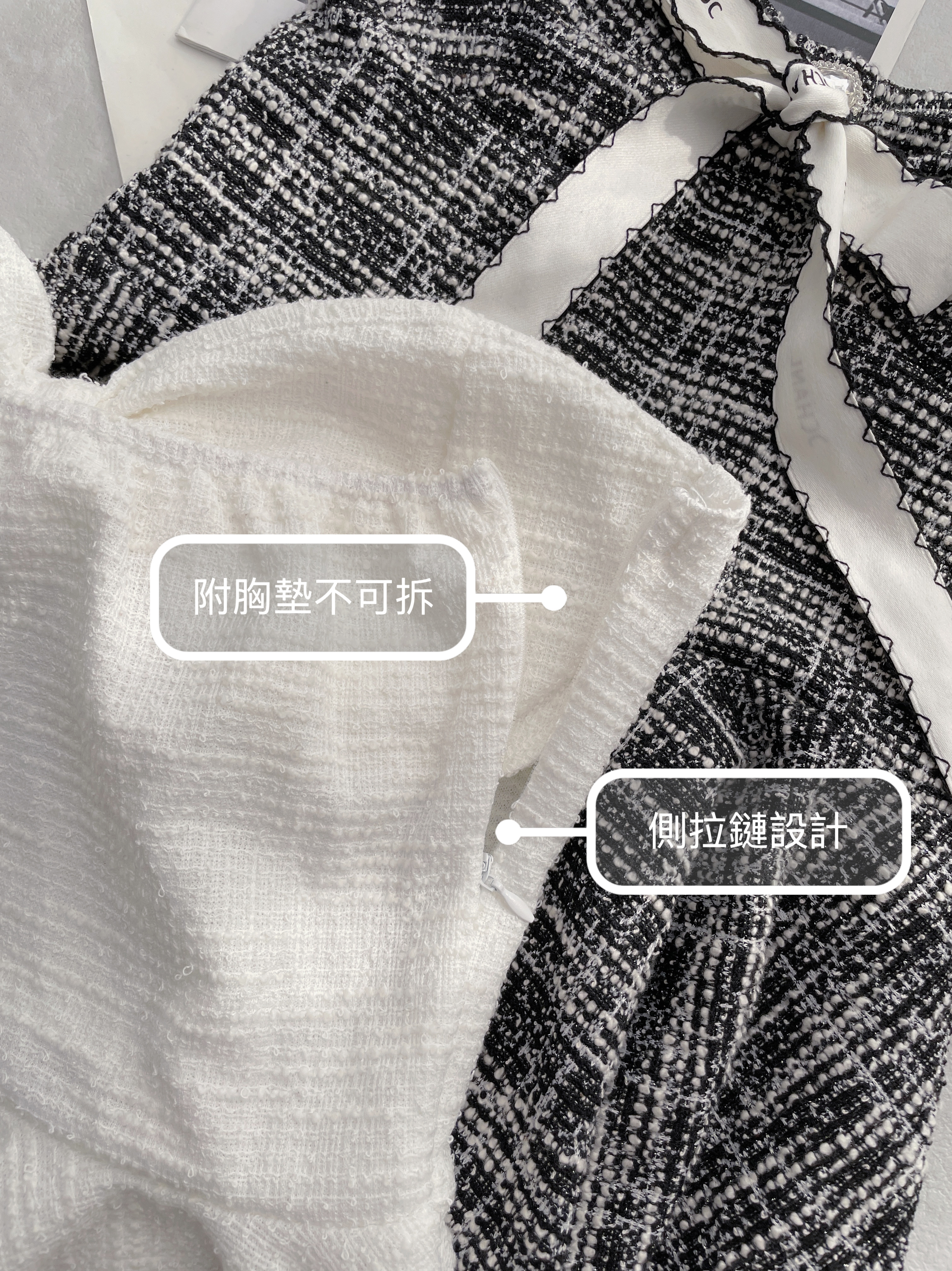 內胸墊+側隱形拉鏈,提升胸型支撐效果,讓整體曲線更立體,無需內衣也能穿搭,隱形側拉鍊好穿脫。 - 小香風面料: