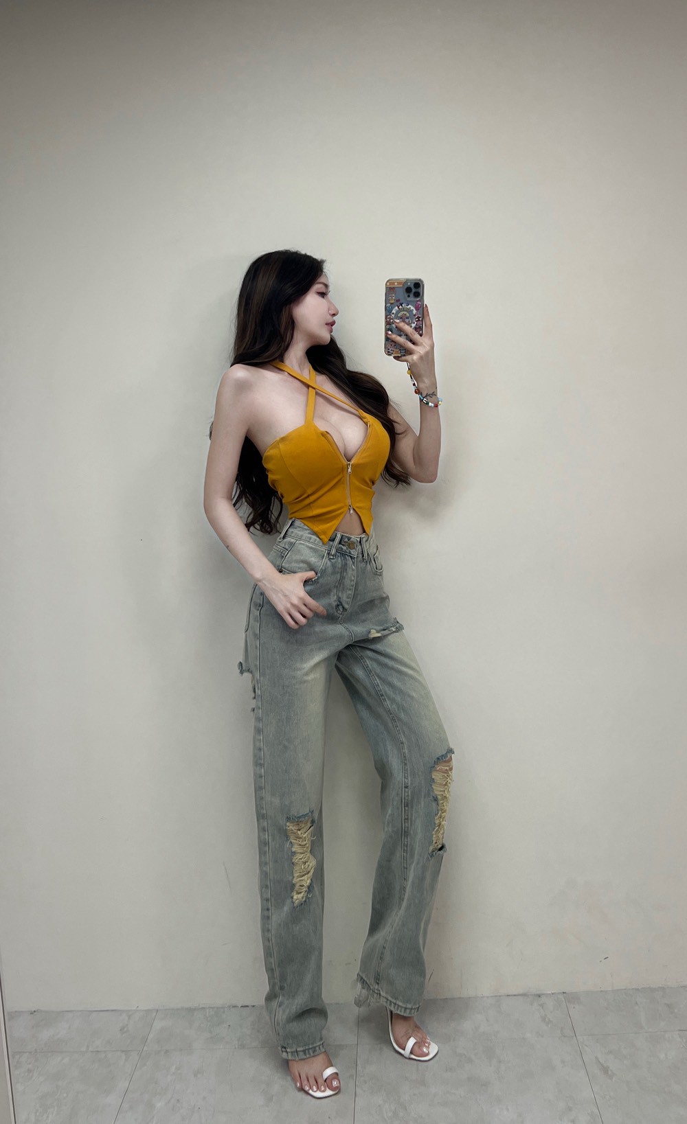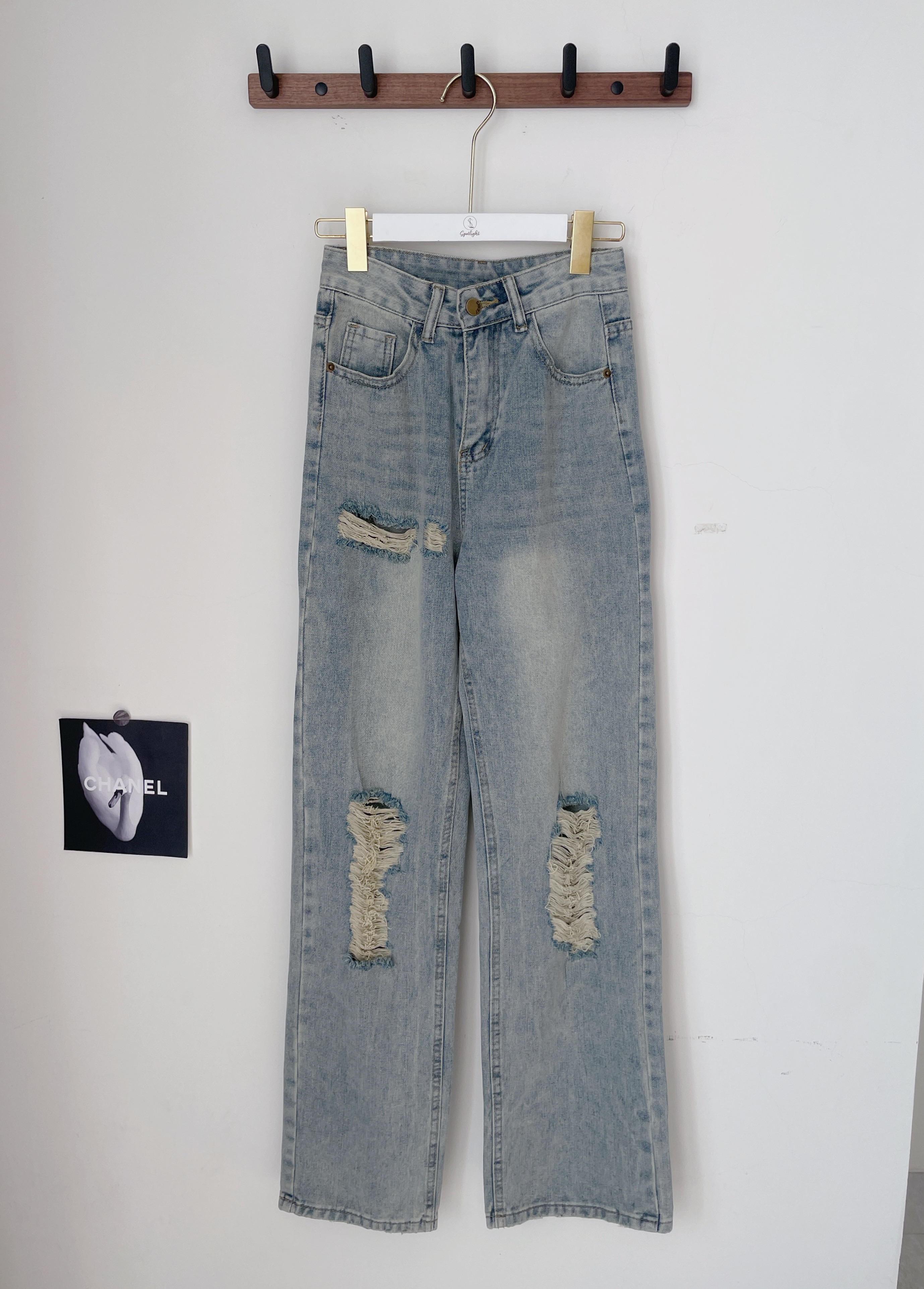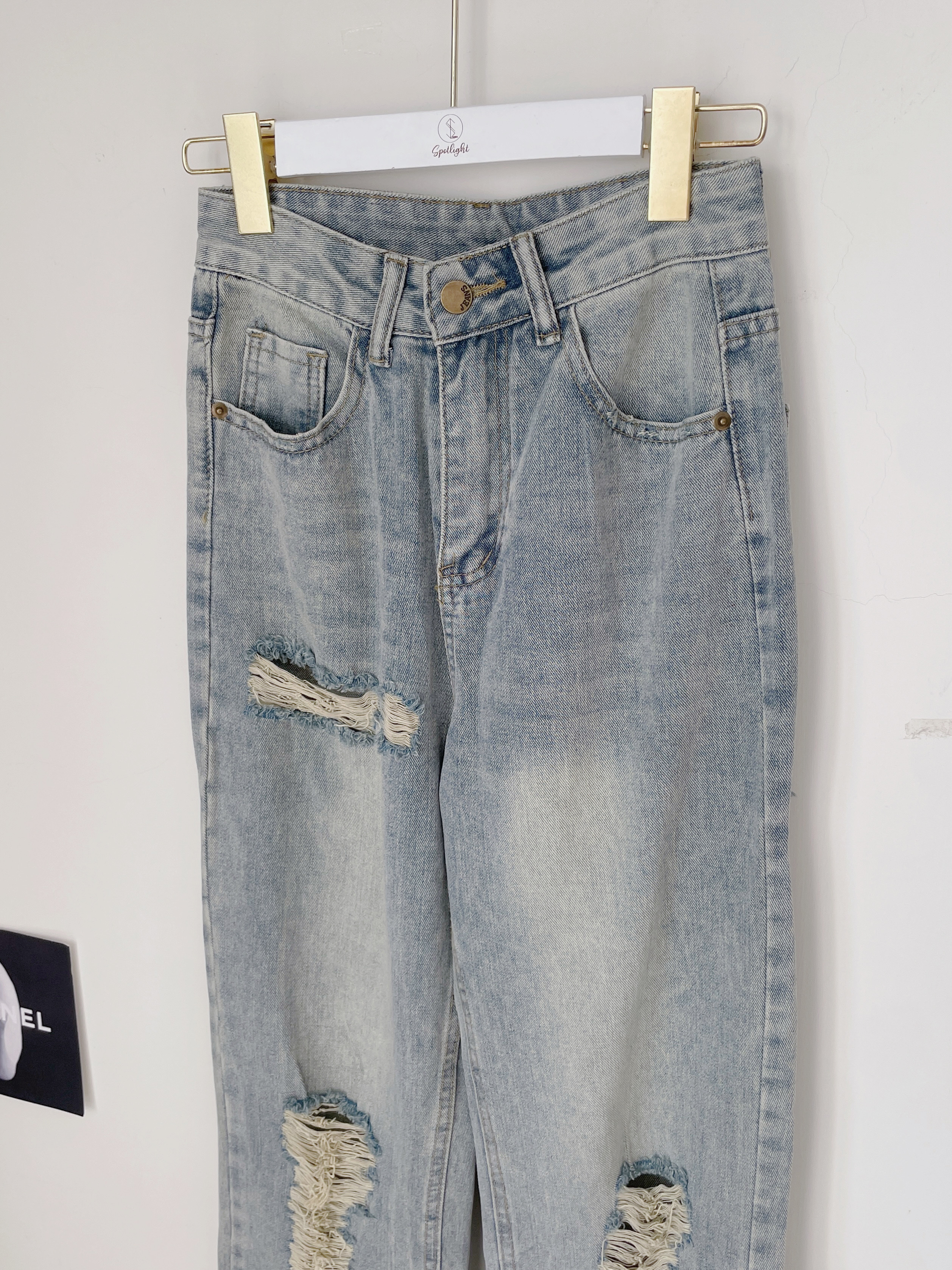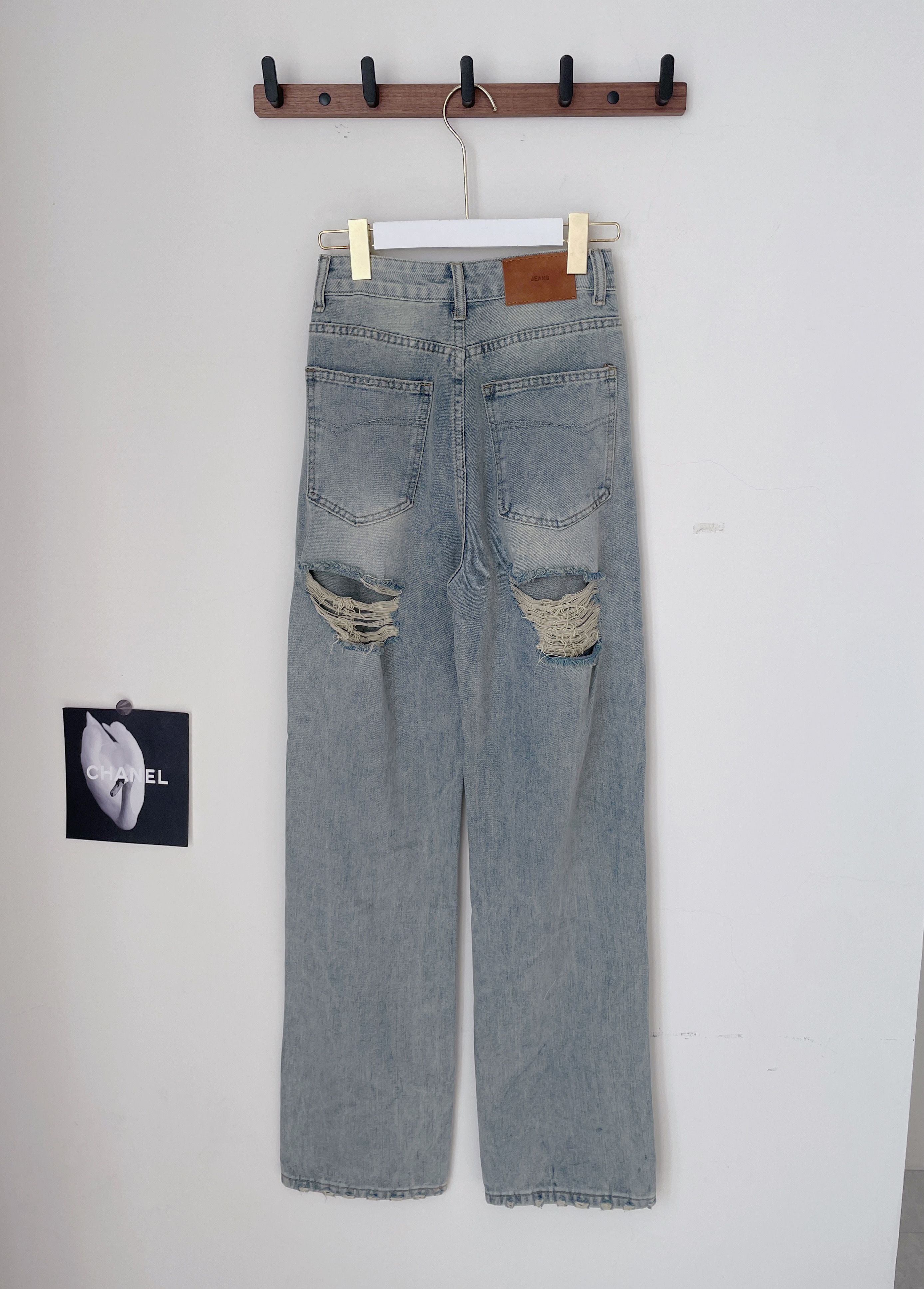 牛仔仿舊刷破寬褲