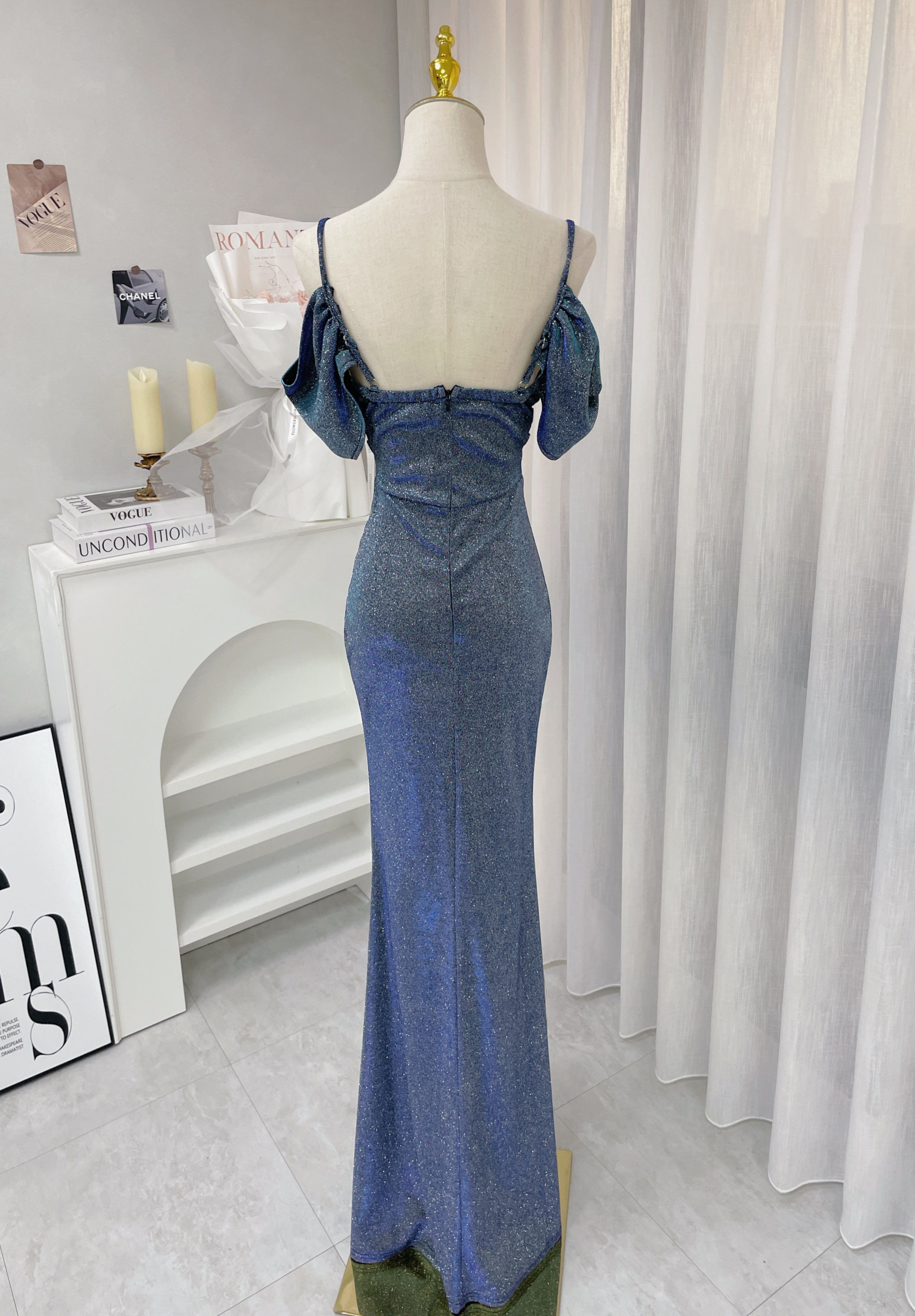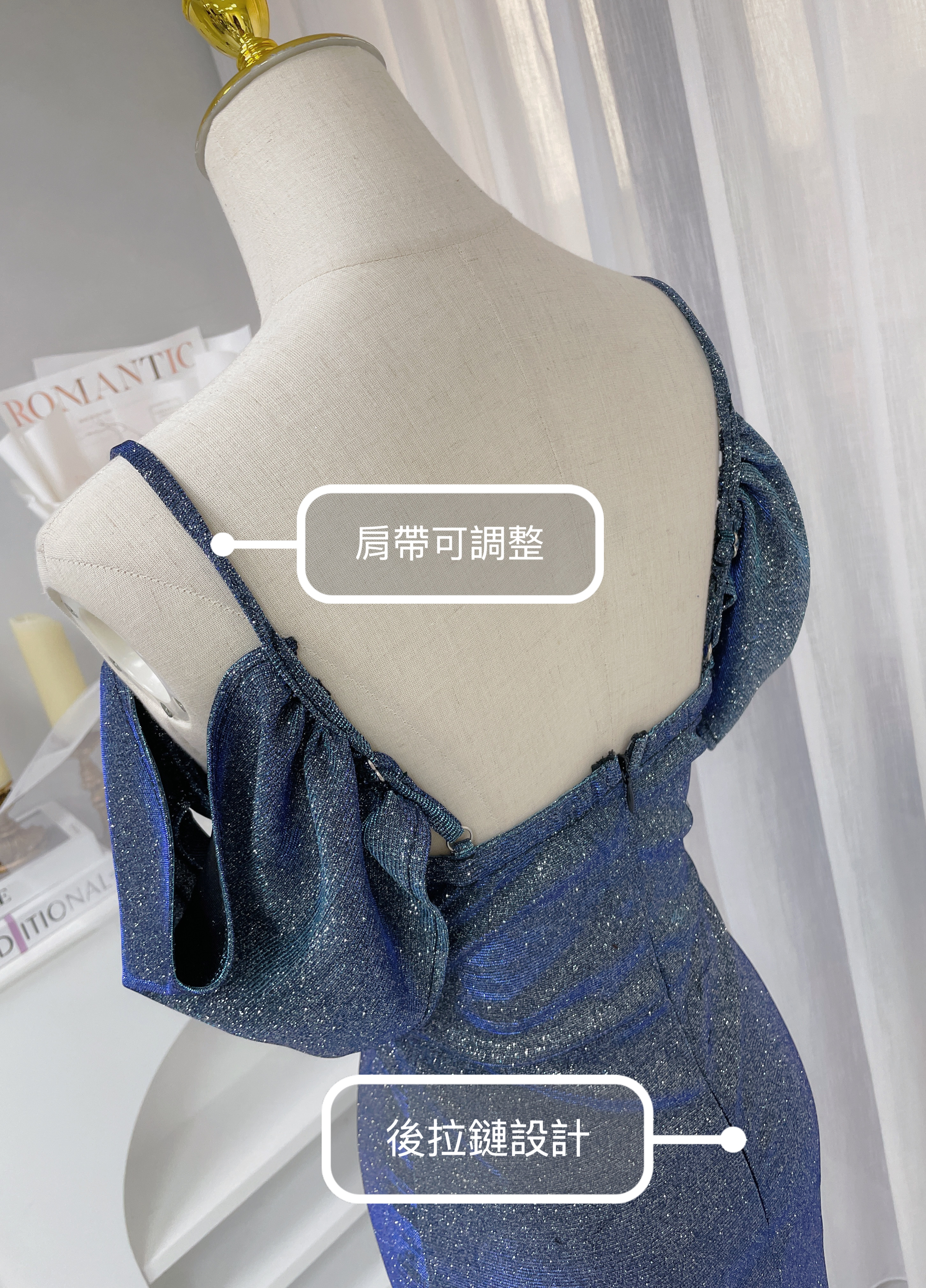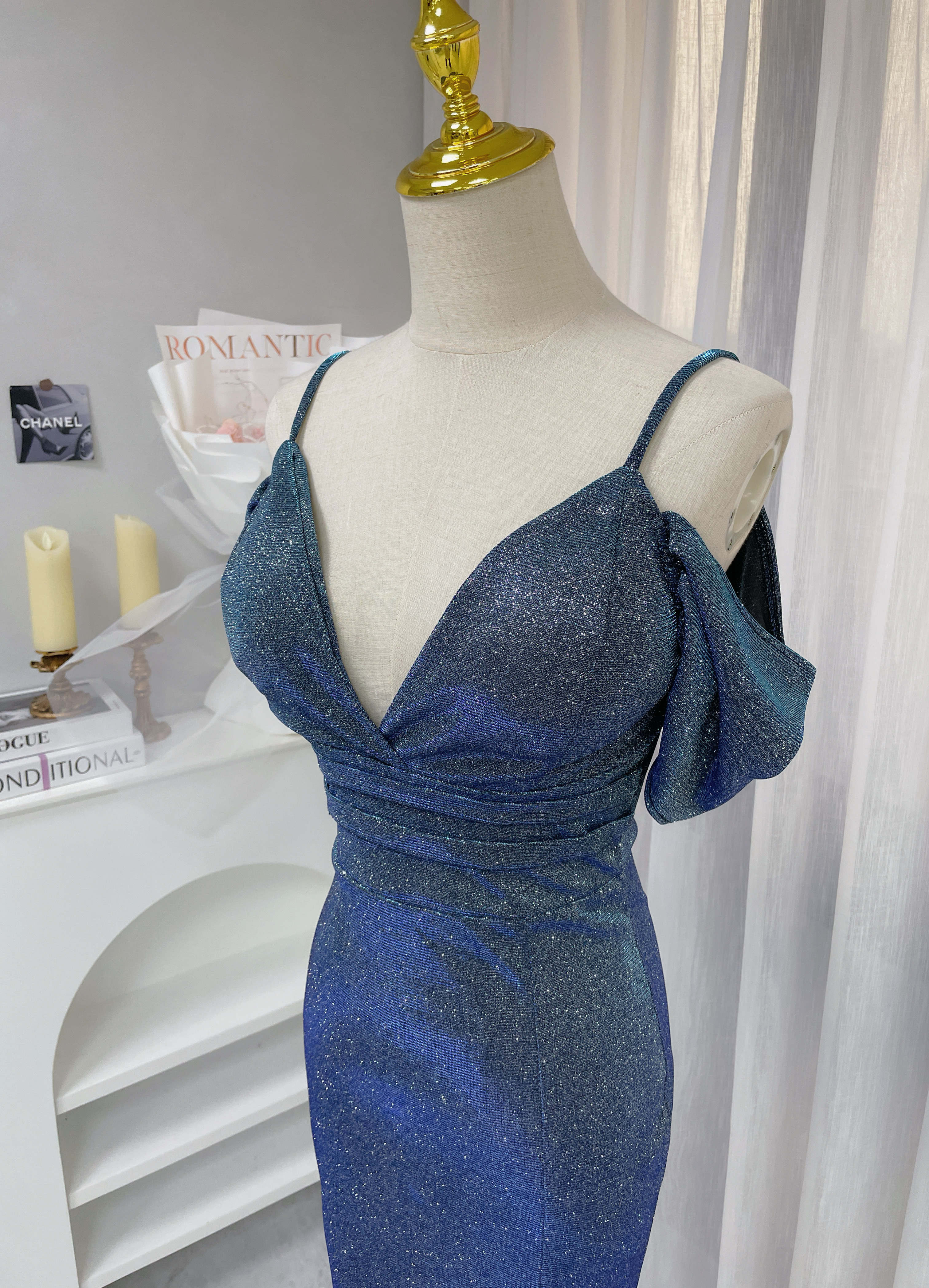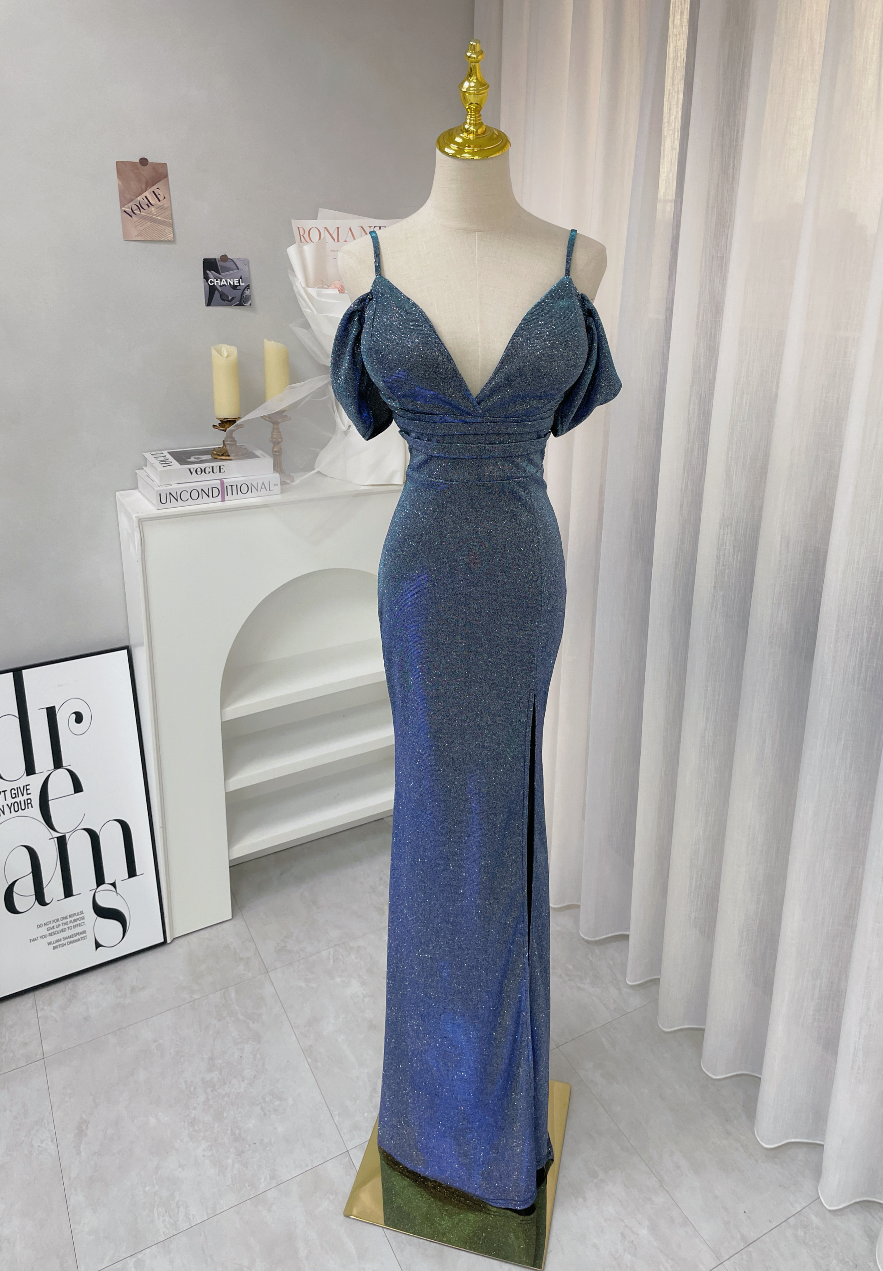 璀璨星空 V領開袖漸層亮片長禮服