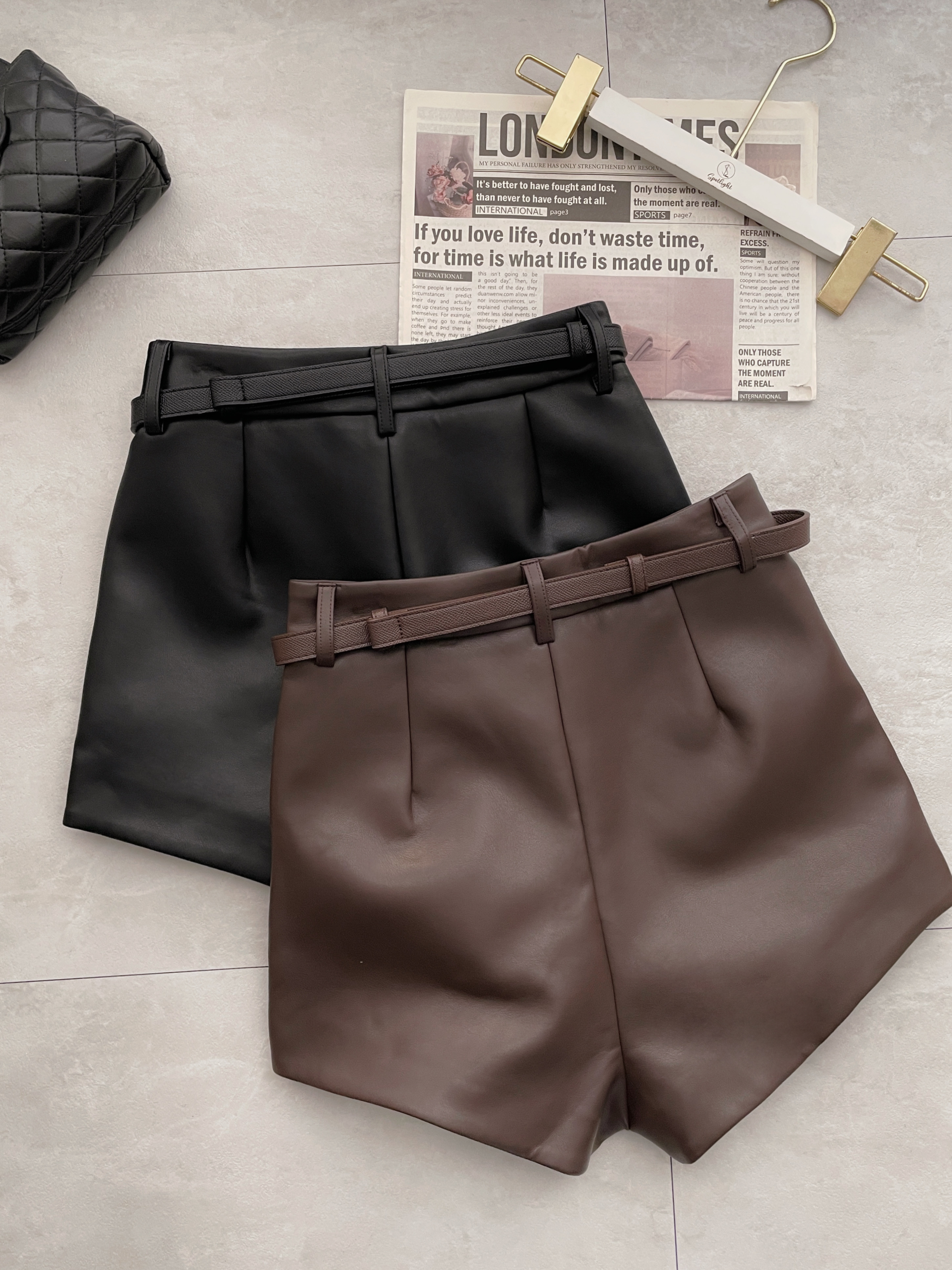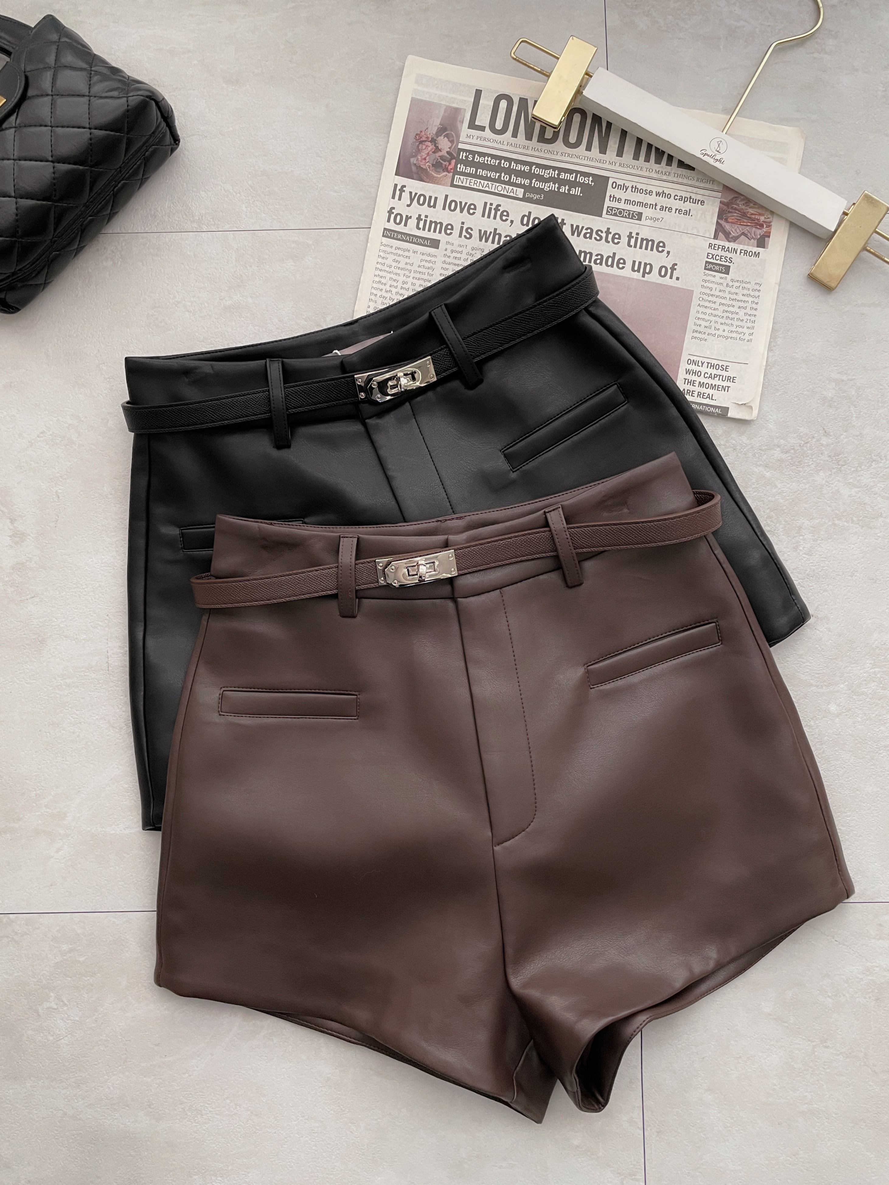 百搭酷辣 假口袋附腰帶皮革短褲