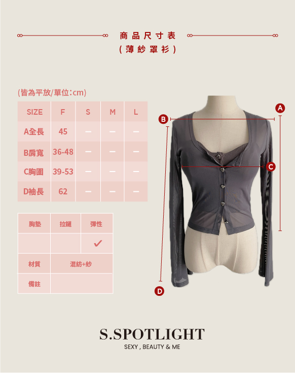 罩衫| 採透氣霧感柔紗,木耳滾邊喇叭袖增添輕柔氣息;一整排菱格紋愛心銀釦可開釦,優雅又帶點甜辣氛圍。