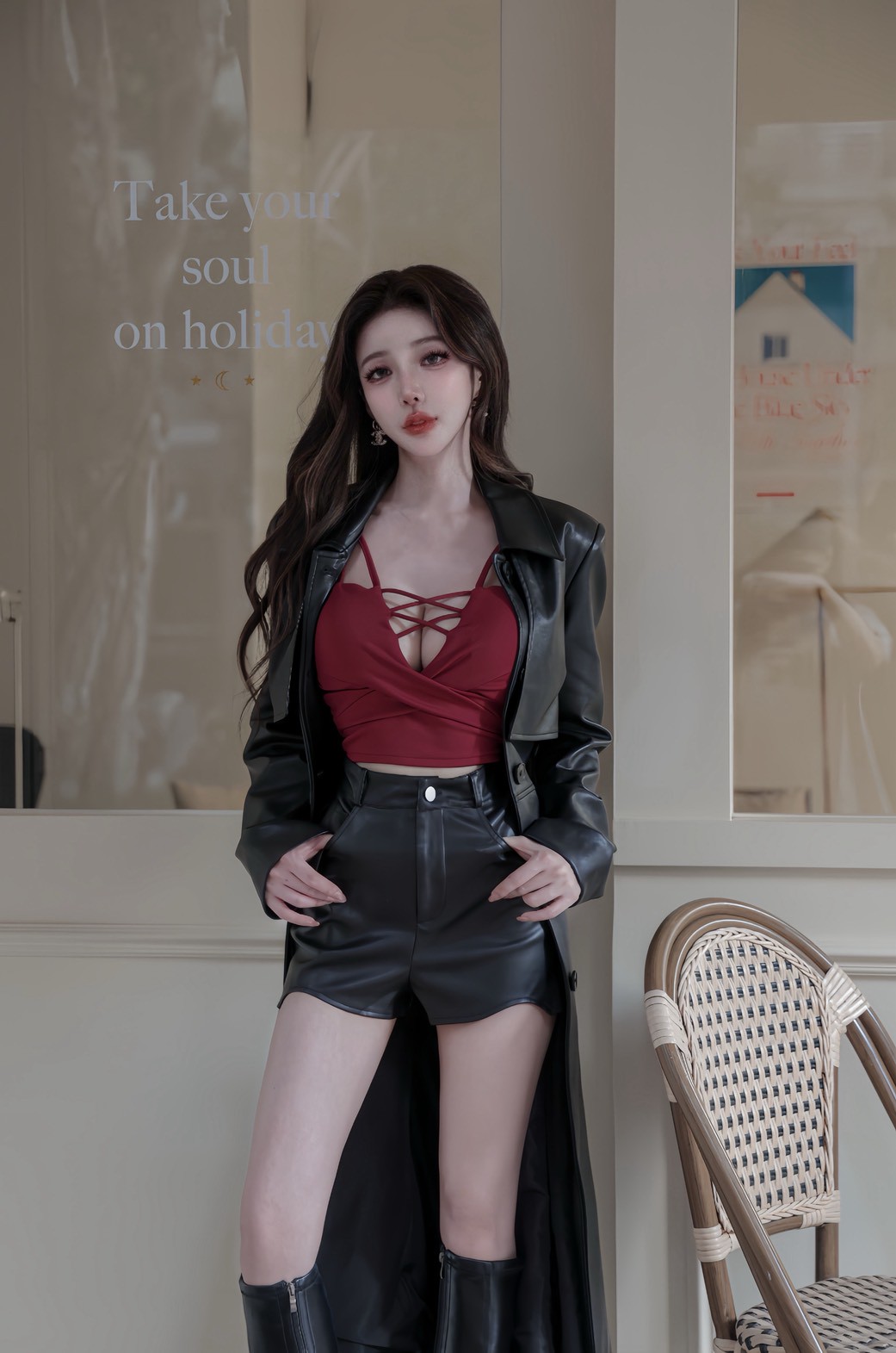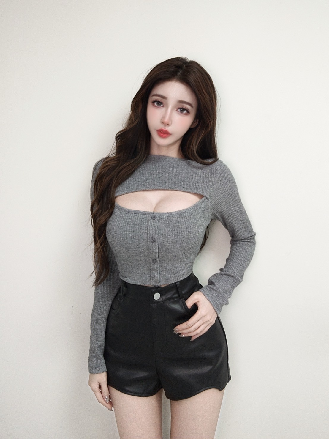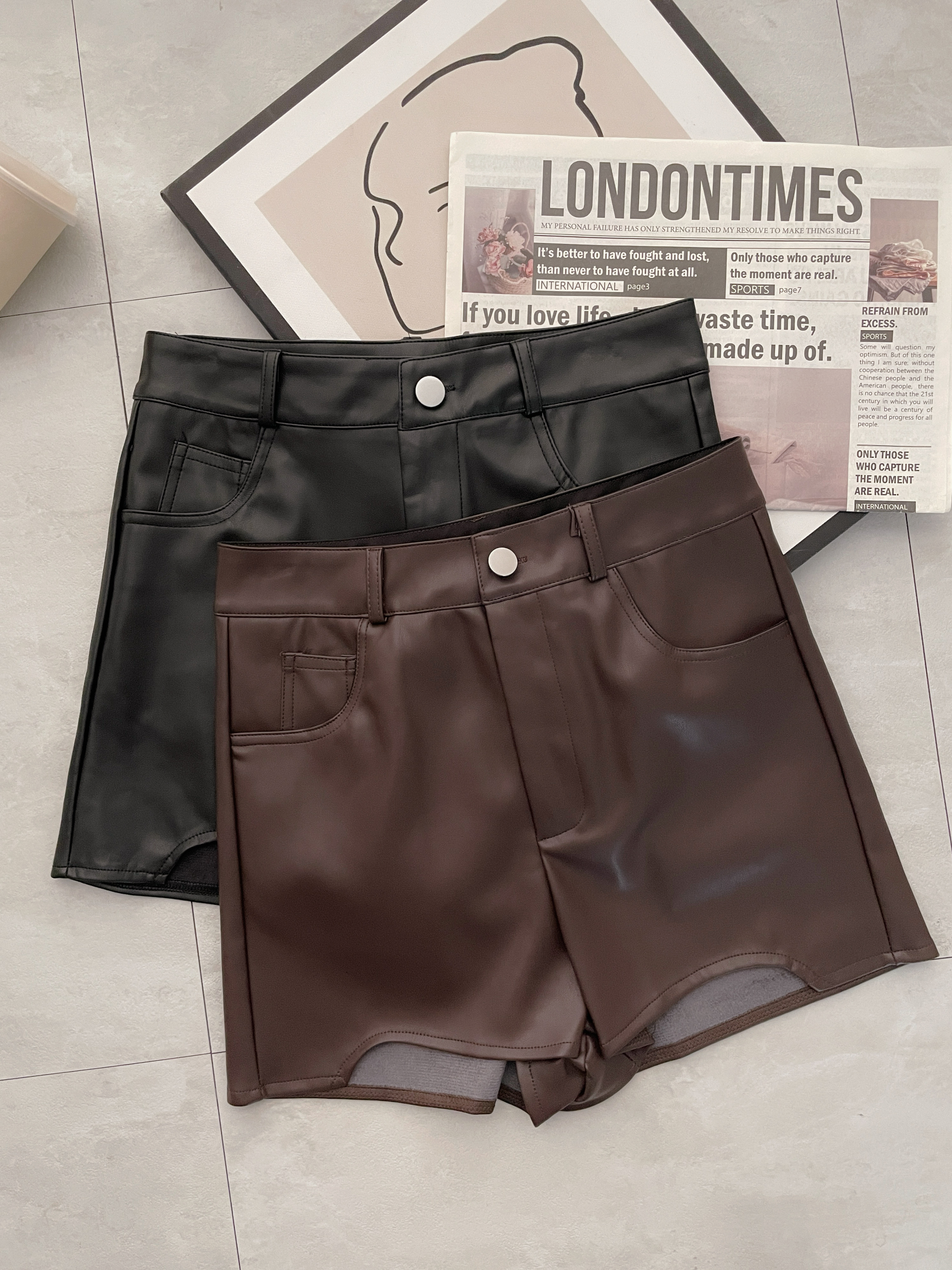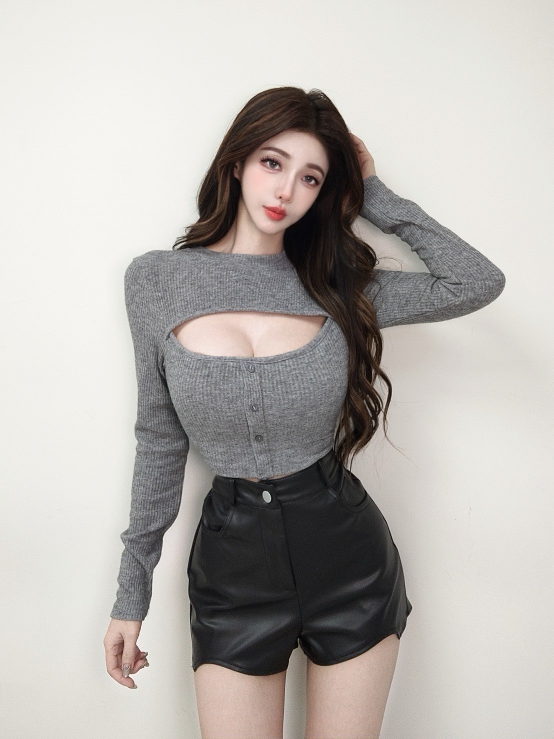 辣妹皮革挖腿短褲