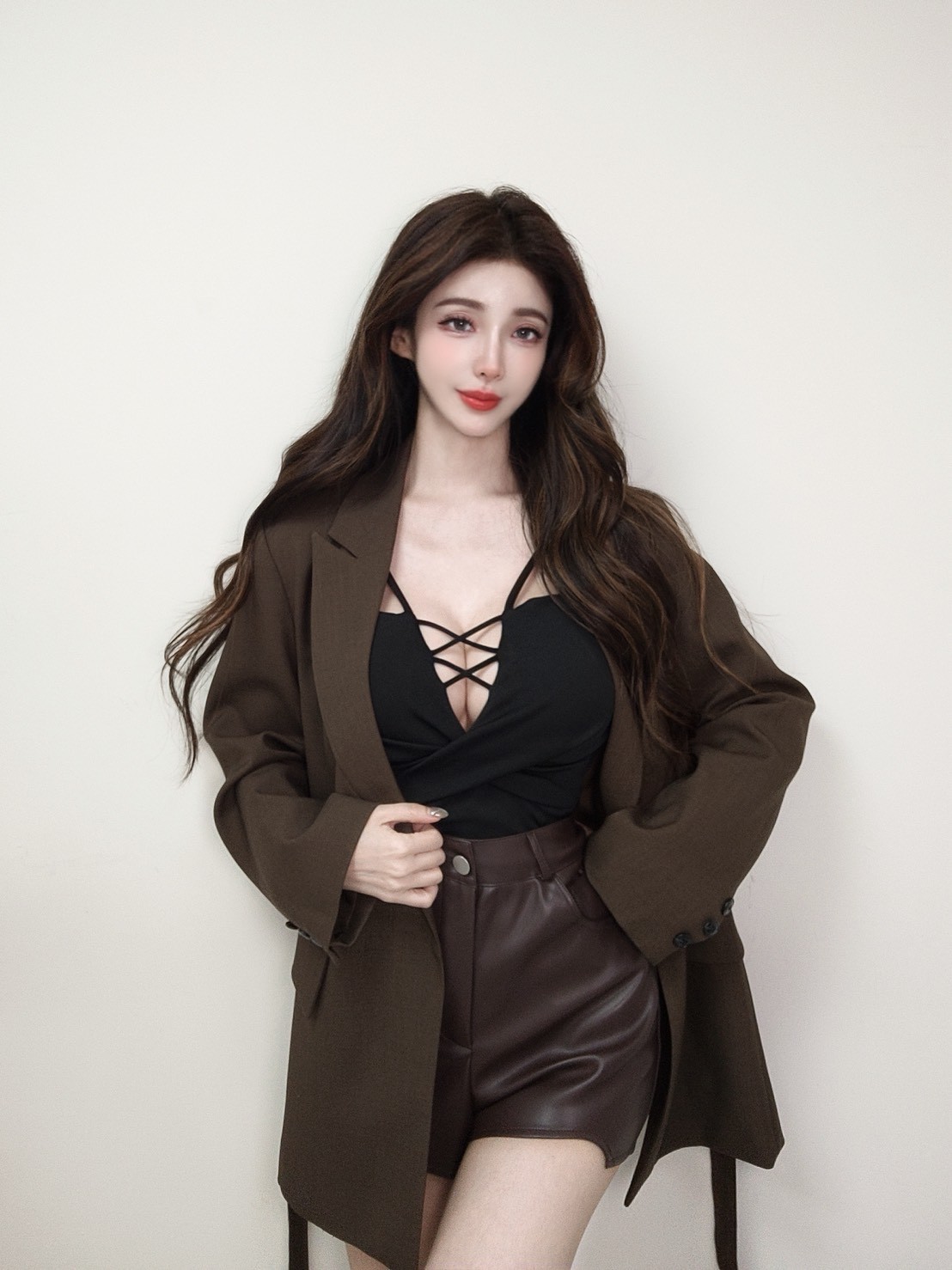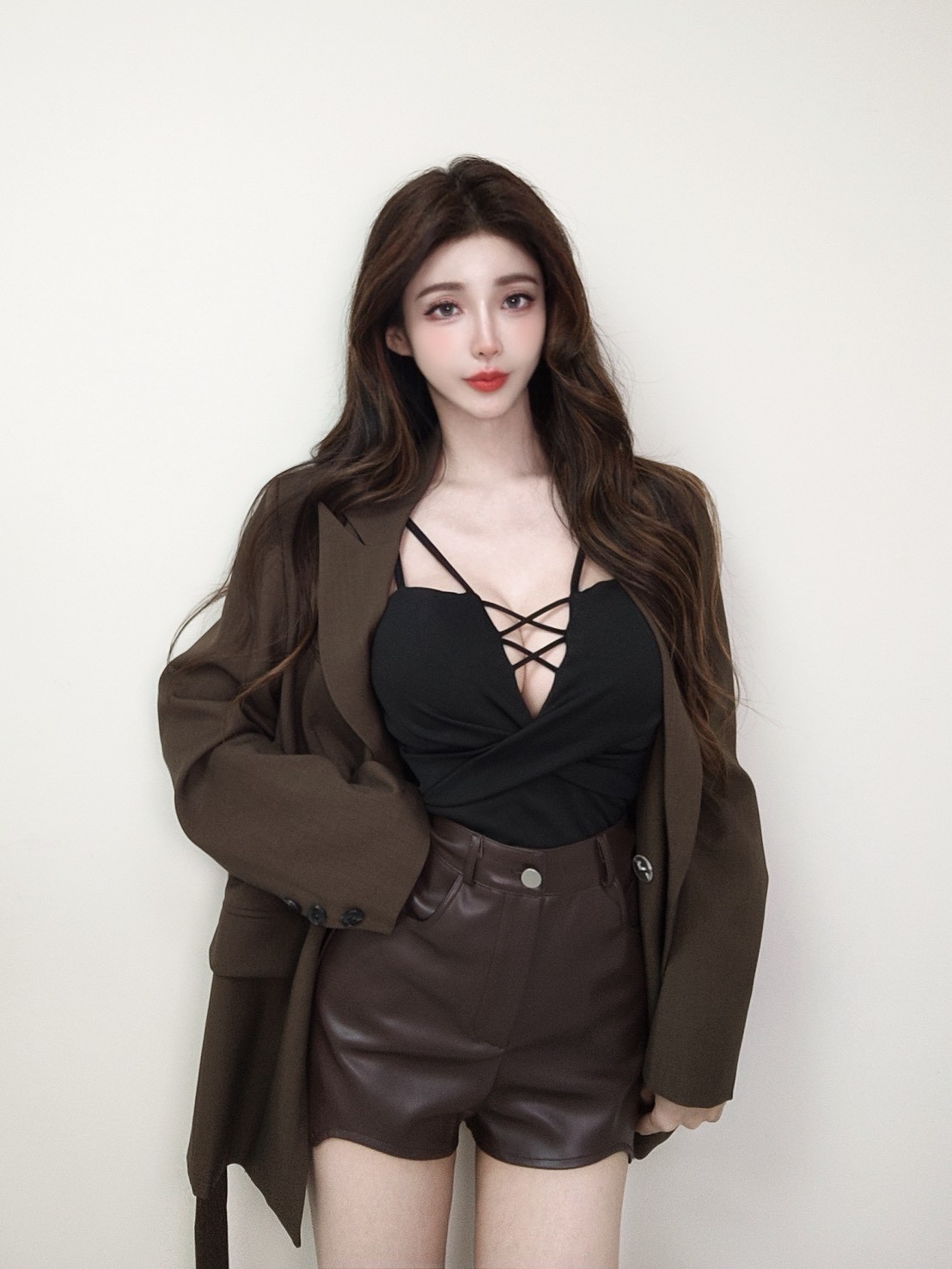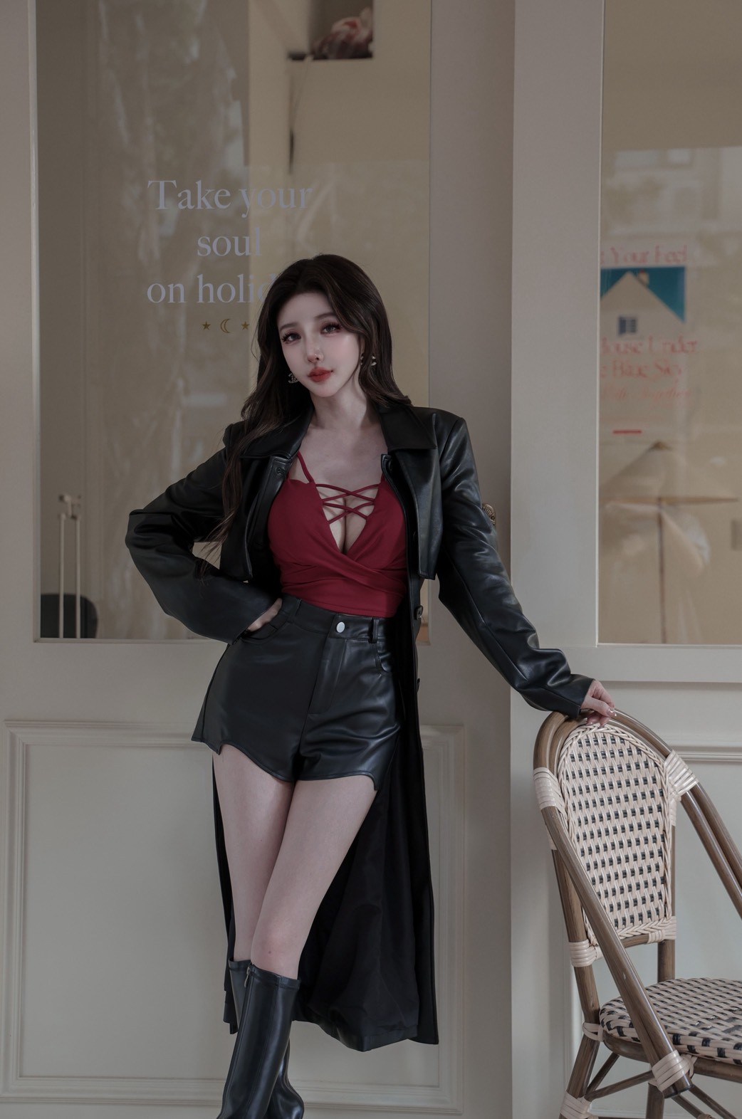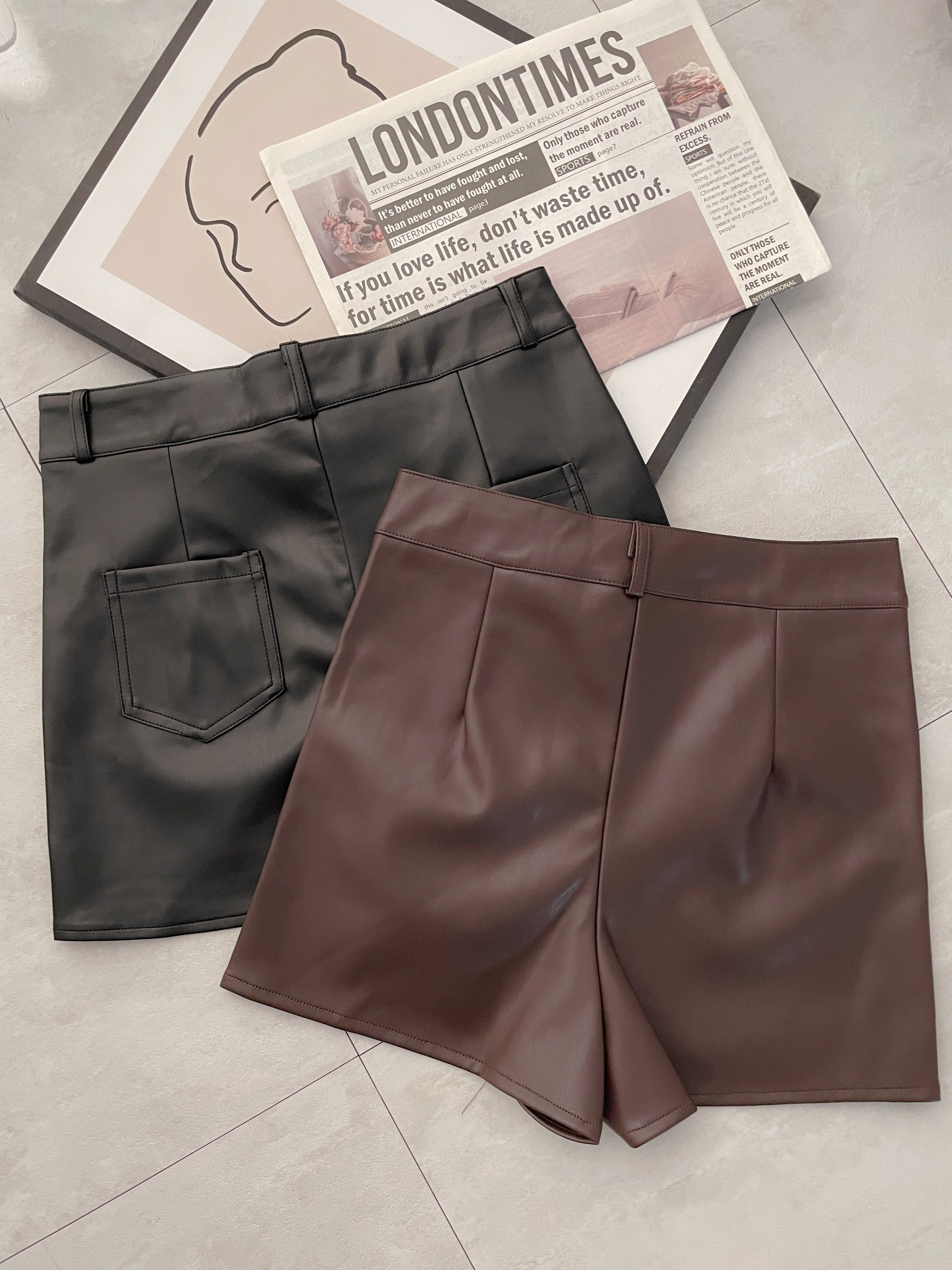 辣妹皮革挖腿短褲
