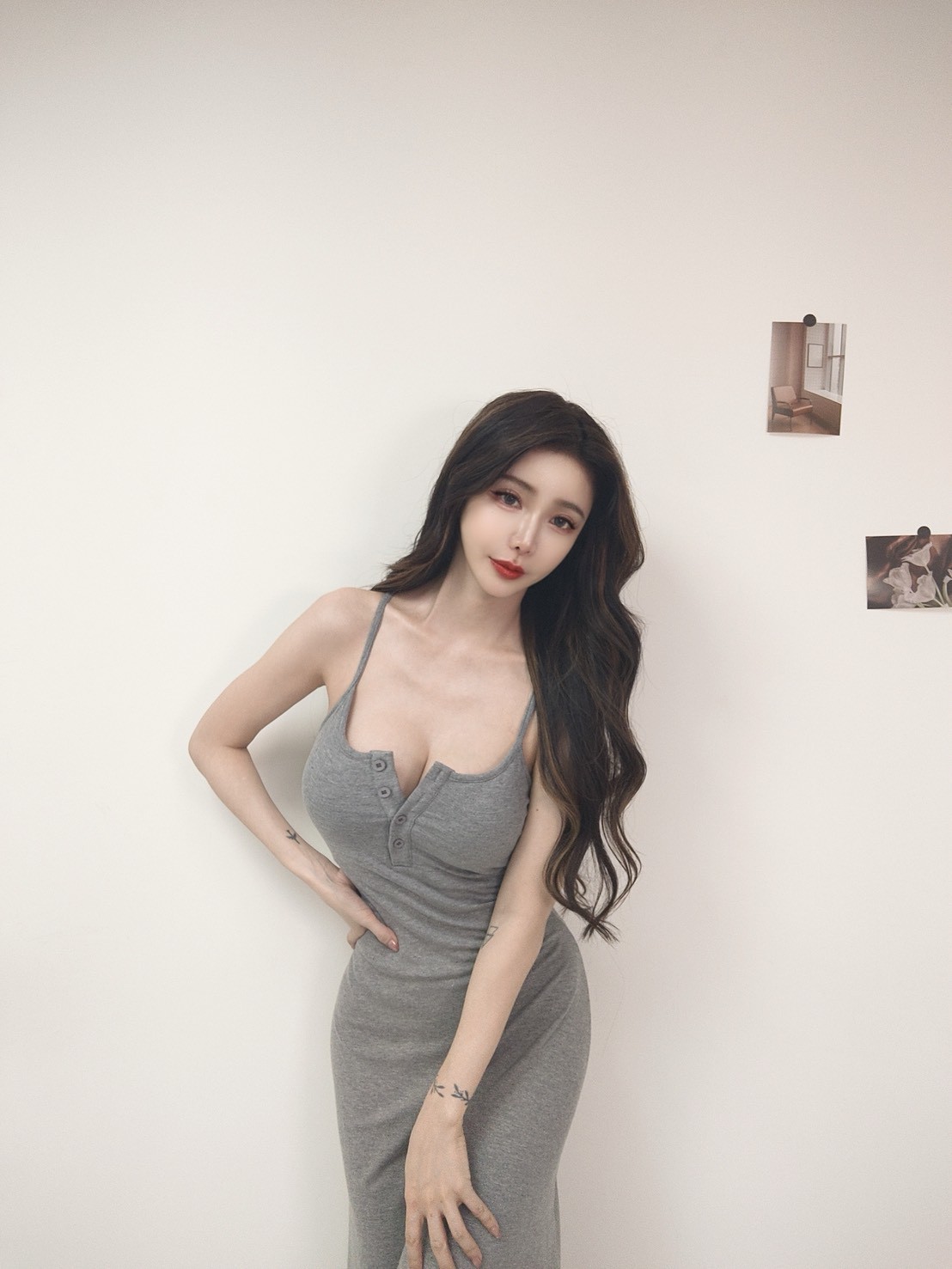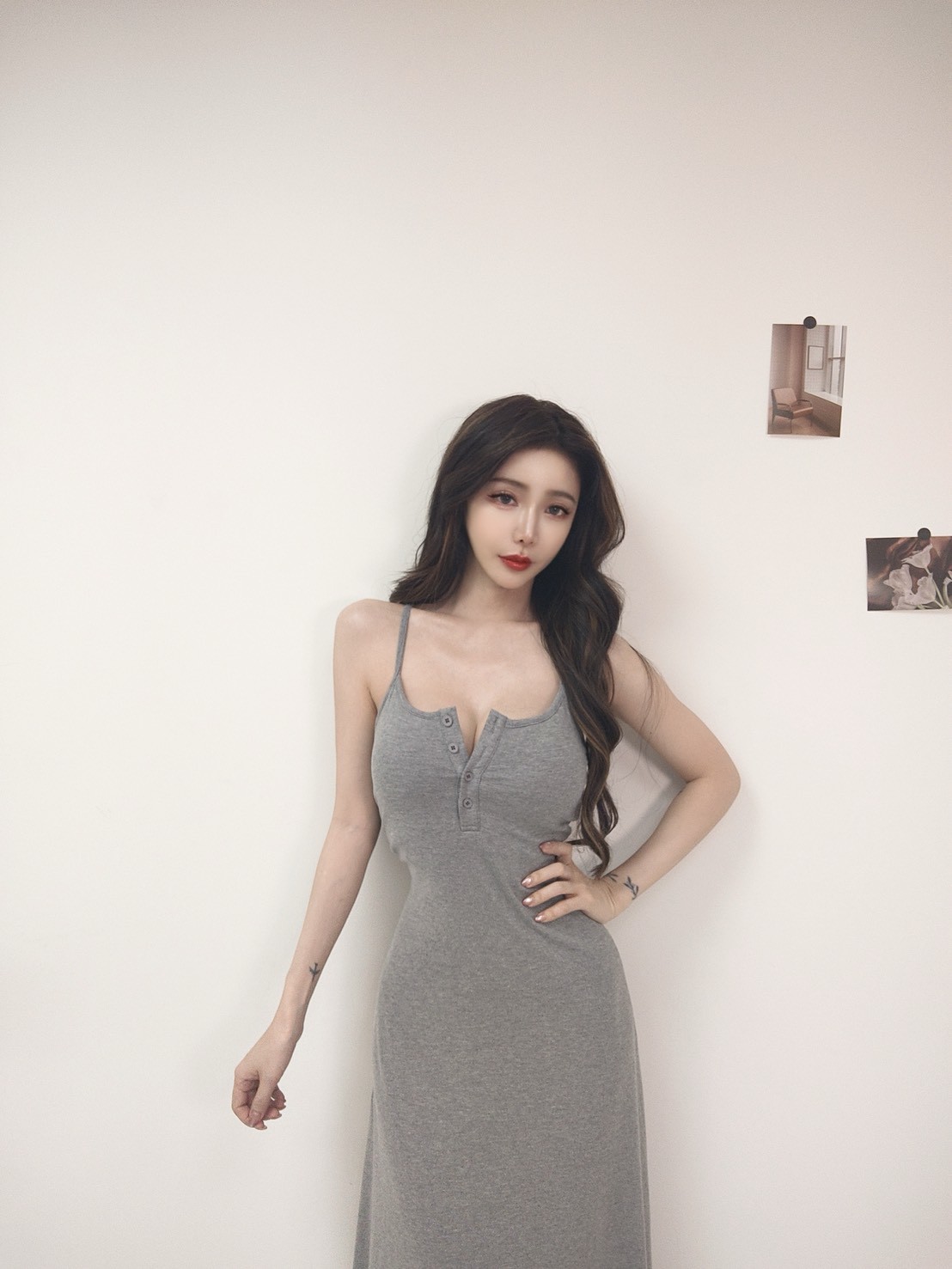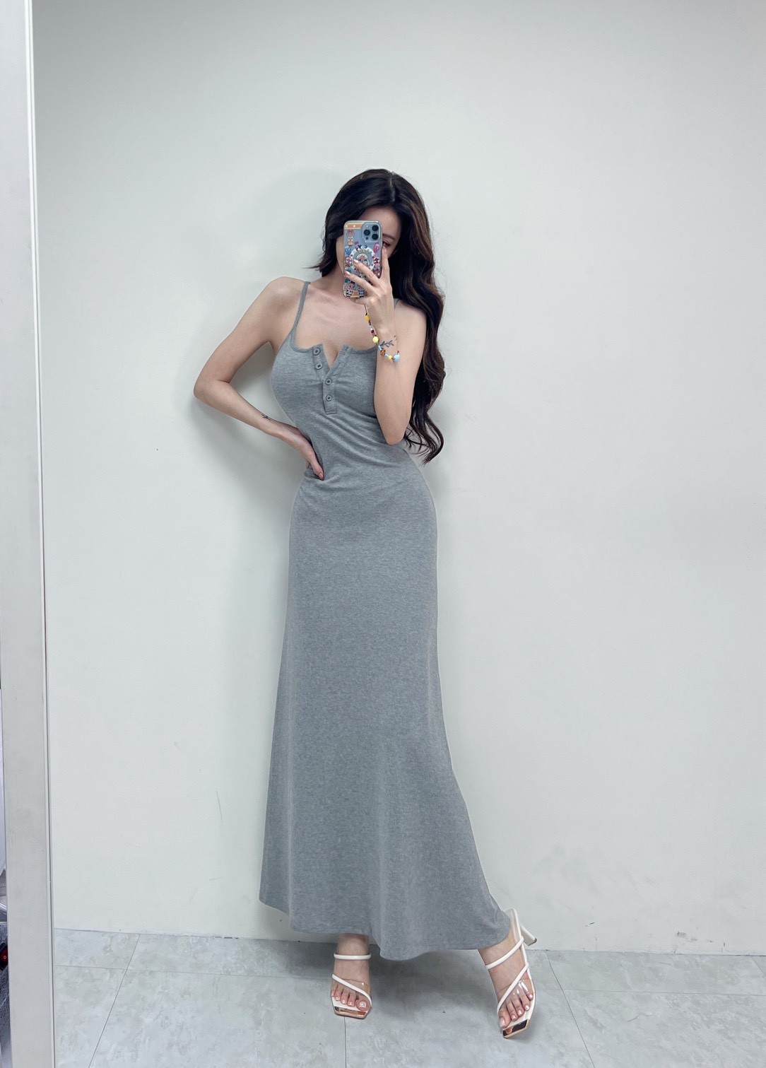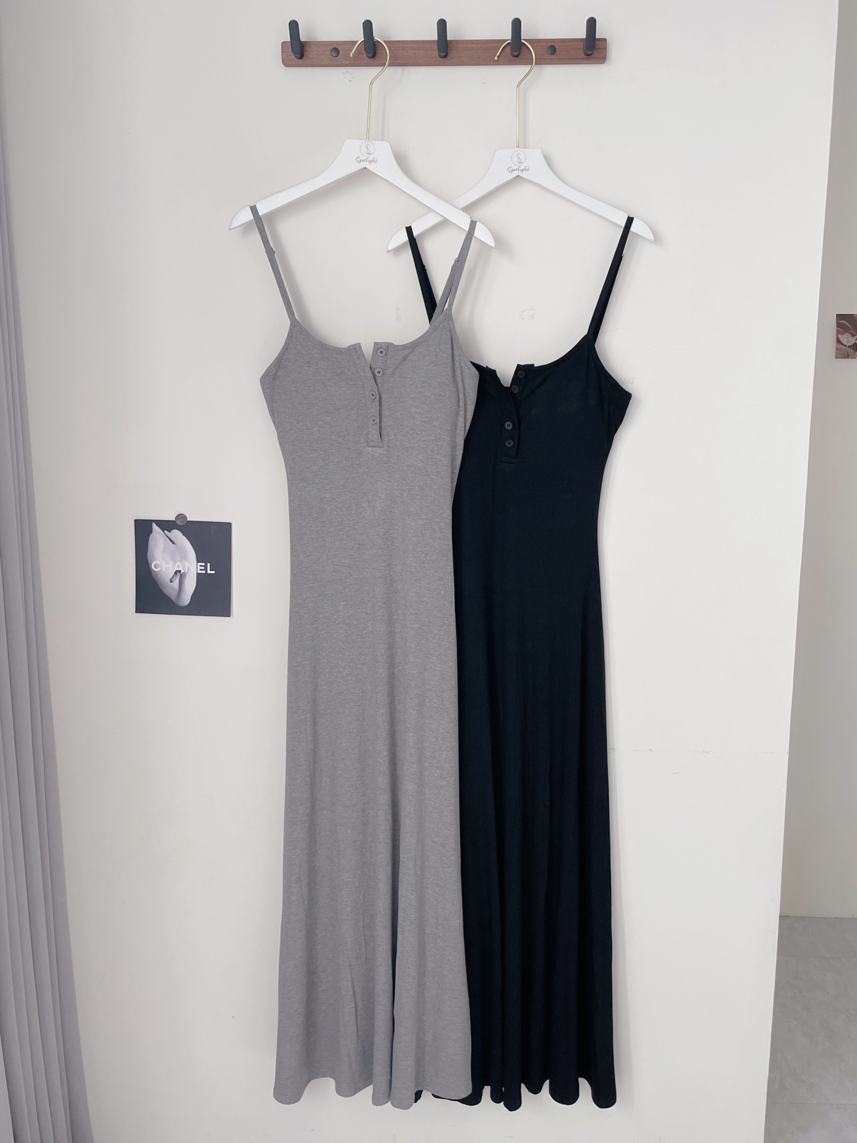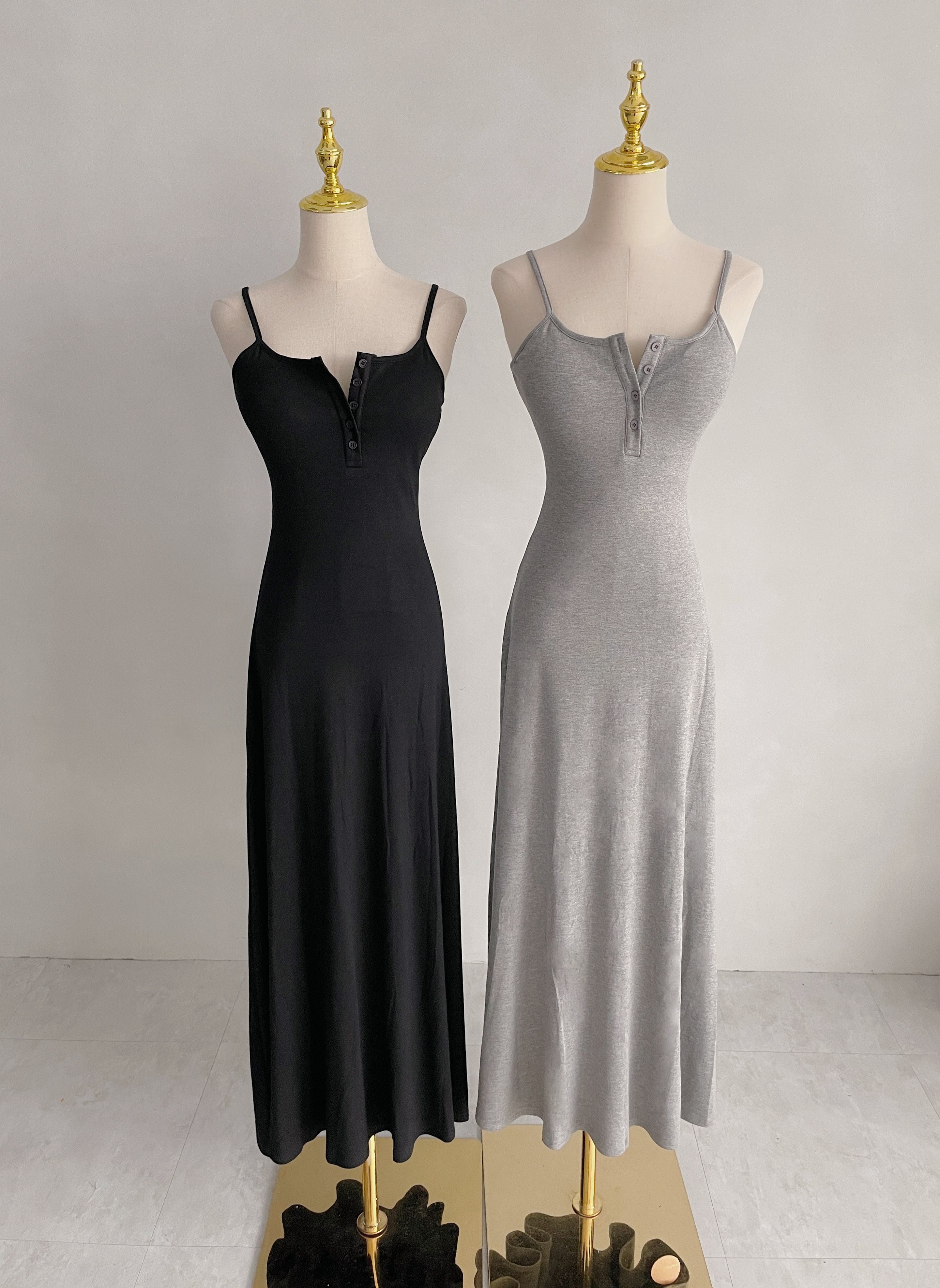 重磅顯瘦 細肩排釦收腰棉質長洋