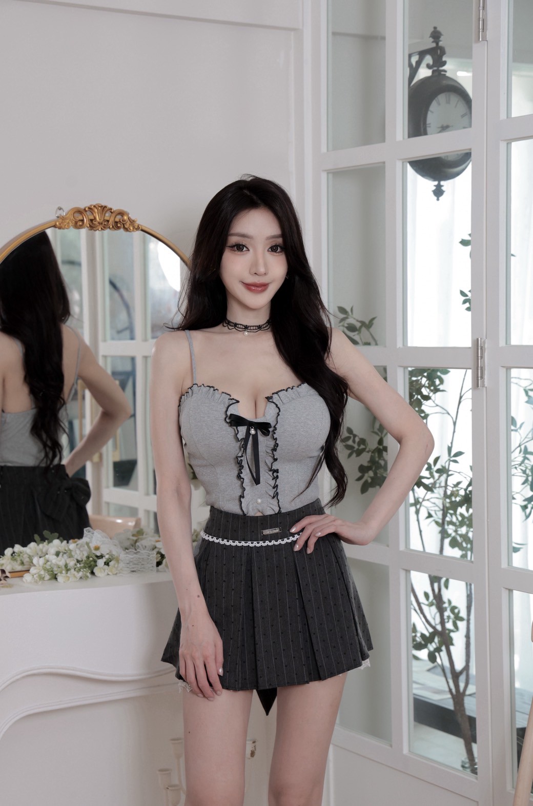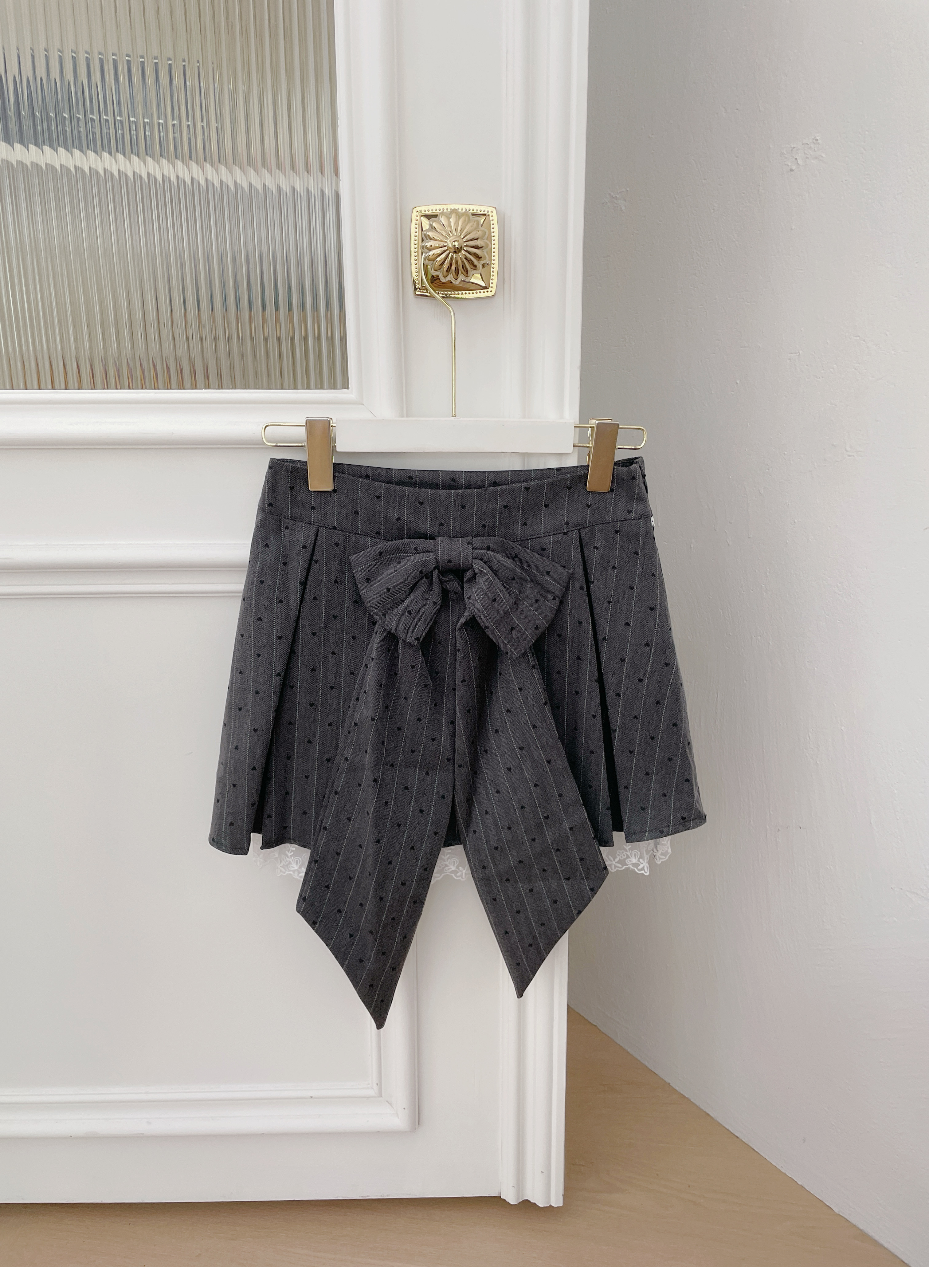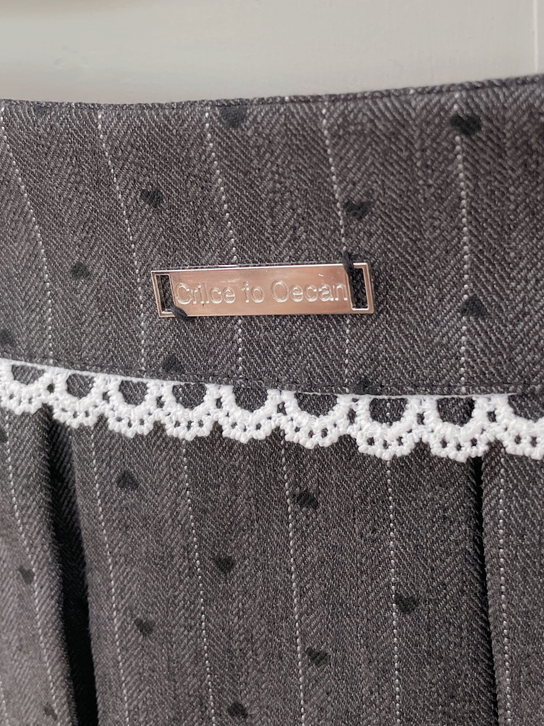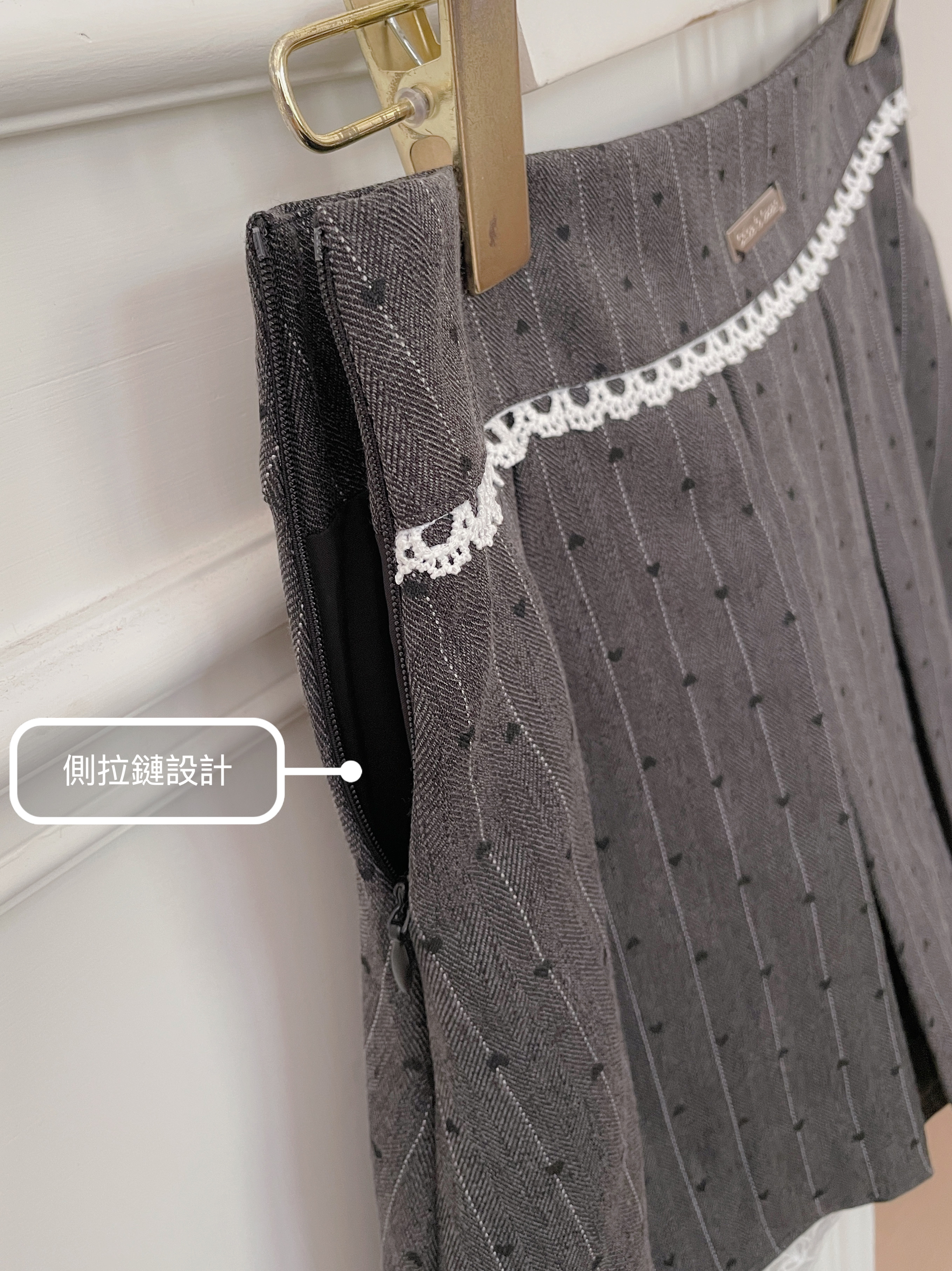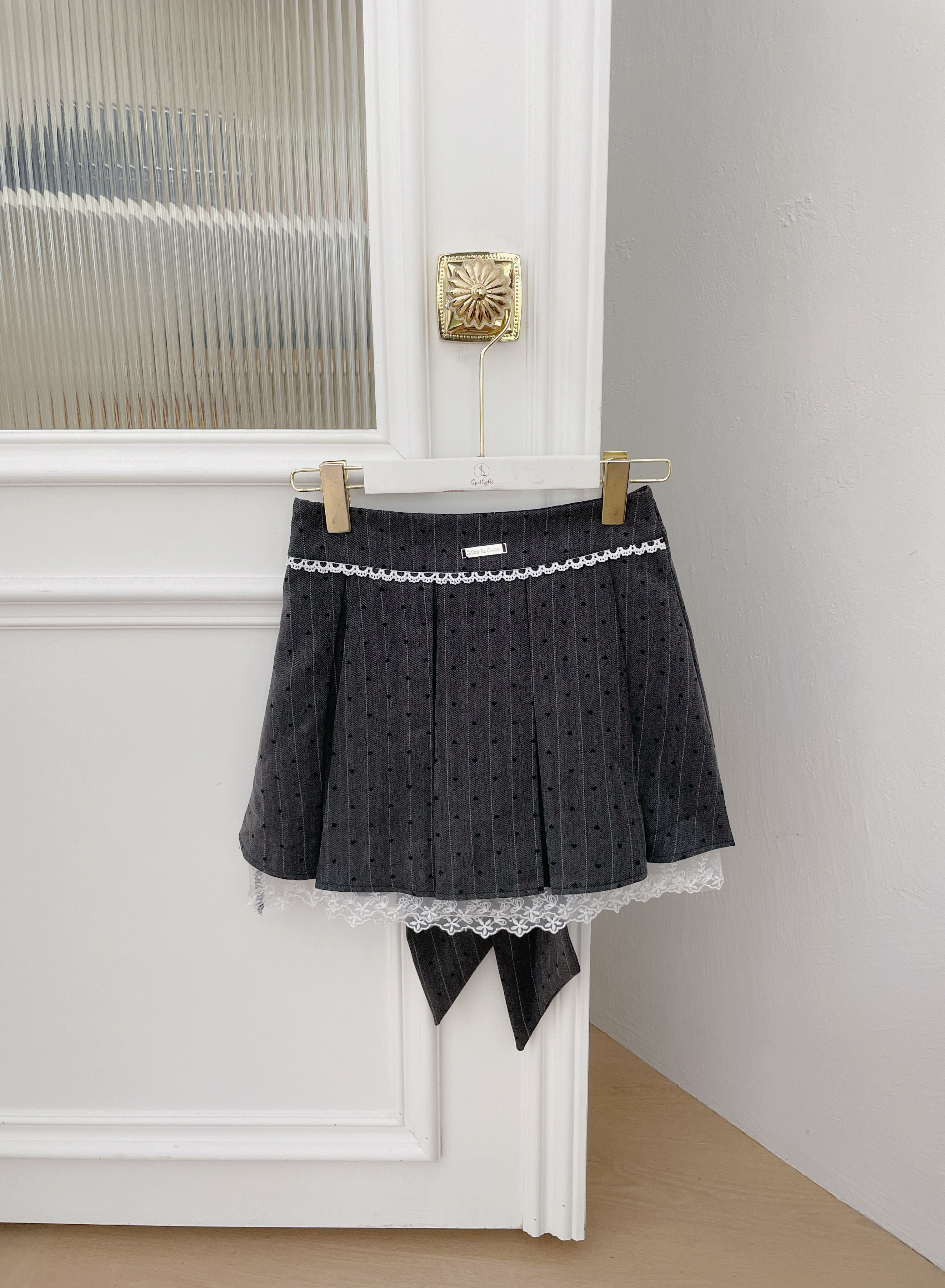 銀標拼接蕾絲後蝴蝶結百褶裙