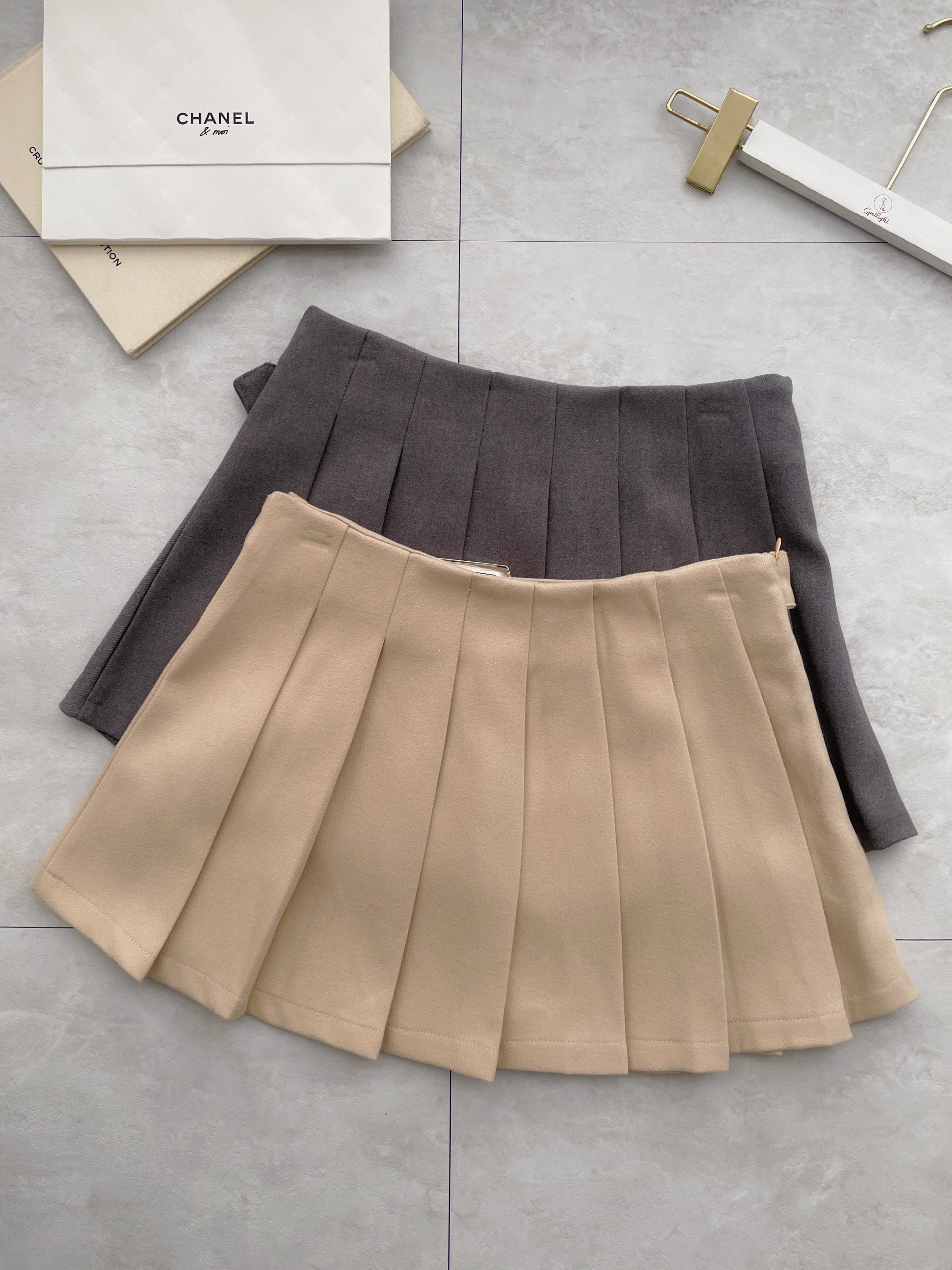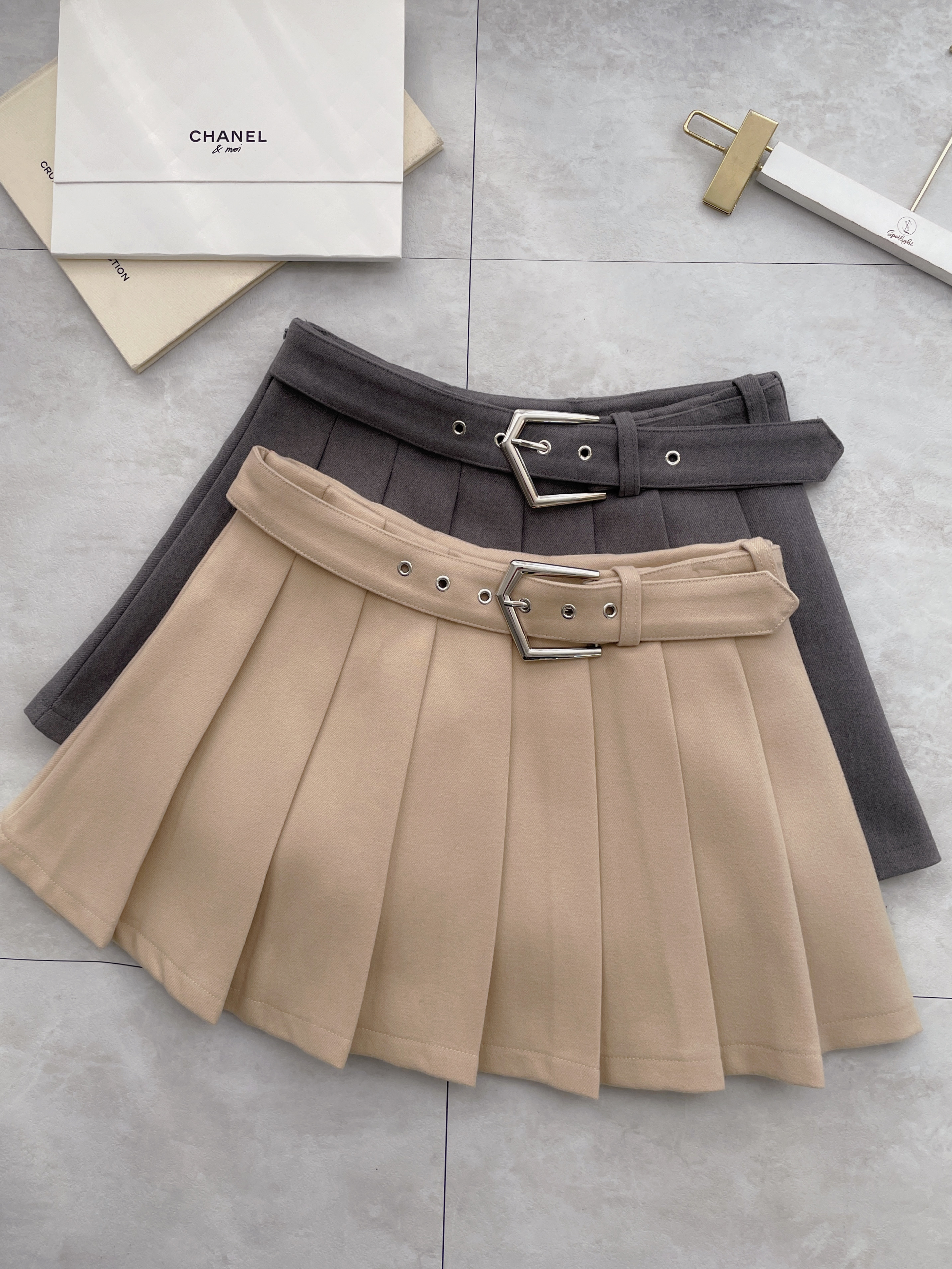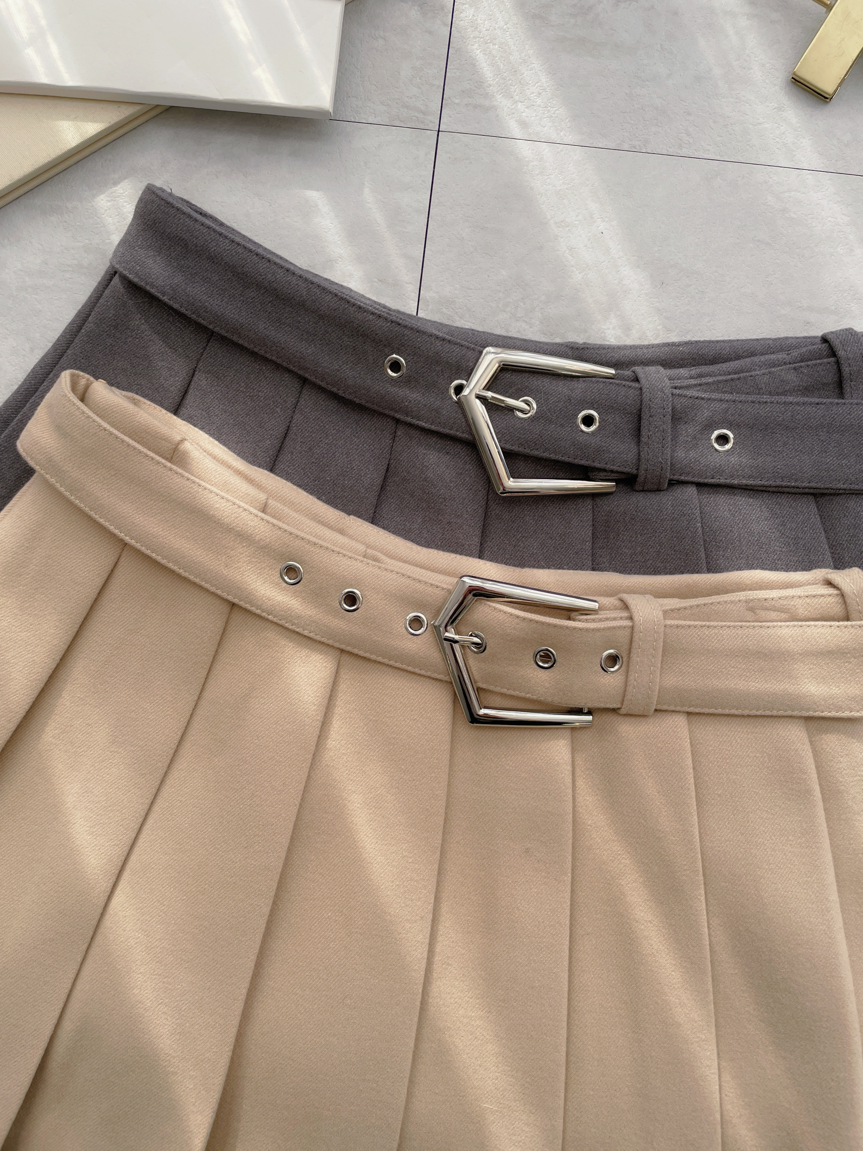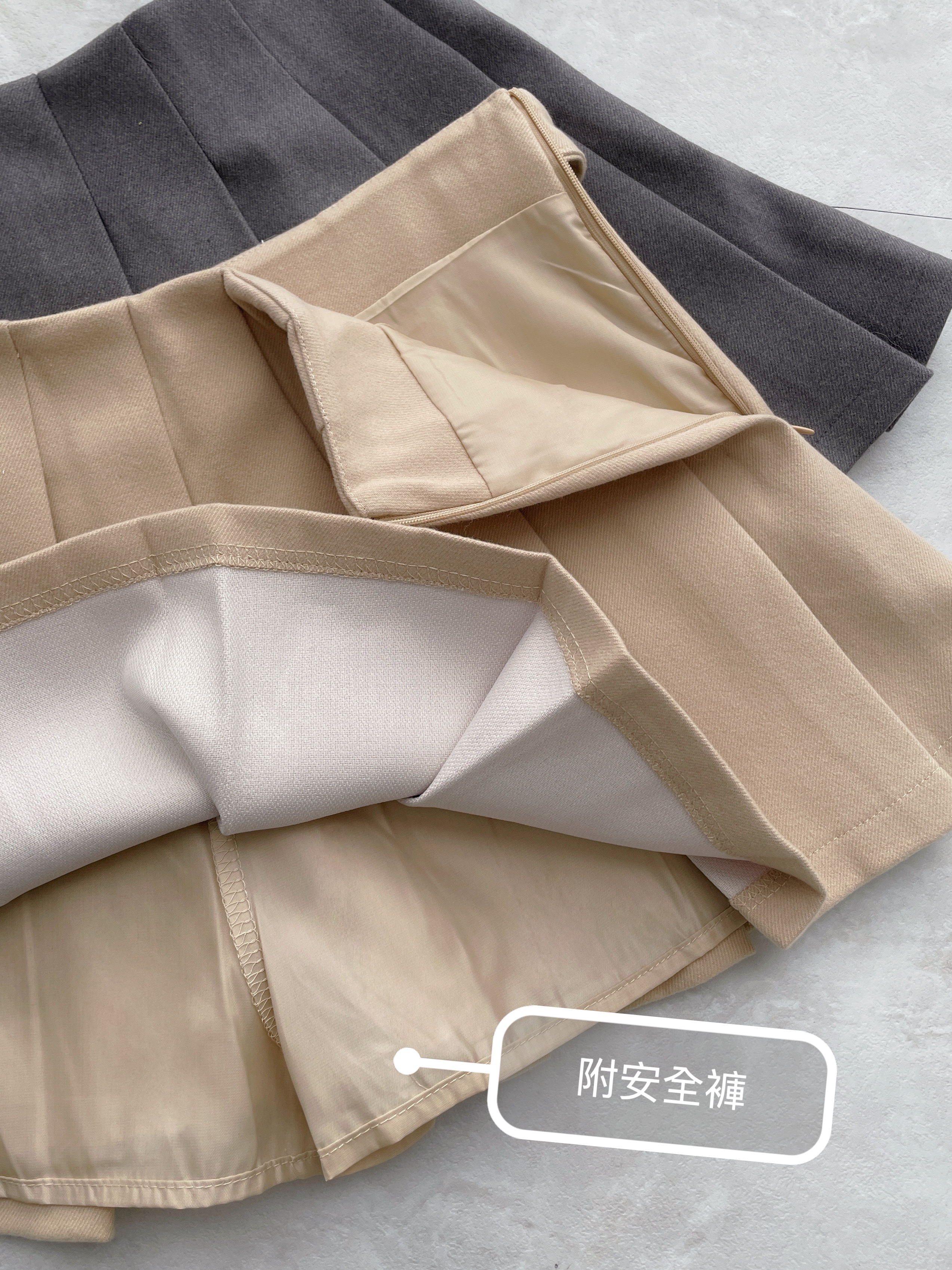 銀環腰頭毛呢百褶短裙