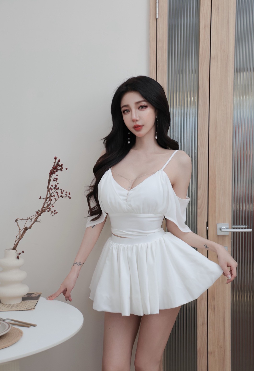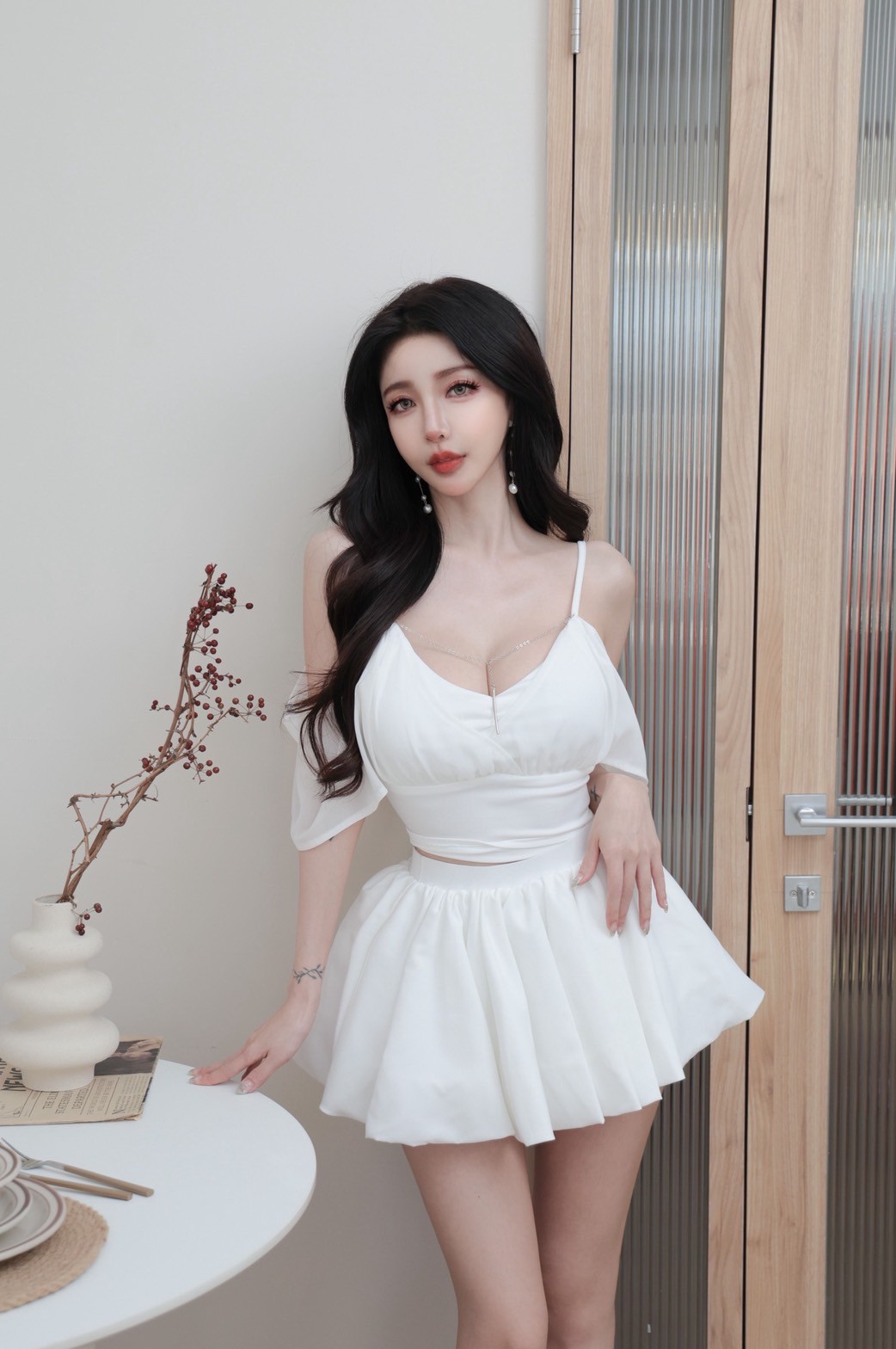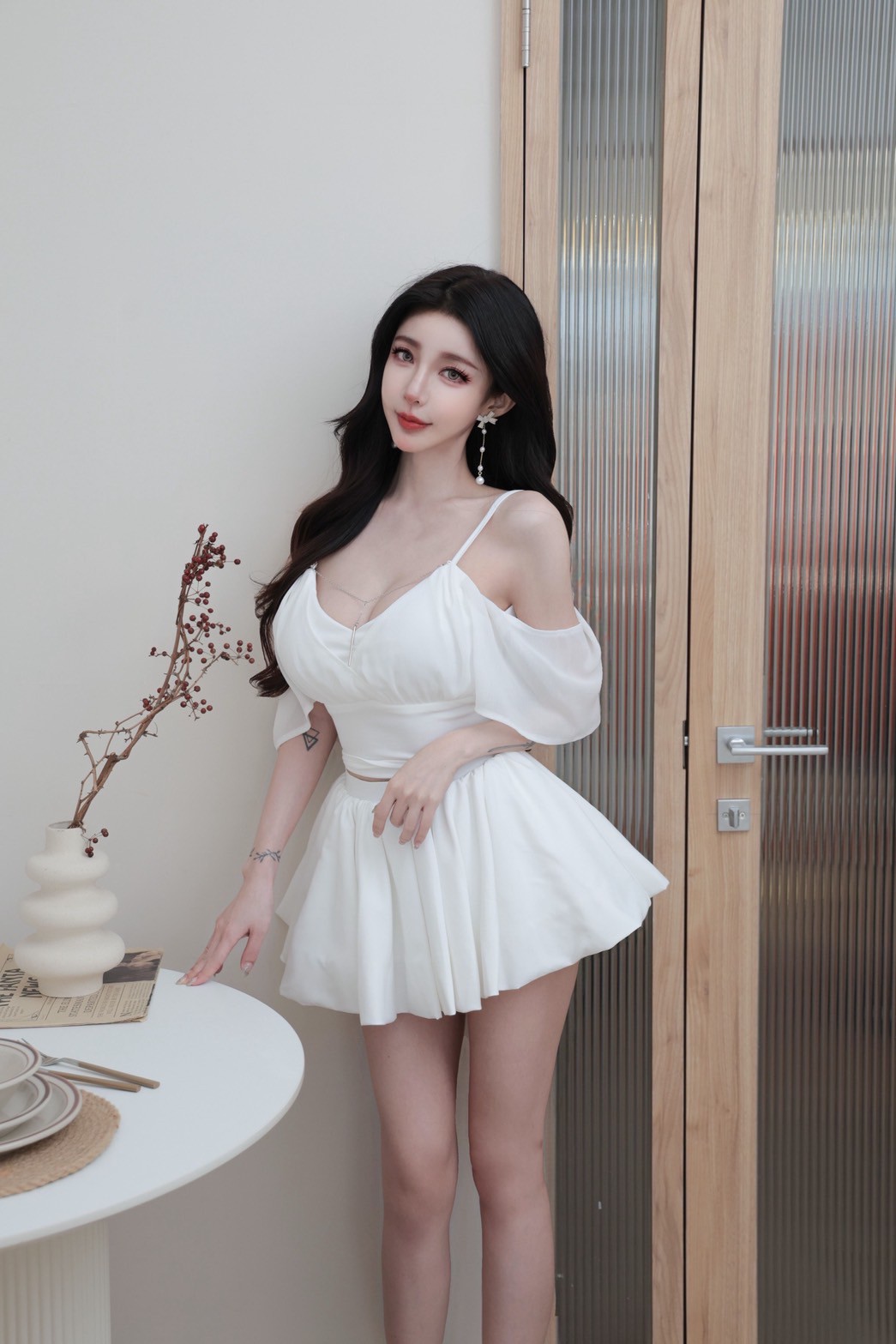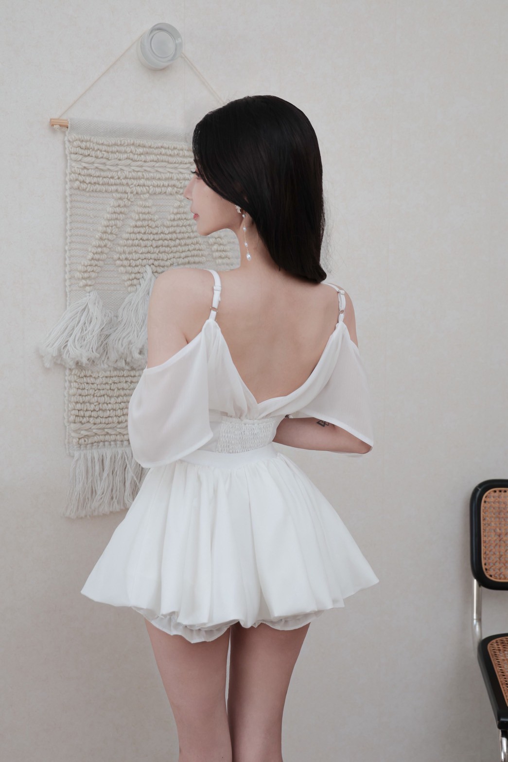 附同面料花苞褲,甜美中帶點俐落感,輕鬆駕馭日常造型。