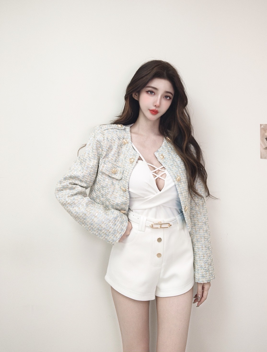 俐落剪裁展現高級氣場的西裝短褲✨採用挺度佳的西裝面料,A字版型修飾腿型比例。三金釦細節搭配質感金屬皮帶,增添時髦亮點。兩側口袋設計兼具實用與造型感,下擺斜切剪裁更顯瘦、拉長腿部線條。