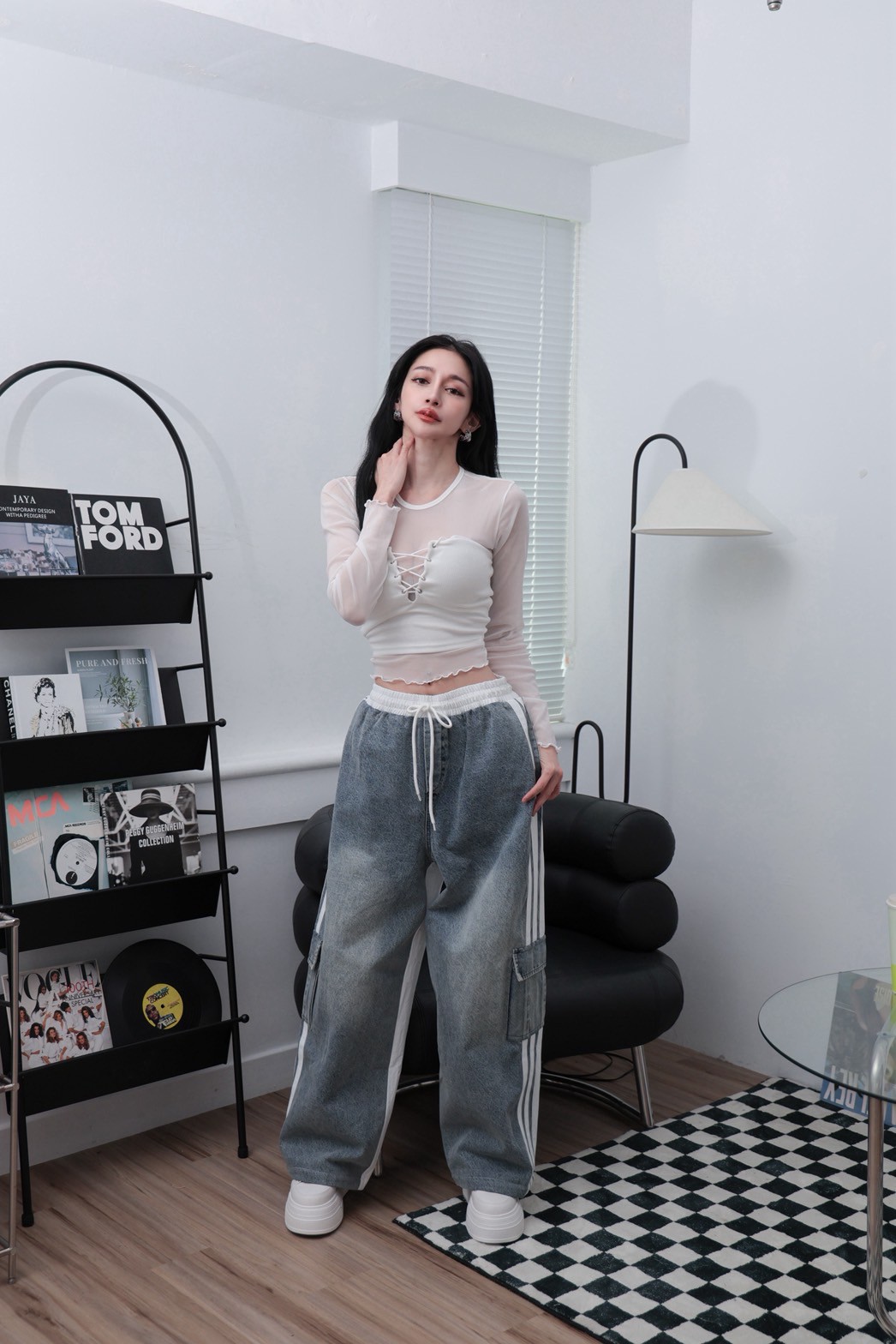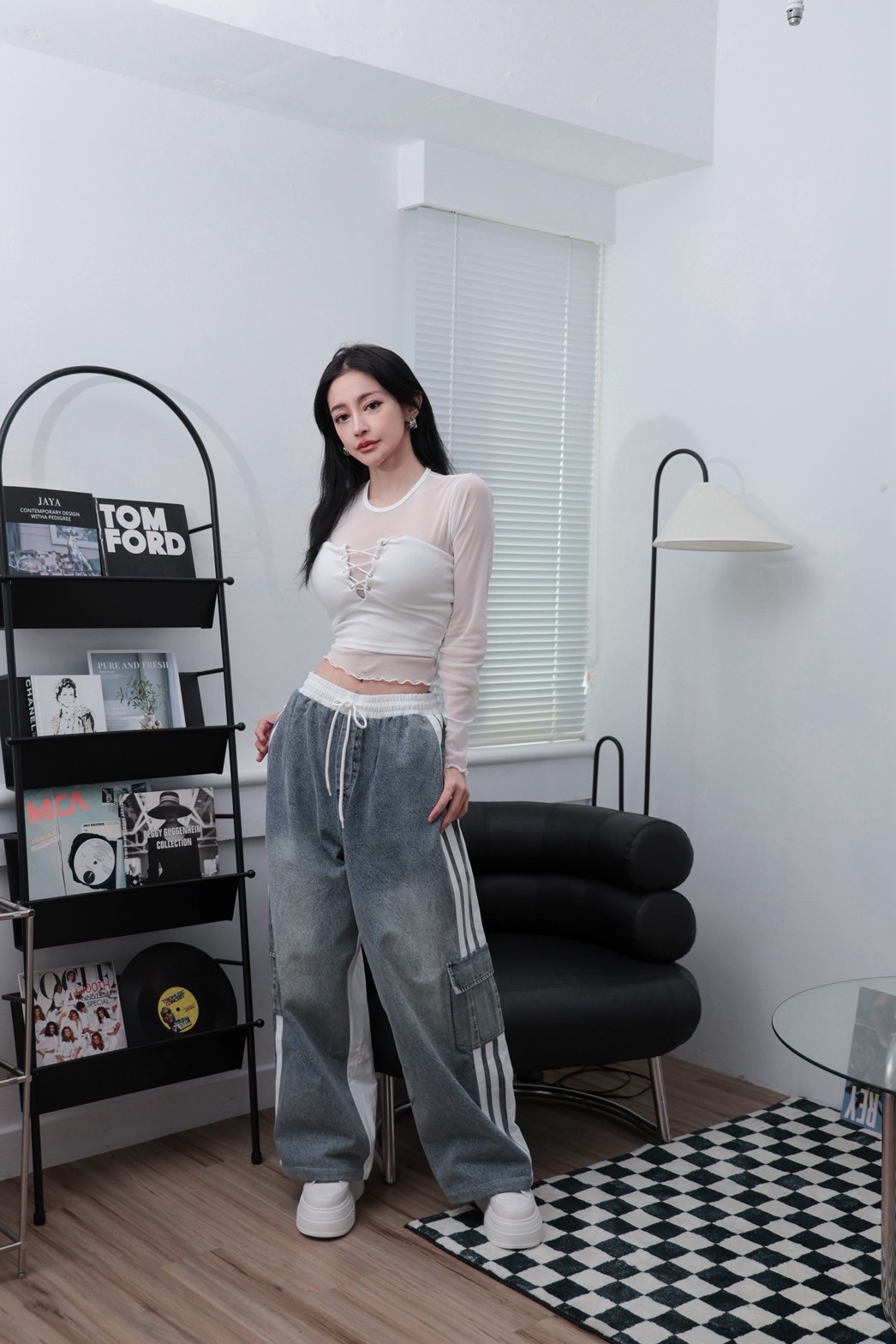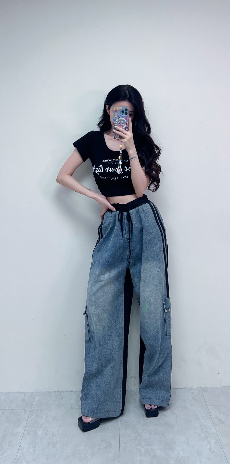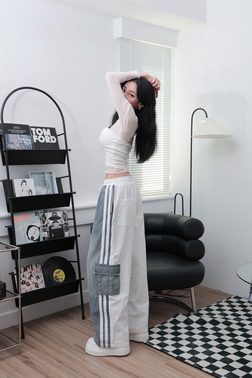 正面牛仔面料拼接背面尼龍面料(薄版褲面料)