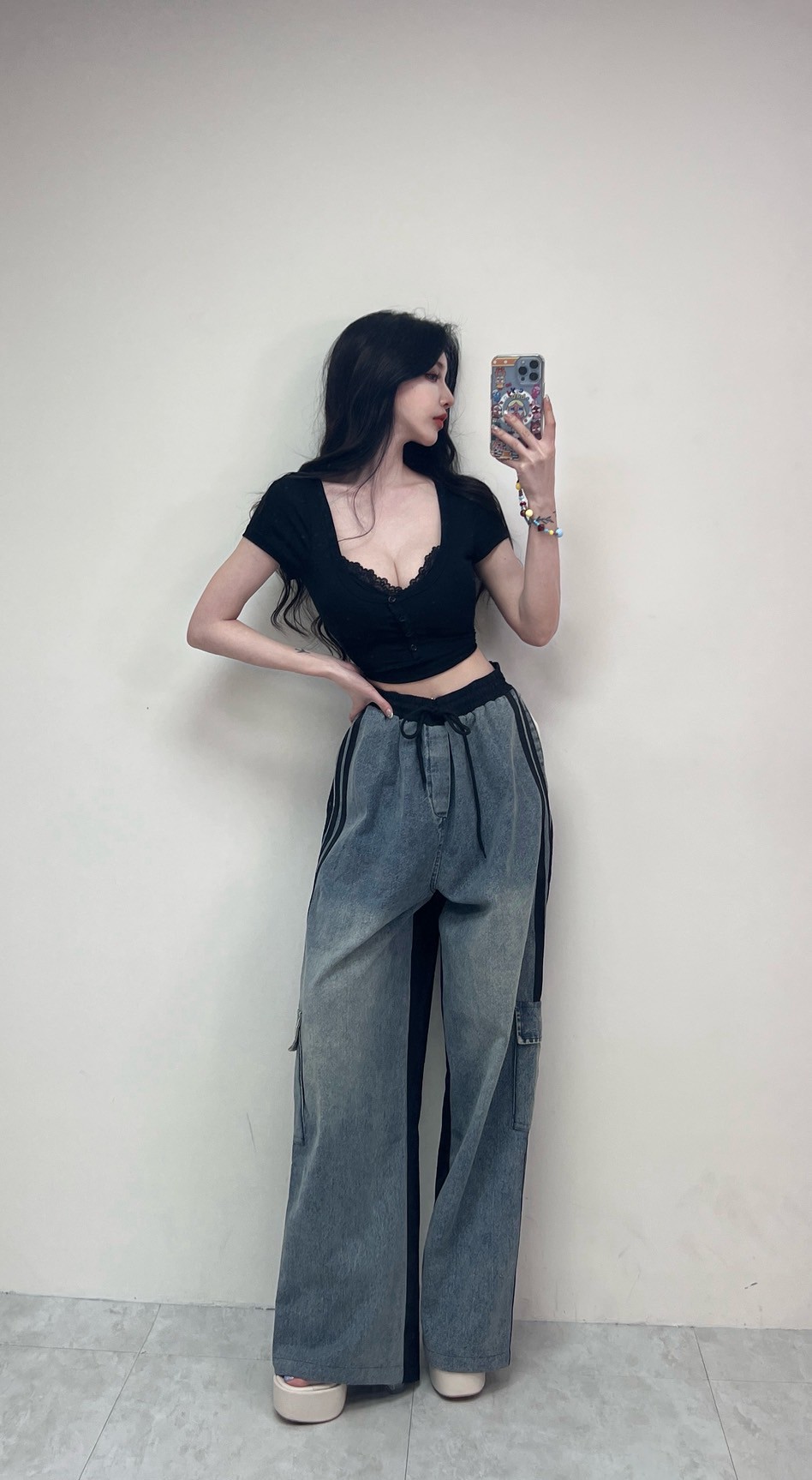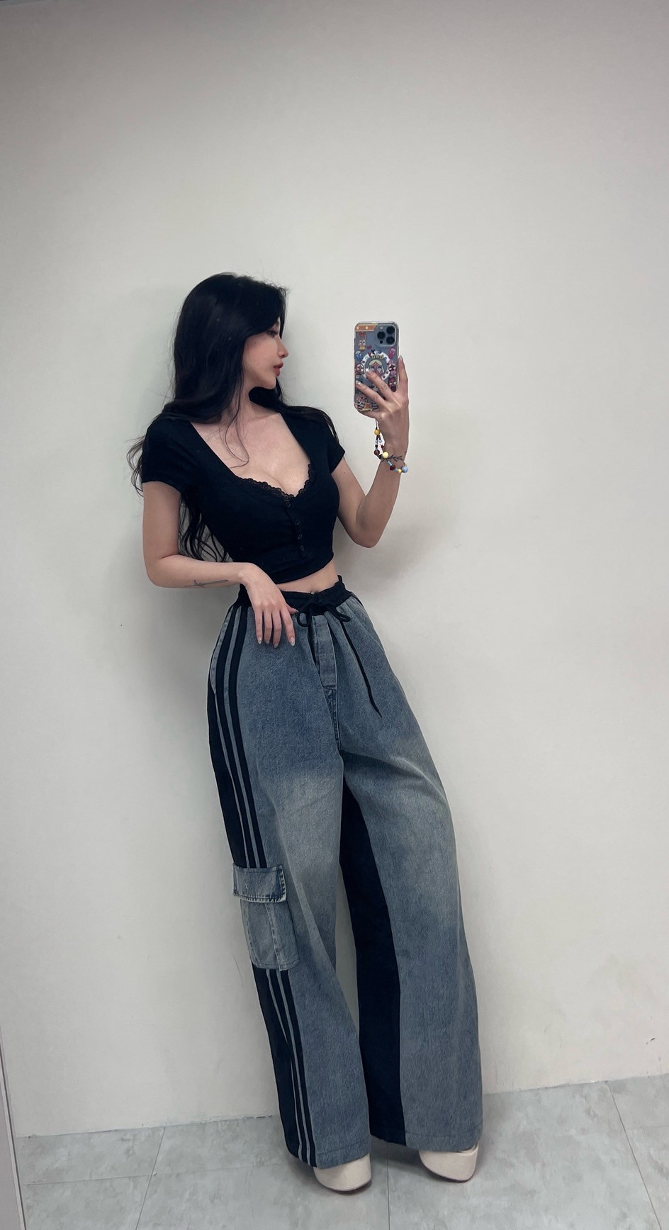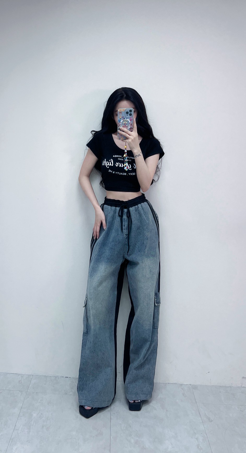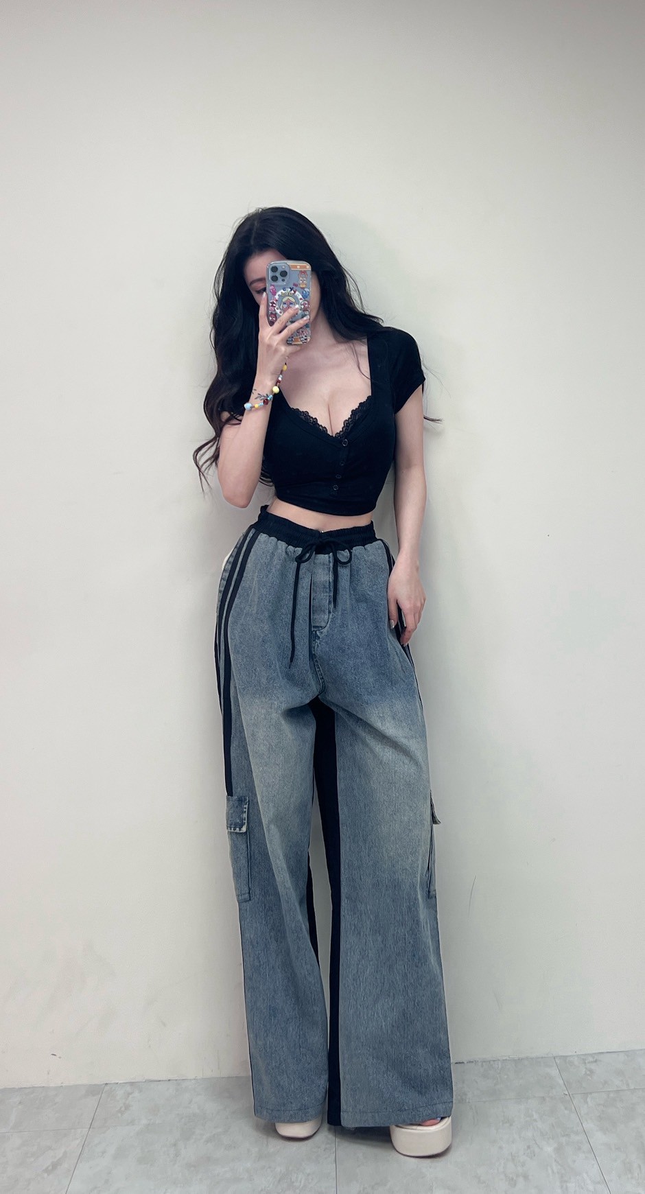 正面牛仔面料拼接背面尼龍面料(薄版褲面料)
