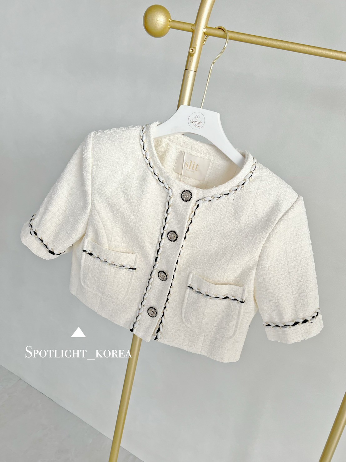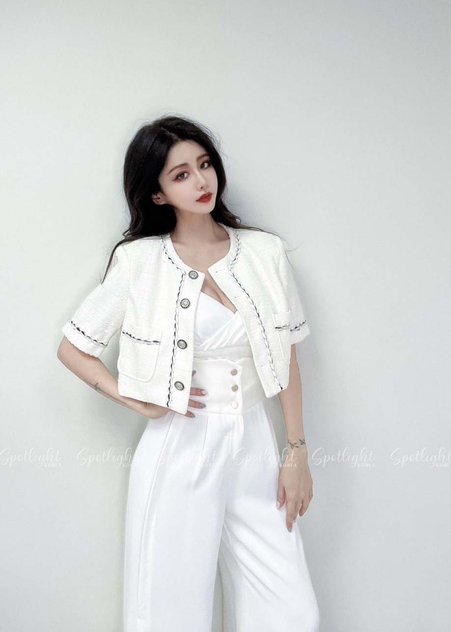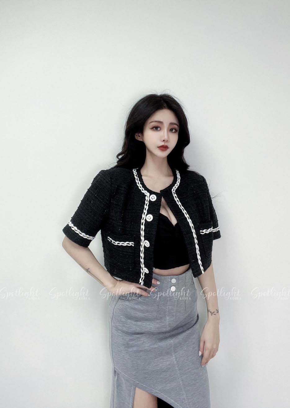 韓國撞色麻花亮蔥短袖小香外套