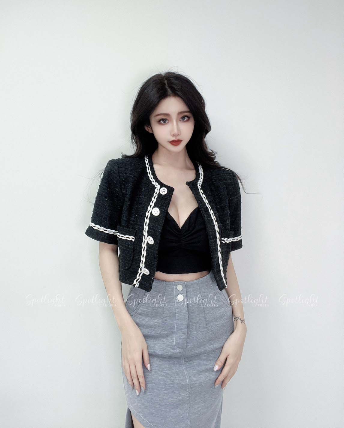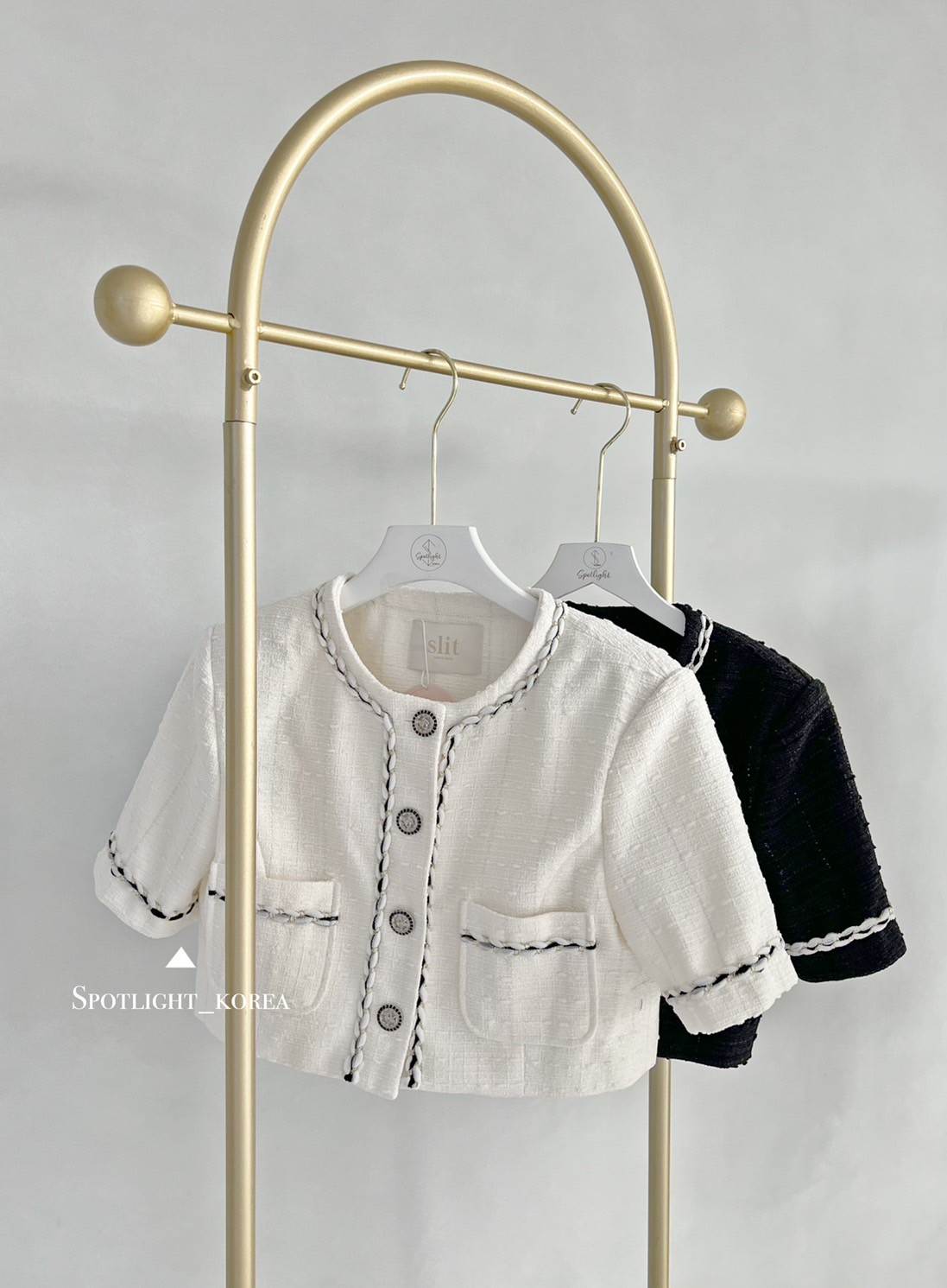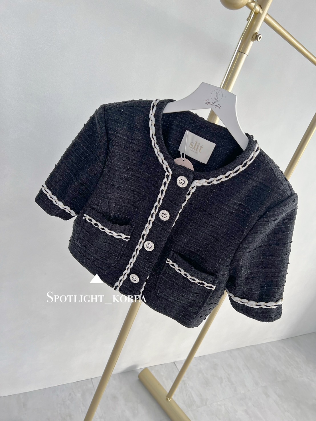 韓國撞色麻花亮蔥短袖小香外套