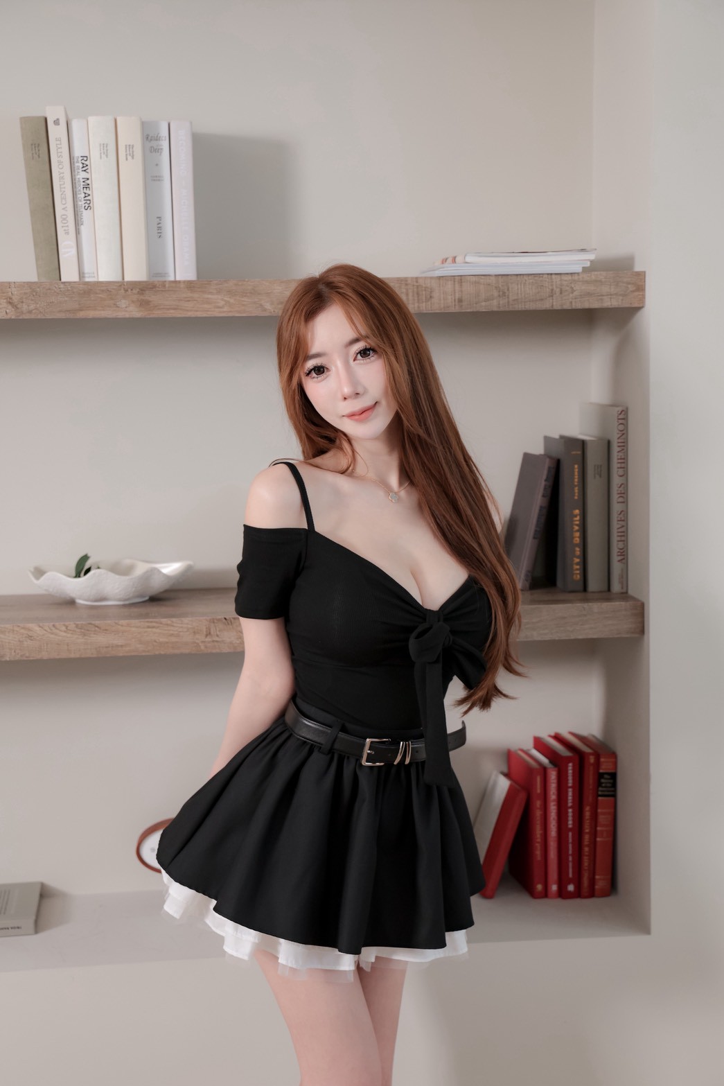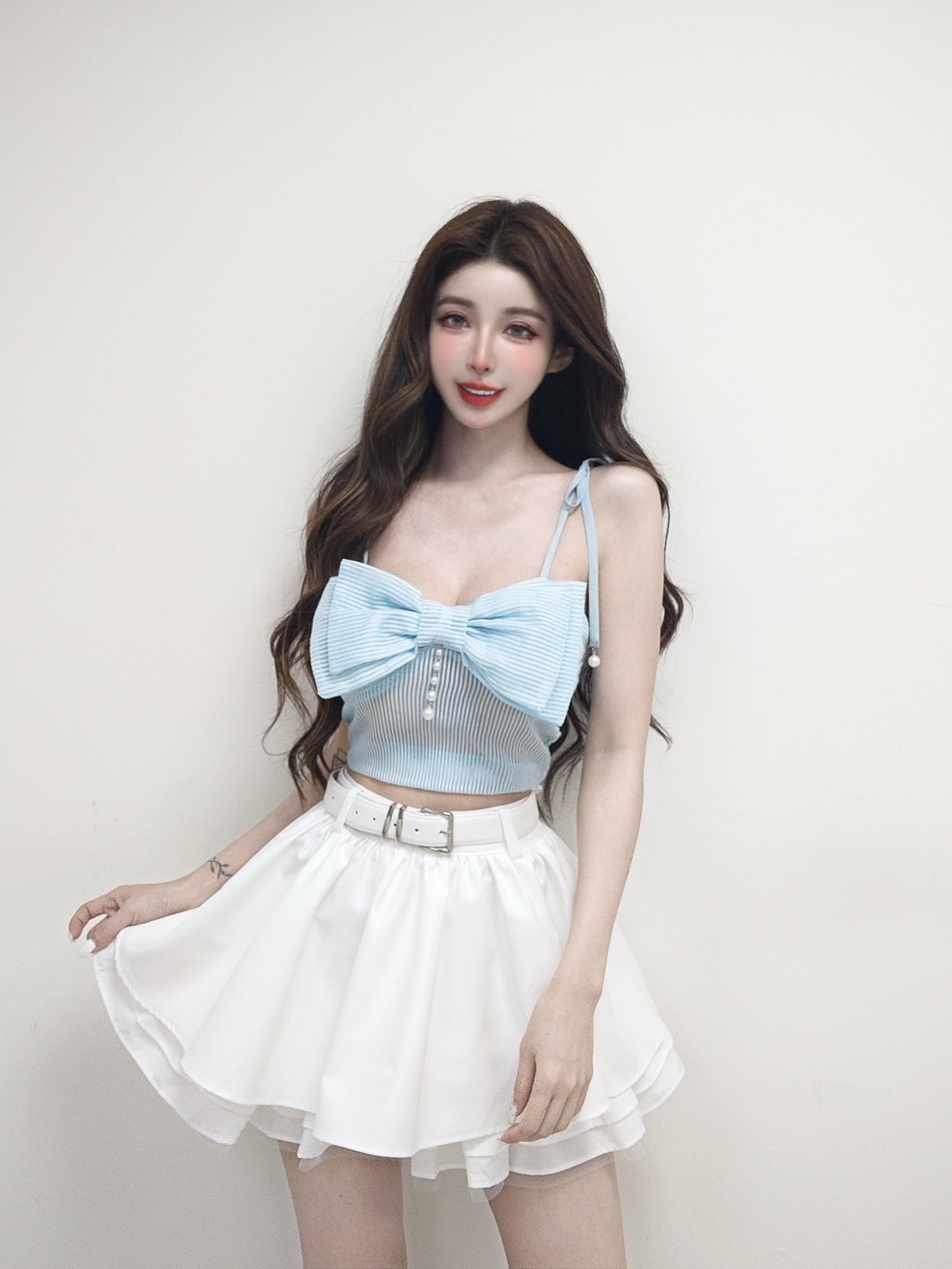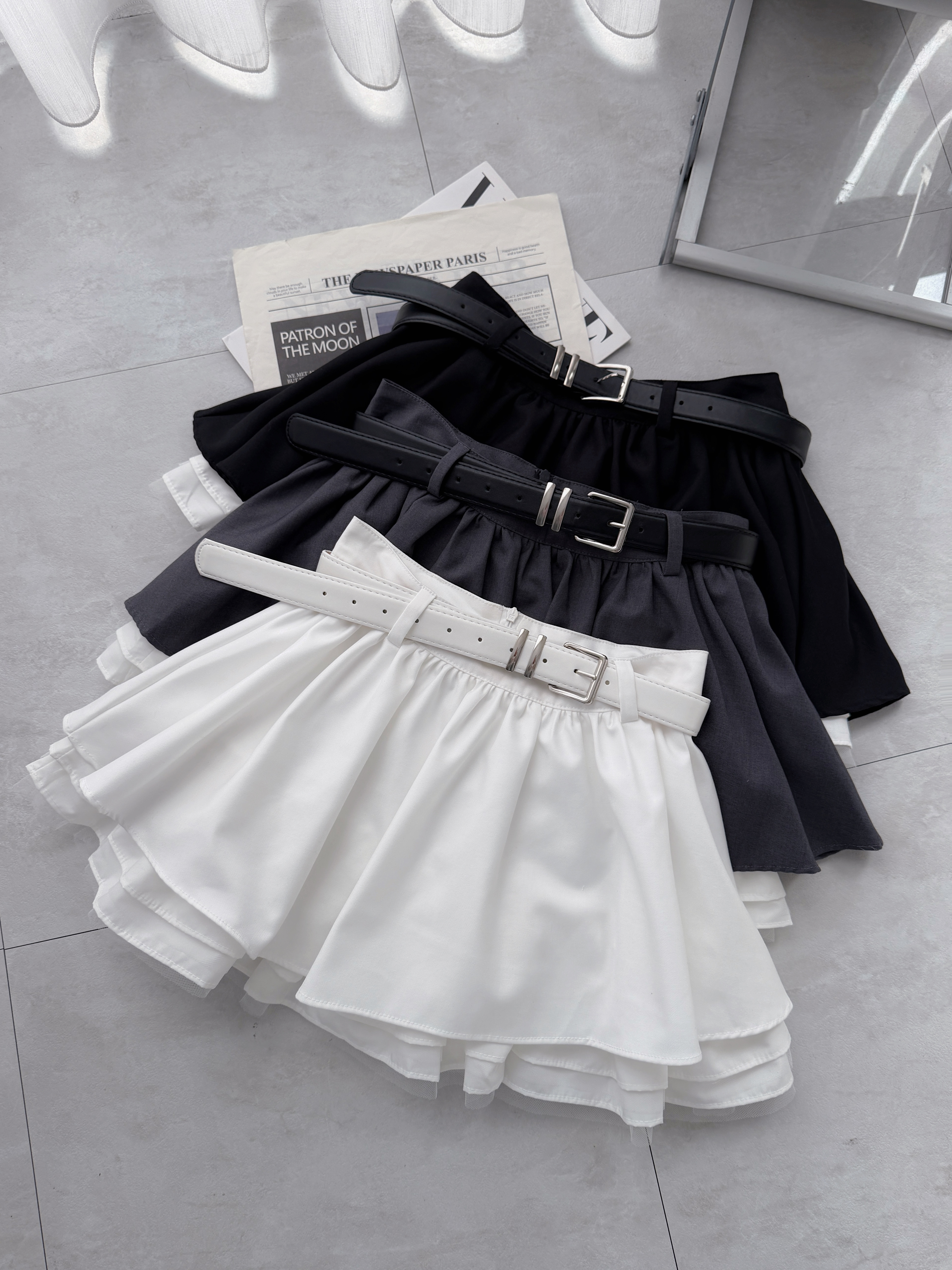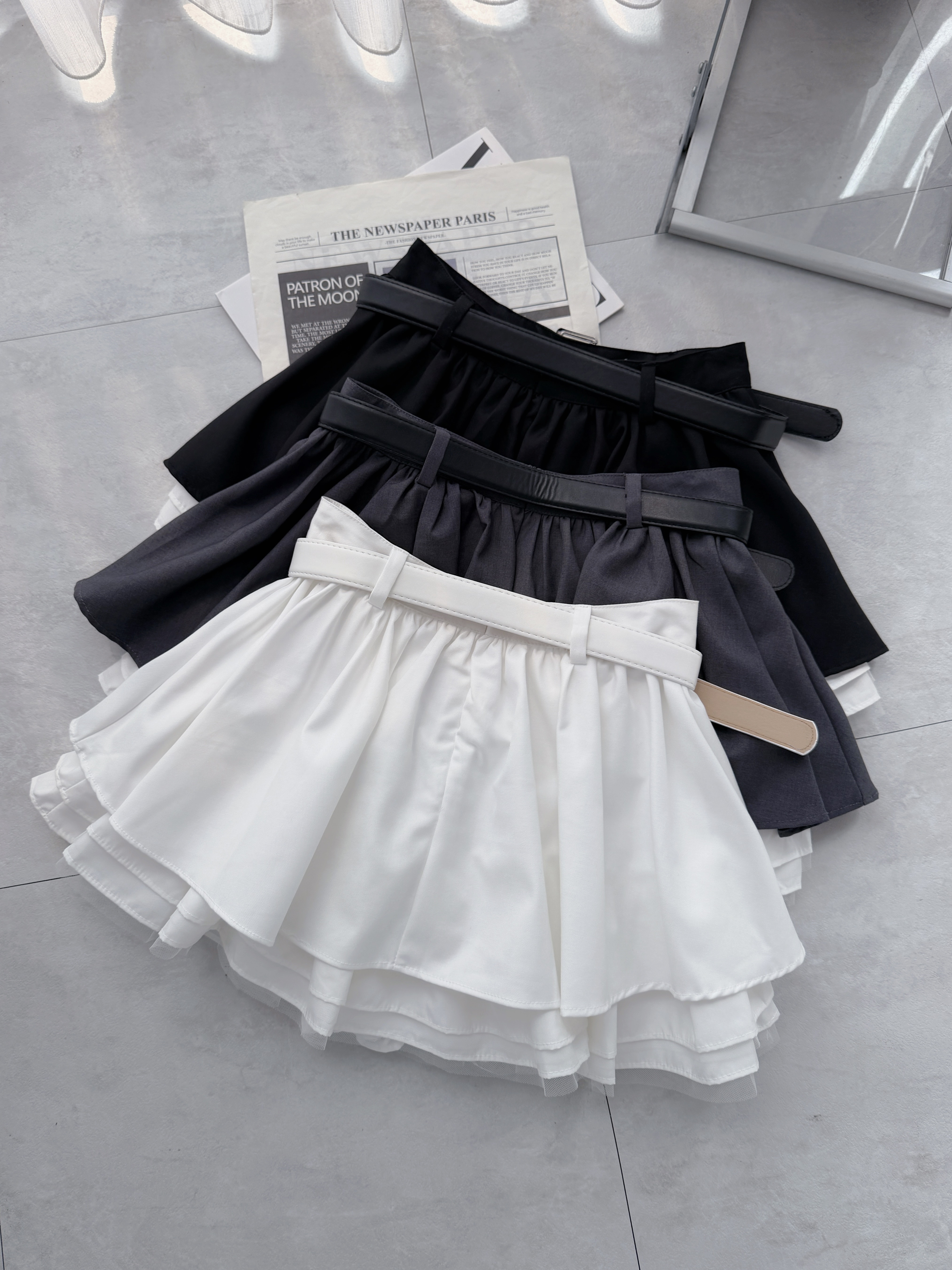 韓國甜帥少女 附皮帶蓬蓬百褶紗裙