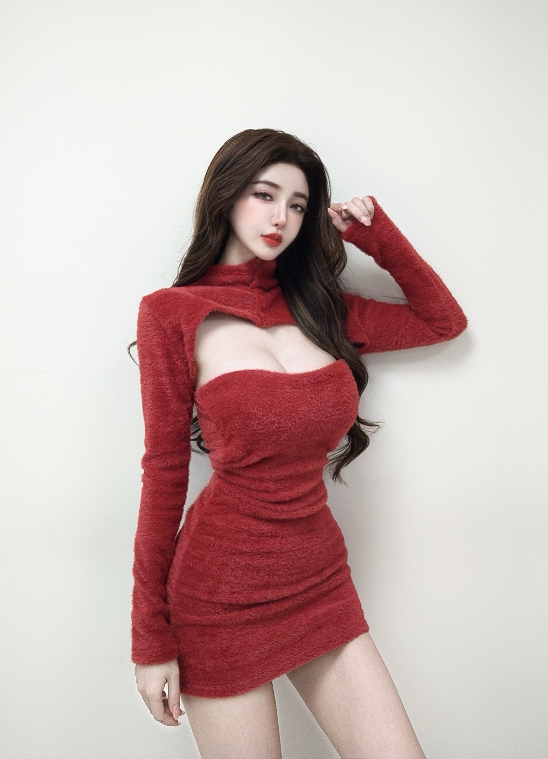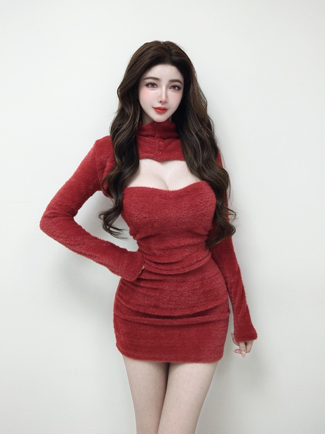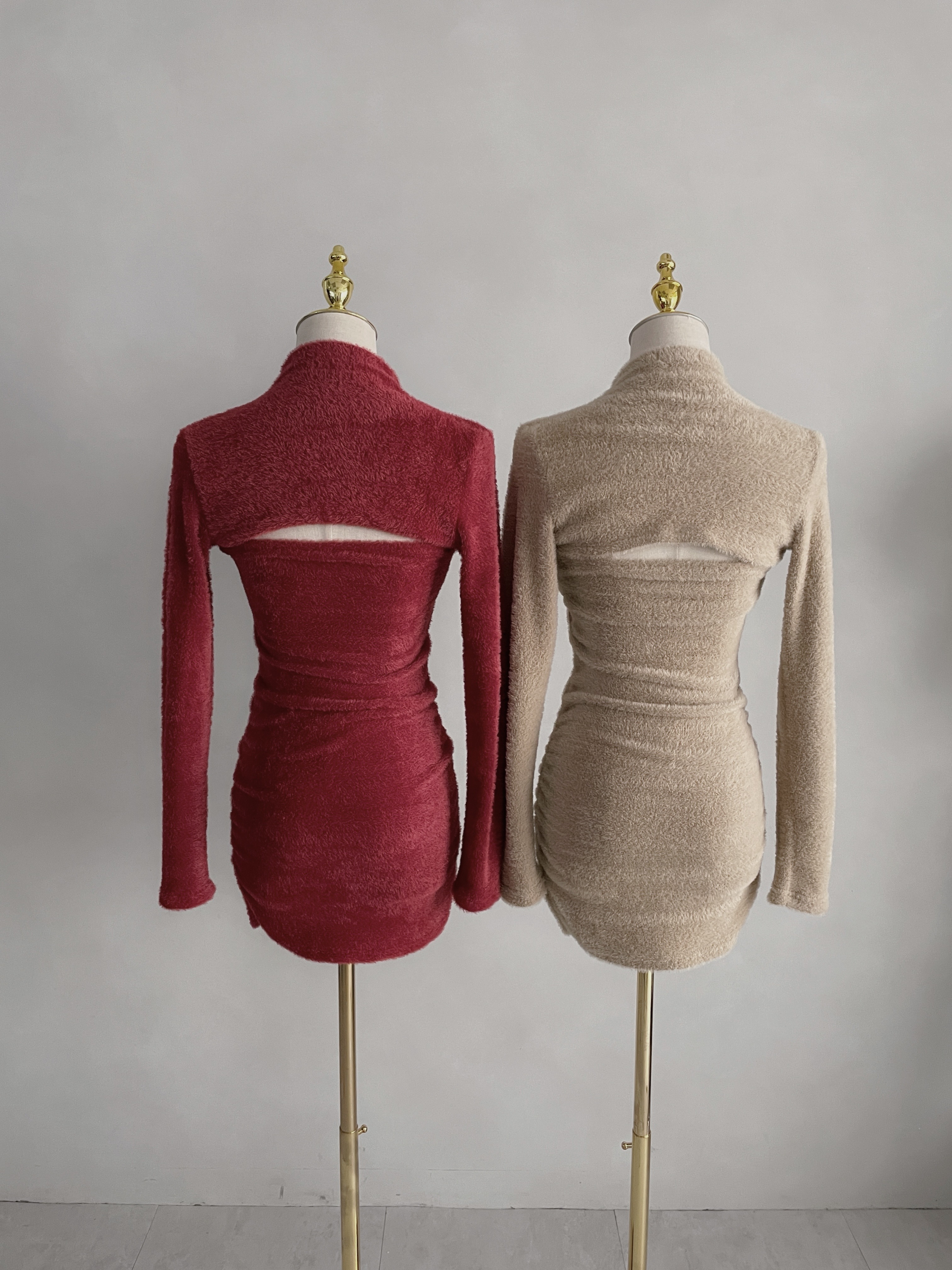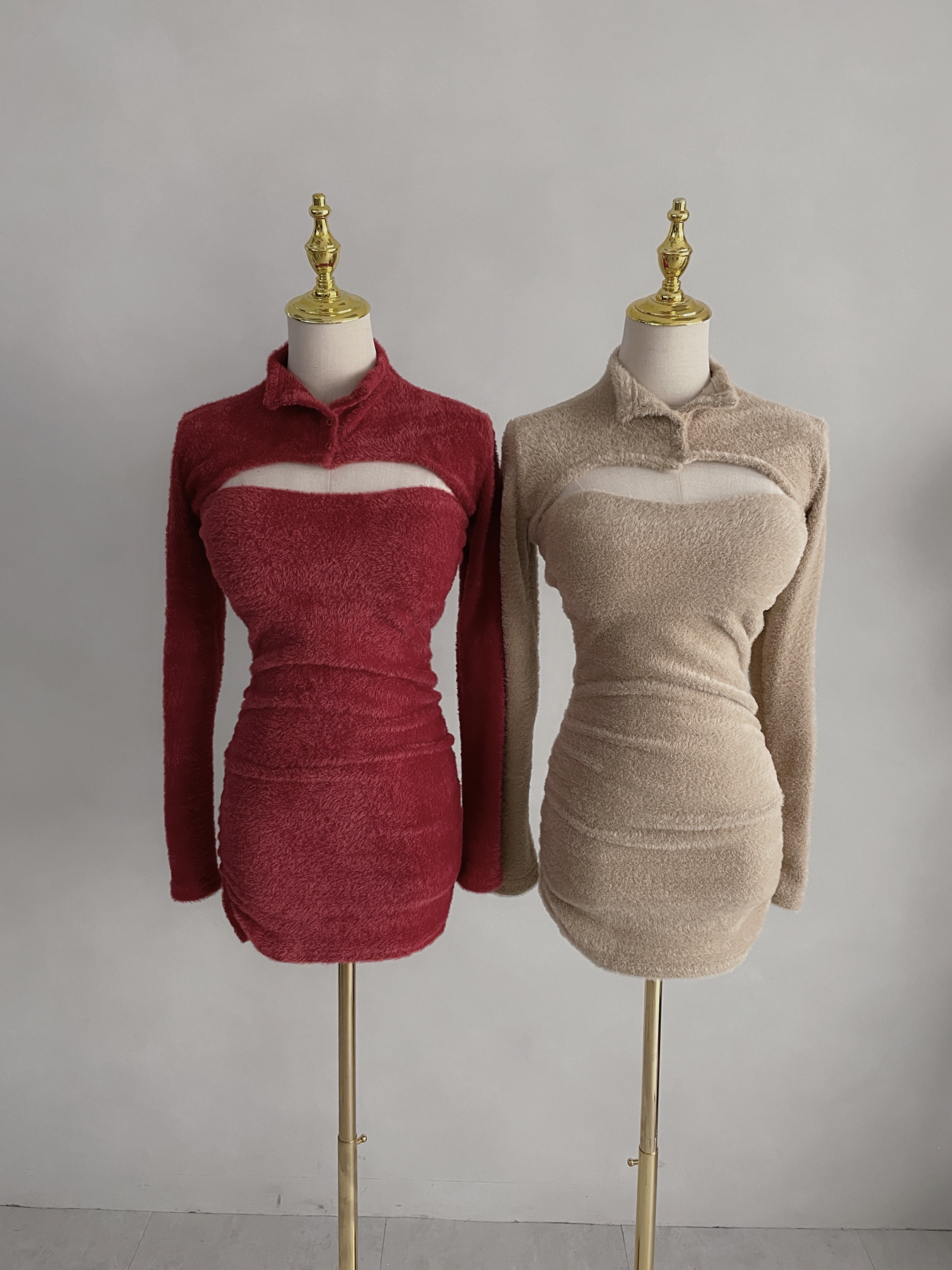 【SET】平口馬海毛抓皺短洋+排釦上衣