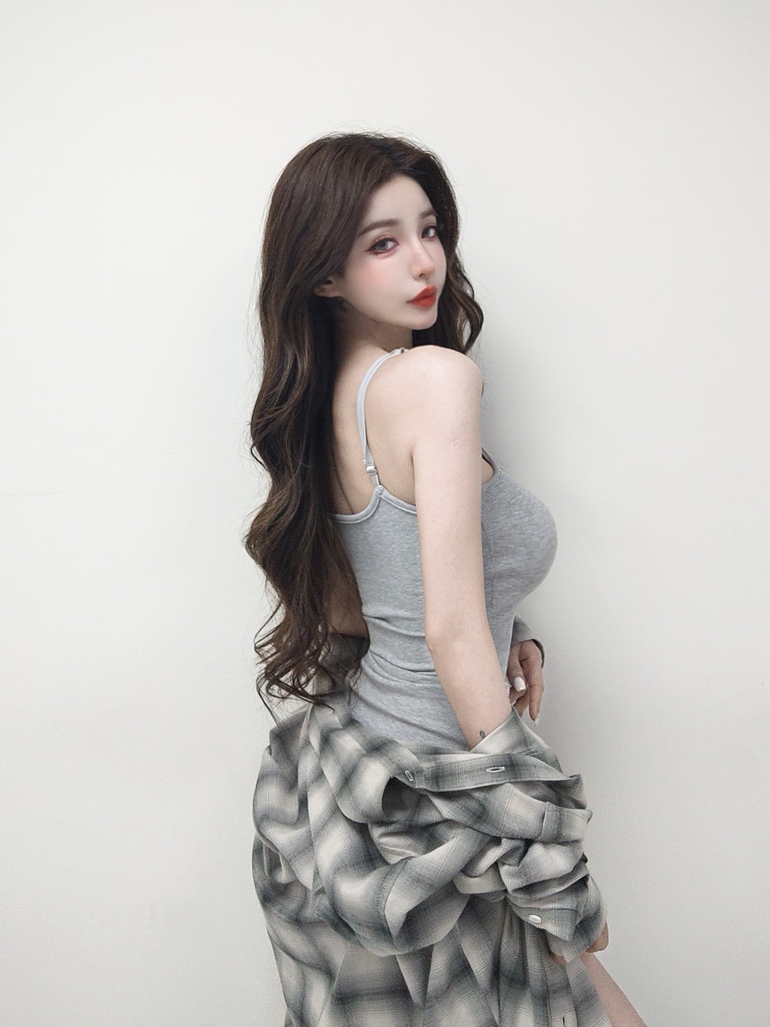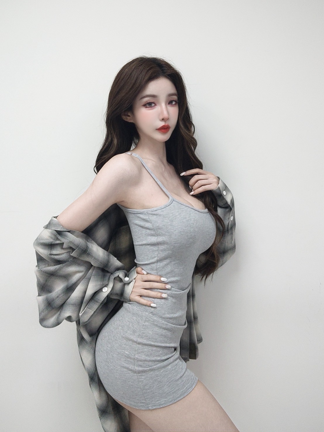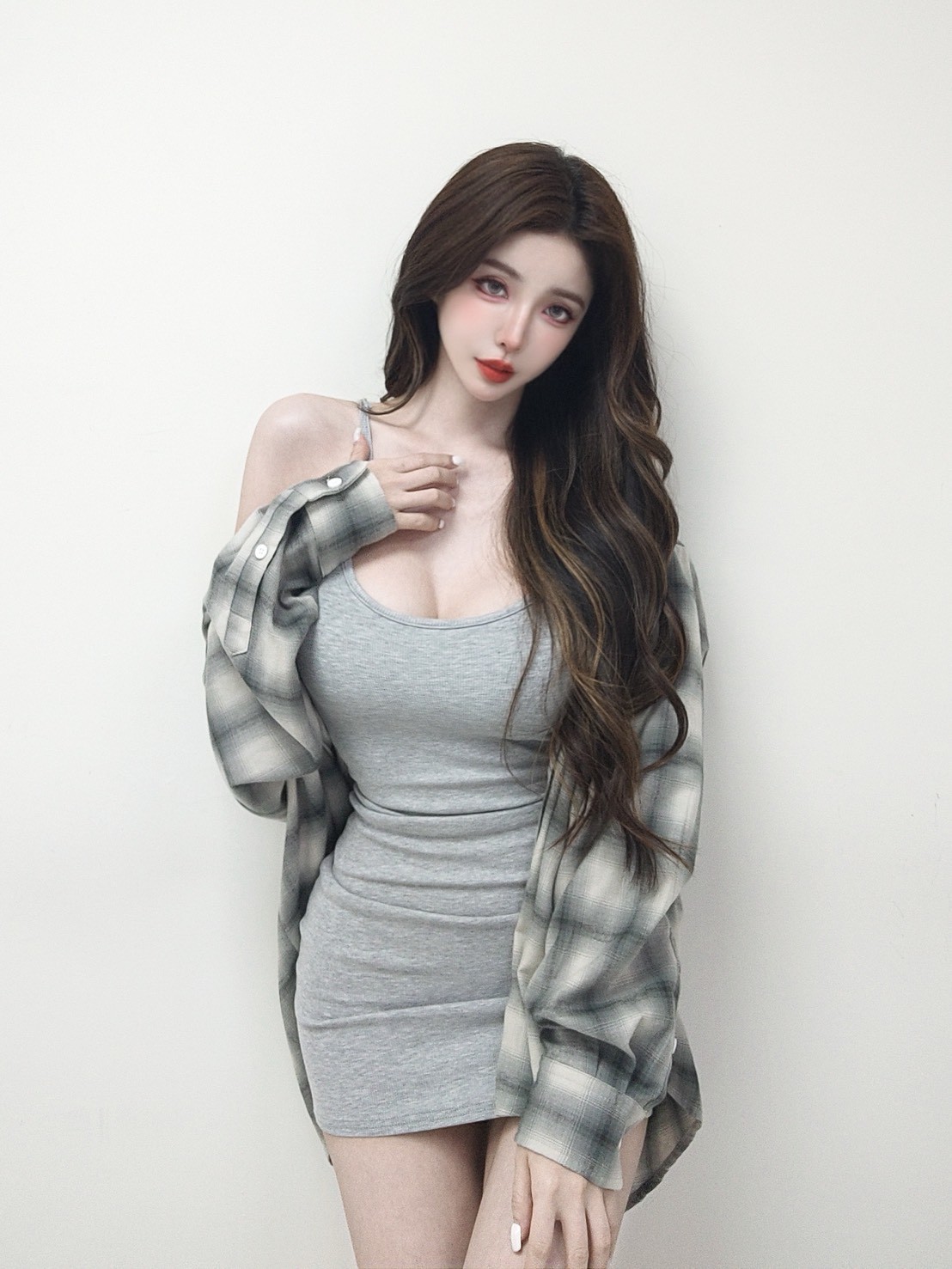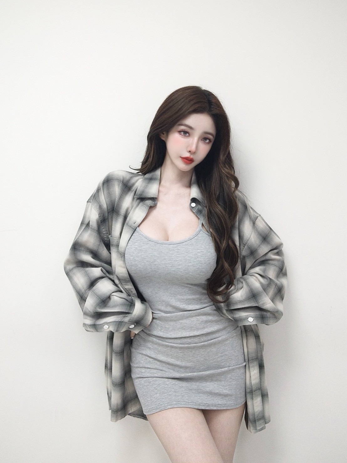 【SET】日常簡約 羅紋貼身素面短洋+格紋襯衫