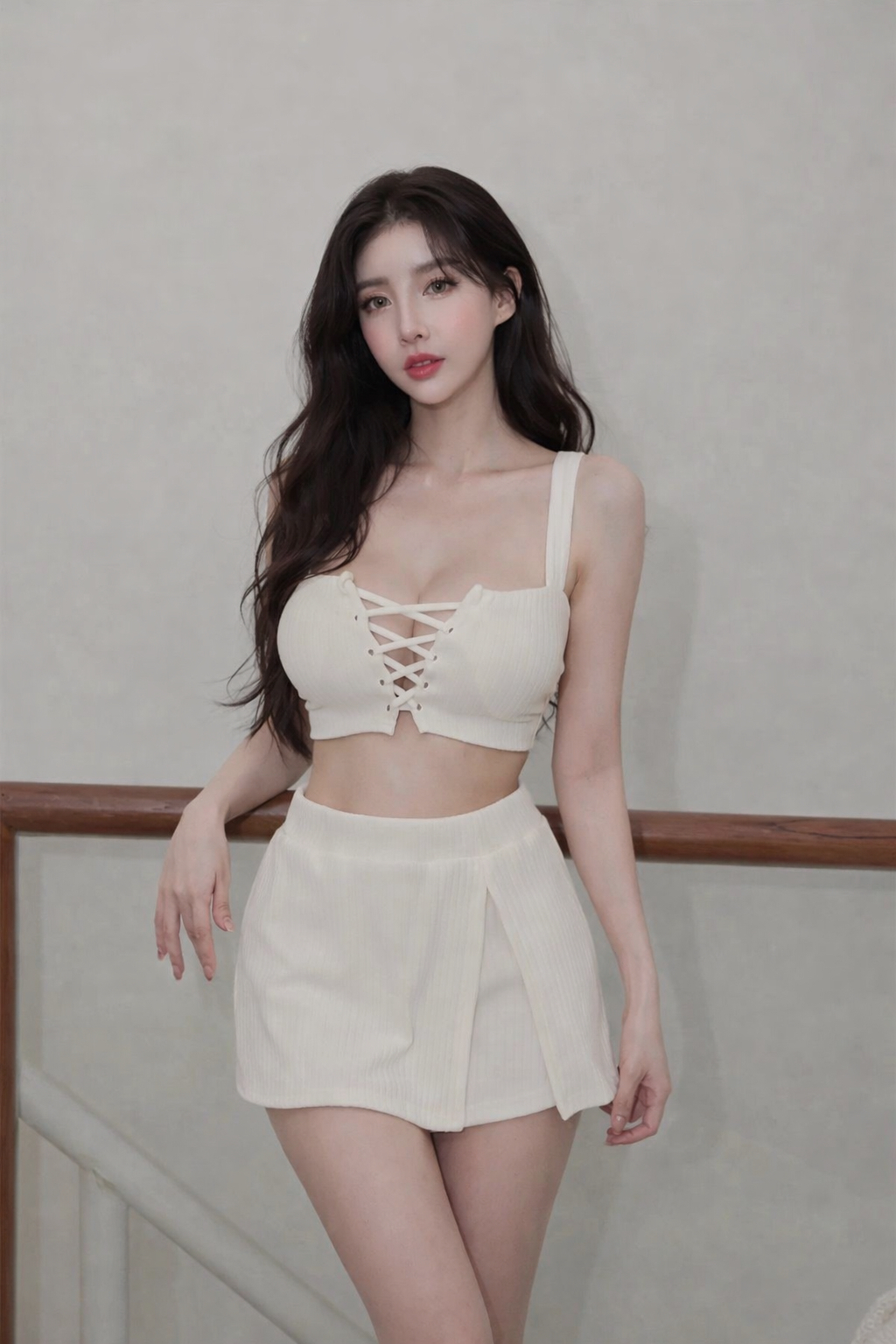 【SET】蜜糖風味 穿繩綁帶美胸馬甲+側開衩褲裙